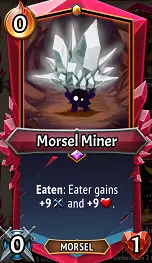 【碎块造物】:当碎块集结成军团时,你将获得强大的【碎块造物】!它打破了常规的【吞噬】规则,能立即将放置在其所在格子上的任何碎块吸收入体,在获得额外+4/+4属性加成的基础上,还能立即获得【吞噬】带来的增益。这一机制变化会产生诸多影响,我们稍后将详细讨论,但最终结果是你将获得一个属性能快速成长的单位,并且随着其属性提升以及你策略性地为其施加【生命偷取】效果,它能拥有极强的长期生存能力。 【饥饿】效果使其与其他【暴食】单位相比具有多个独特特性:a)它对格子空间的需求较低,即使你手牌中满是碎块,它也会立即将其吞噬以腾出空间。即使是由(U)碎食制造者生成的碎食也会被立即吞噬。b) 它会立即获得已吞噬的效果,使其能够无需等待一回合就吞噬关键的生命偷取或伤害护盾。此外,任何放置的(C)碎石碎食都会立即为你获得余烬!c) 它吞噬原初物质的速度比游戏中任何其他单位都快——当原初物质倒下时,放置在地面上的碎食会导致碎食制造的暴食同时作用于两者!d) 即使它不在楼层前方,其效果也能生效,因此不需要将其作为先锋(尽管考虑到它的生命值增益,也许应该这样做?)而像(稀有)暗影分裂、(稀有)暗影尖刺或( uncommon)盛宴这类卡牌通常在此处无法生效,除非它被沉默或在楼层间移动,因为这些卡牌无法让碎屑存在足够长的时间来发挥作用。 升级/搭配:如果你能大量喂养这只野兽,以下几种升级会立即浮现在脑海中: a) 多重打击,以利用其不断增长的攻击属性。 b) 泰坦石,使其能够承受大量伤害,并通过生命偷取轻松恢复。 c) 巨石,为其提供大量初始属性加成(其额外的空间消耗影响不大,因为碎屑不会占用其所在楼层的空间)。 d) 无尽,使其在被击败后能带回所有新获得的暴食属性加成。【碎食大师】是此处最佳盟友,它能在【碎食生成峡谷】作用前使每个放置的碎食翻倍,从而提供巨额属性加成(例如:使用此组合放置一个【稀有】碎食矿工,能立即为其提供+26/+26的属性!)。如果无法获得其他卡牌,【速度石】和【心石】也是合理的选择。只要你能持续生成碎食,这个庞然大物就能轻松守住阵线,兼具出色的肉盾和进攻能力,通常能轻松应对无情的首领阶段。