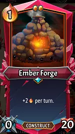 余烬熔炉(U):作为支援单位,它的体型为2且拥有20点生命值,这非常不寻常!如果你能为这群辛勤工作的锻造者腾出空间,每回合就能额外获得2点余烬。很不错!它可以轻松接受生命值升级以用于承受伤害,或者通过“无尽”效果在被击败后重新召唤。请注意,没有“离港清单” artifact的话无法部署它,所以别指望每回合都能获得大量余烬! 没什么其他好说的——如果你在列车上有空间,并且卡组消耗余烬较多,它会很有帮助。20点生命值也是个不错的额外奖励。微光石可能不是必需的,但护盾石能很好地防止它受到意外伤害而死亡,而且无尽+护盾石是一个长期有效的组合……如果你需要阻挡一层免受泰坦狂暴的影响,这会很有帮助!不过,只有在余烬存活的情况下,才会在回合开始时获得恩赐;当它被击败时,你会失去它的余烬效果,所以故意击败它也是一种不太可靠的策略。 碎屑!