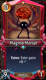 【岩浆小不点】:一个手持热石的强壮小家伙,岩浆小不点拥有9点攻击力,比持盾护卫的伤害更高,甚至与格雷尔男爵的不稳定助手相当!被吞噬时提供+9攻击力的效果也相当不错……对比类似效果,比如觉醒者的锐锋需要消耗1点余烬才能提供+12攻击力和-2生命值。因此,无论是偶尔提供后排伤害支援,还是增强任何吞噬它的单位的攻击力,岩浆小不点都非常有用。由于它会进行攻击,要小心带有尖刺的敌人,因为在被吞噬之前,它们会因尖刺反伤而自取灭亡。我想,它们是去了英灵殿,而不是肚子里。
