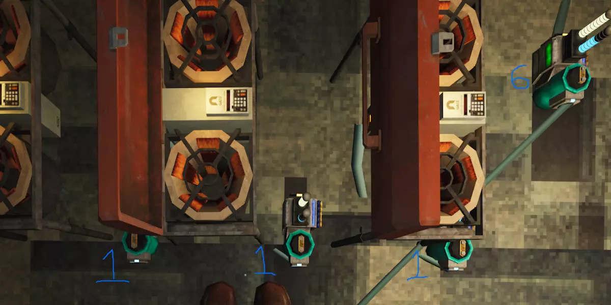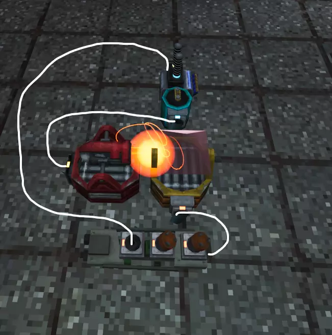 激光循环(已失效) 在《深海迷航: crush depth》、《暗能量》以及1.0早期版本中,你可以将激光分束器的一部分接入为其供电的电池。这是一种非常简单的设计,简单的设计总是比复杂的更可靠。然而,这种设计经过了多次修复。现在不允许闭合电路,无论电路有多长,当你尝试将电池连接回自身时,游戏不会让你连接最后一根电缆;即使强行连接,电路的输出元件也不会提供任何电力。 目前尚不清楚谁发明了第一个激光循环,因为这是《深海迷航: crush depth》发售第一天就出现的设计。