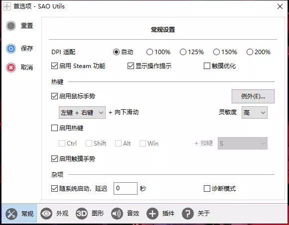 如何开机自启以及启动有延迟如何解决 如何开机自启 首先是开机自启问题,SAO Utils的首选项中是有跟随系统启动的,勾上即可。