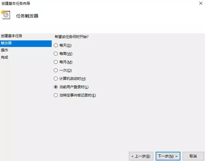 4.触发器选择【当前用户登录时】