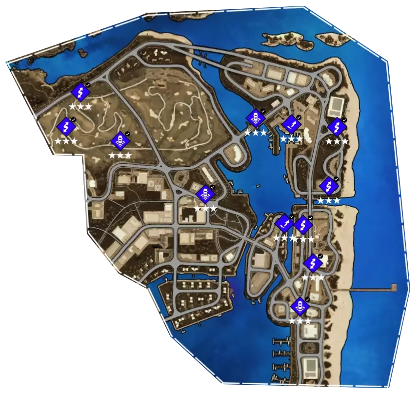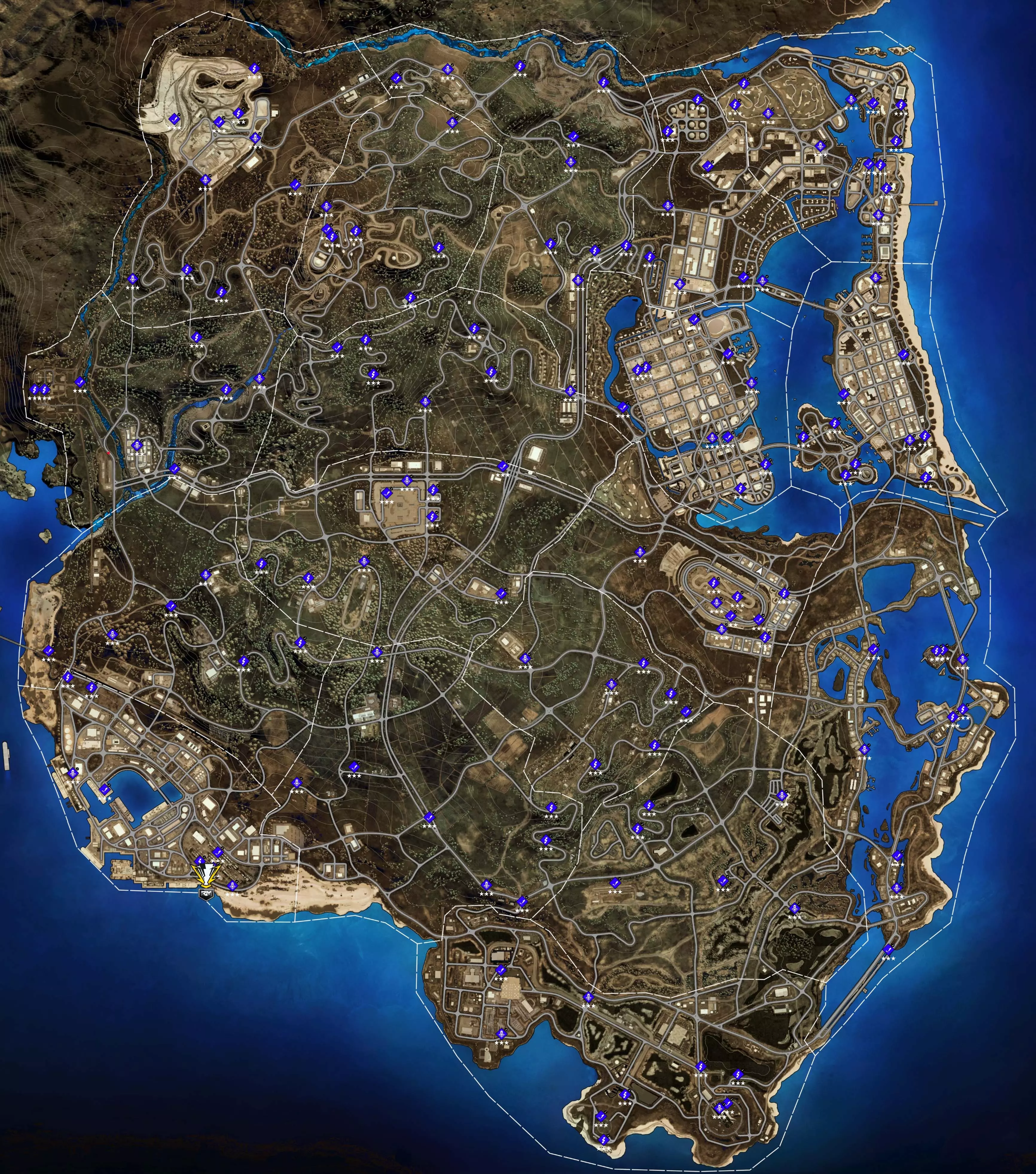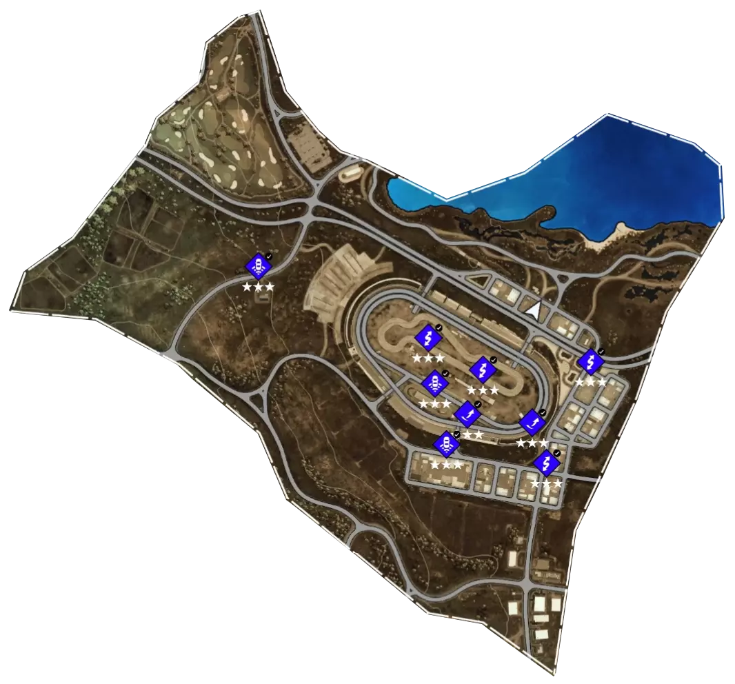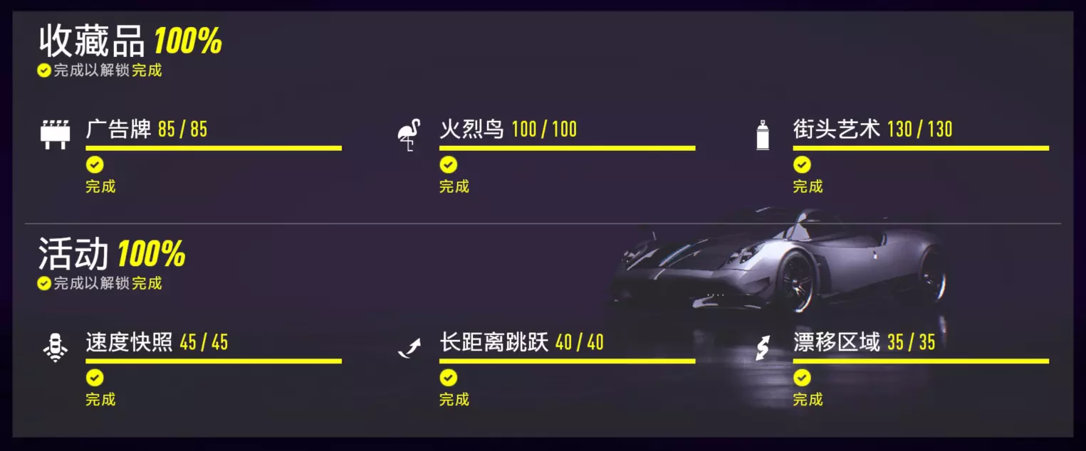 不差钱的可以买这个直接在地图上显示全部收藏品的DLC。我是全部零件都解锁后去做的这些,所以那些漂移测速大部分都没什么难度,如果达不成只能建议先把所有零件解锁后再去做。收藏品方面,我在每个图标上都标了序号,如果有哪个找不到可以给我留言。完整地图。