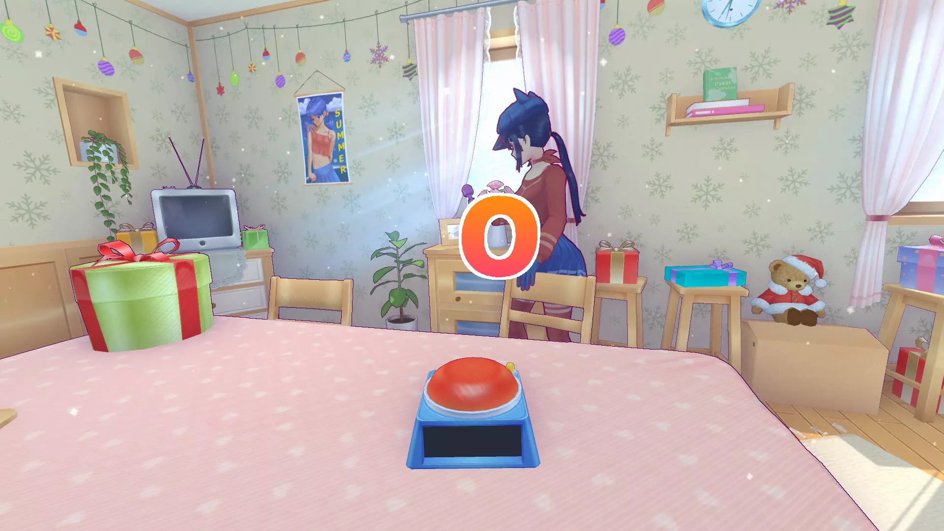 遇到善良的美依并认识了小帽子后,善良的美依提议玩家和小帽子一起玩。在有电视的房间里,需要注意游戏舞池并选择一首旋律,选一首喜欢的,然后通过及时按键来完成。如果输给小帽子两次也没关系,【成就】只需要在三个可用舞蹈中赢得一次即可。