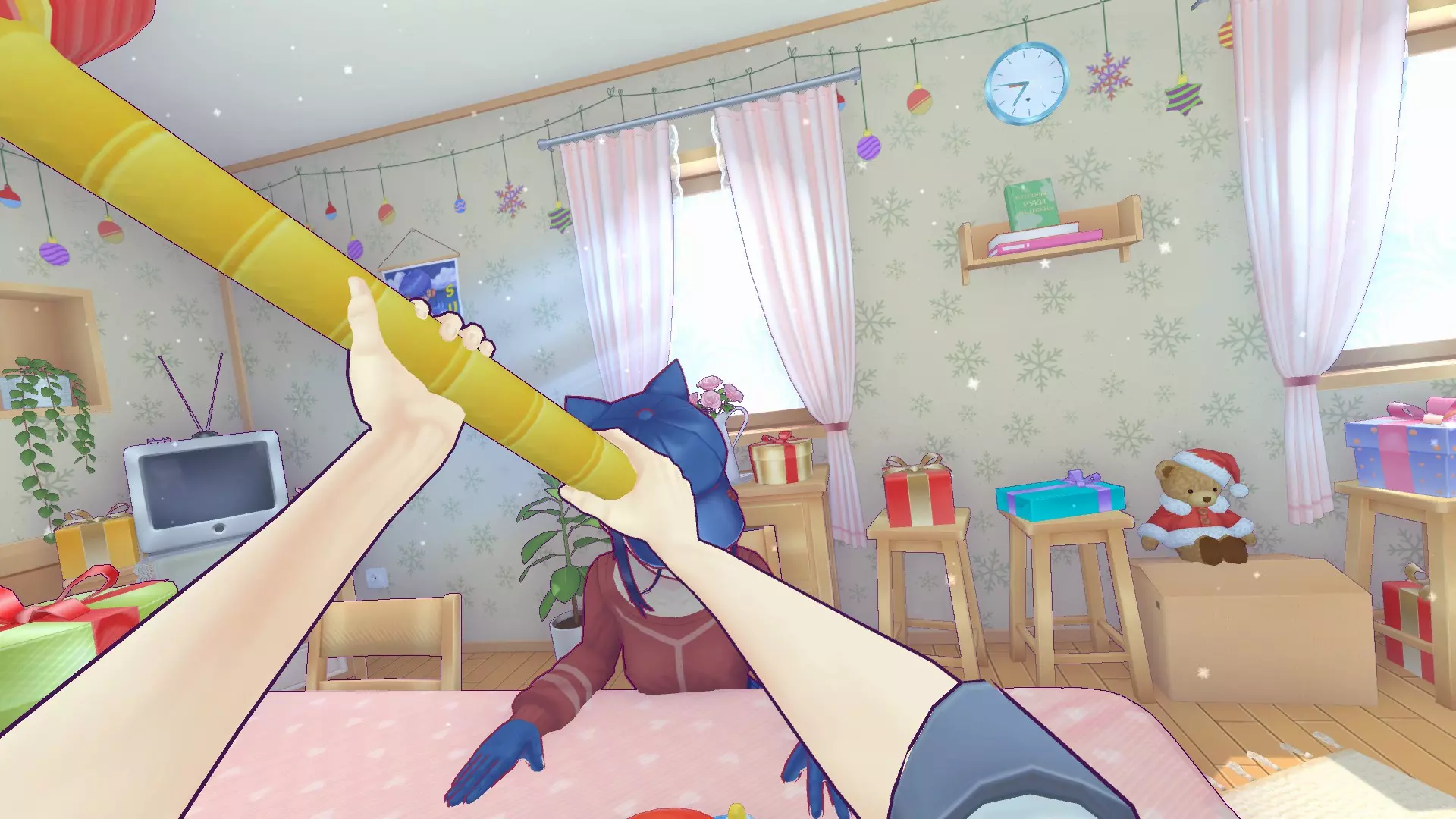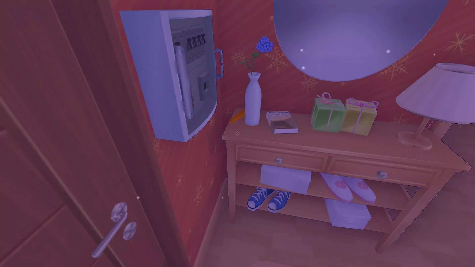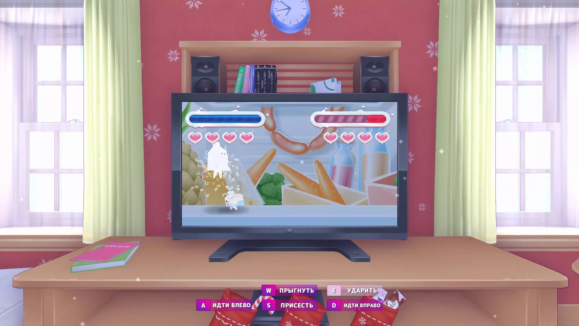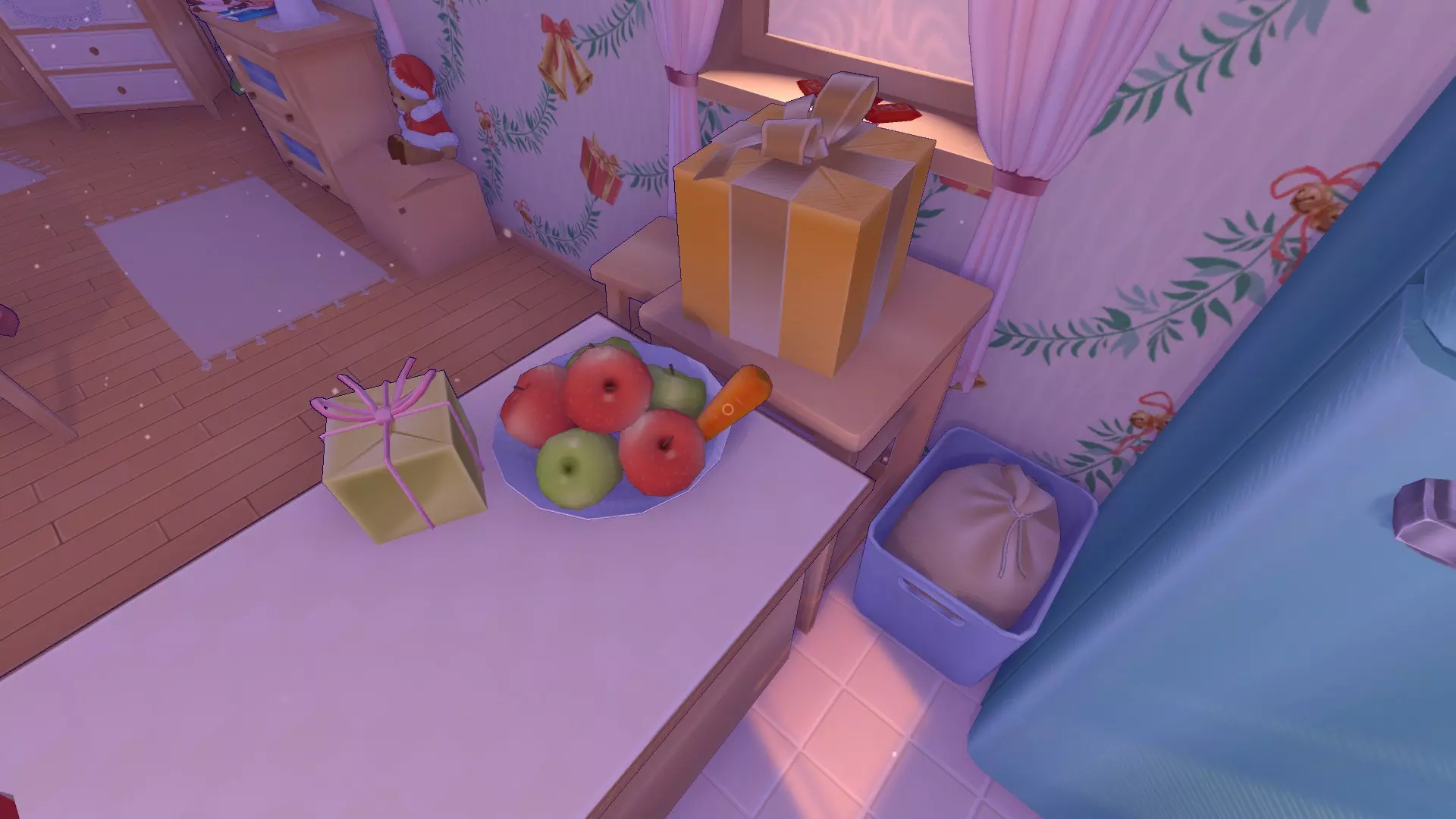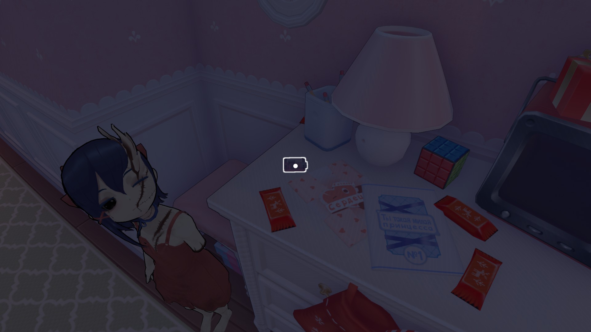 切完胡萝卜后,米塔会让我们去浴室拿剪刀。当我们坐到桌子旁时,她会给我们“爱情酱汁”,同意喝下酱汁就能获得成就。