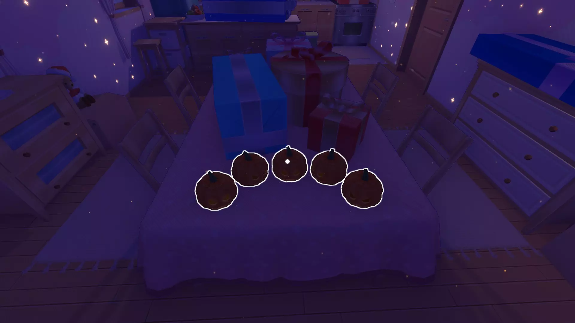 在“她想睡觉”章节中,厨房桌子上有五个南瓜,需要敲击它们,使所有南瓜都亮起来。