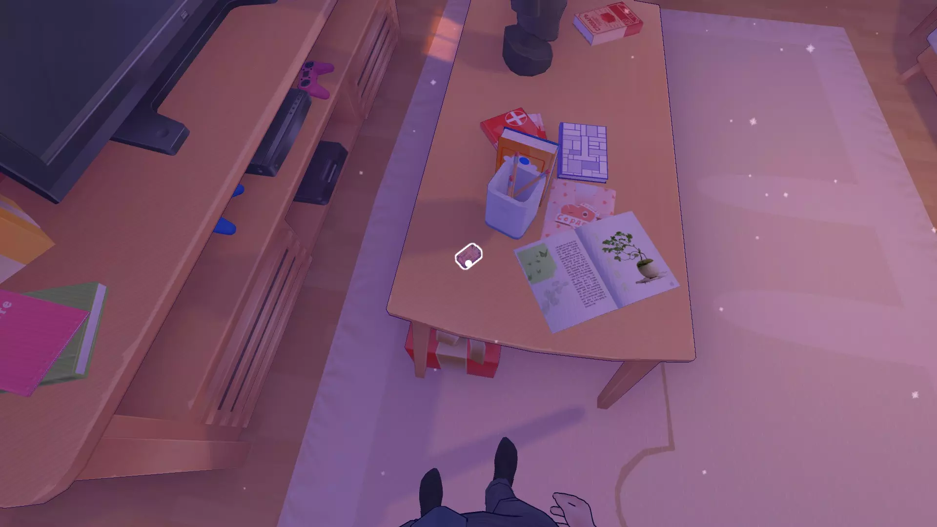 “阅读书籍与修复漏洞”章节位于大厅(客厅)的桌子上,旁边是铅笔架。