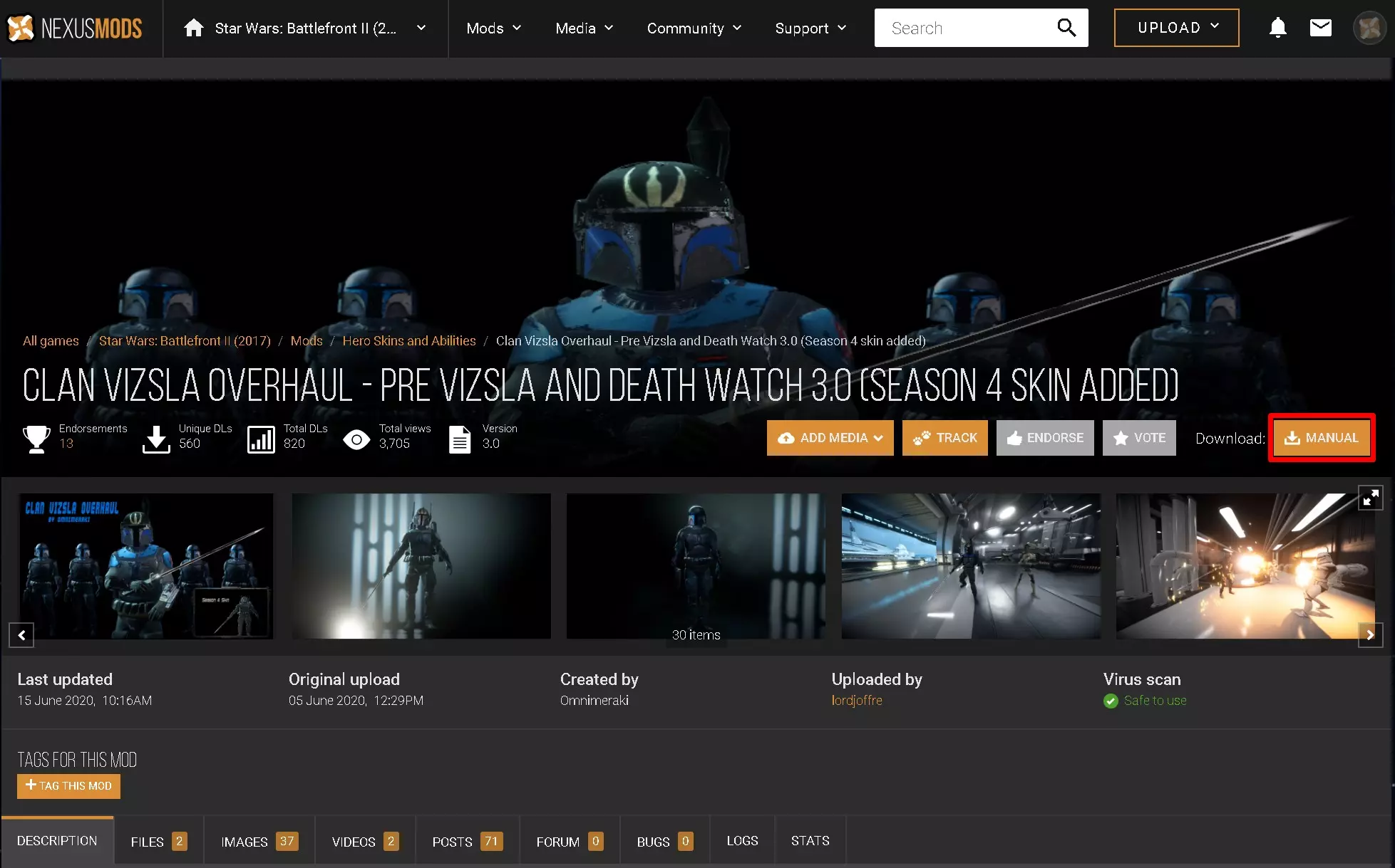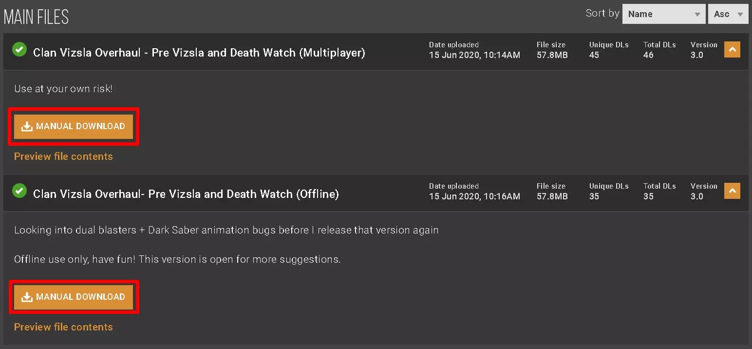 在本指南中,我将下载热门的【Pre Vizla Deathwatch】模组。(还有其他模组可供选择) 打开模组页面后,点击手动下载。