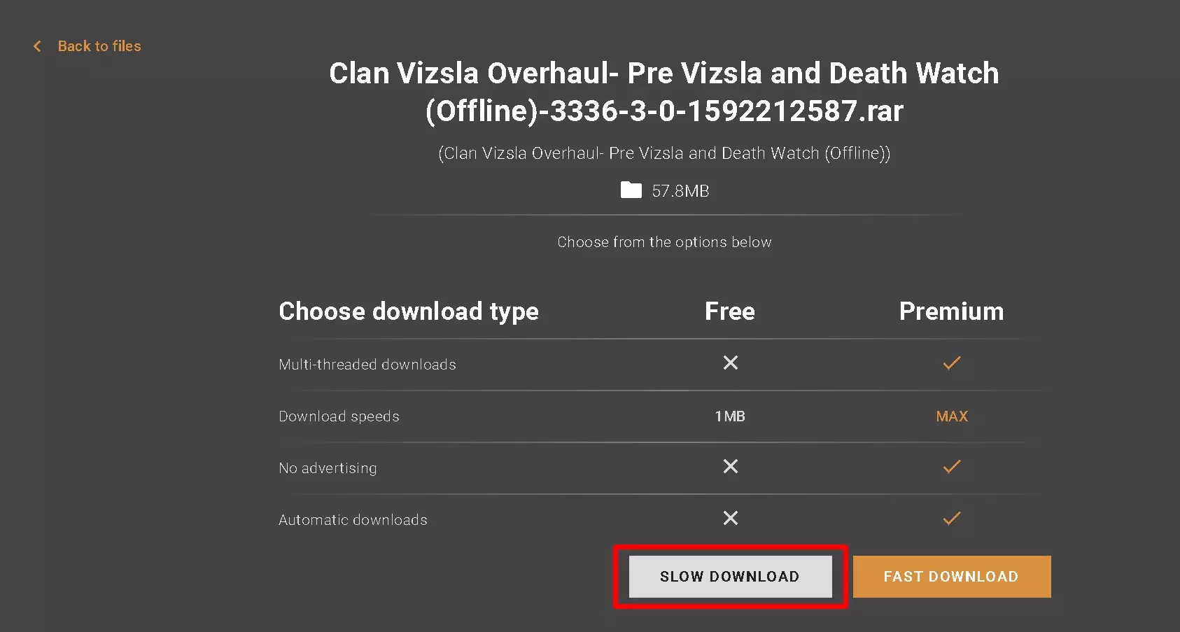 你可以两者都下载,或者只下载其中一个,也可以都不下载。这是个自由的国家,我无所谓。一旦你选择了其中一个,会打开另一个菜单。除非你已经解锁了高级版,否则请按【慢速】。不过根据我的个人经验,【慢速】并不慢。