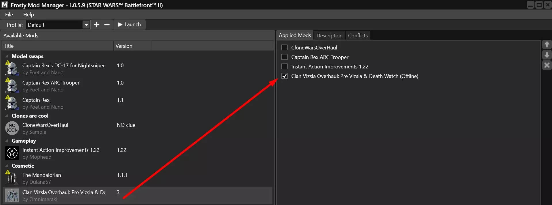 现在只需双击,它就应该会出现在已应用模组区域!