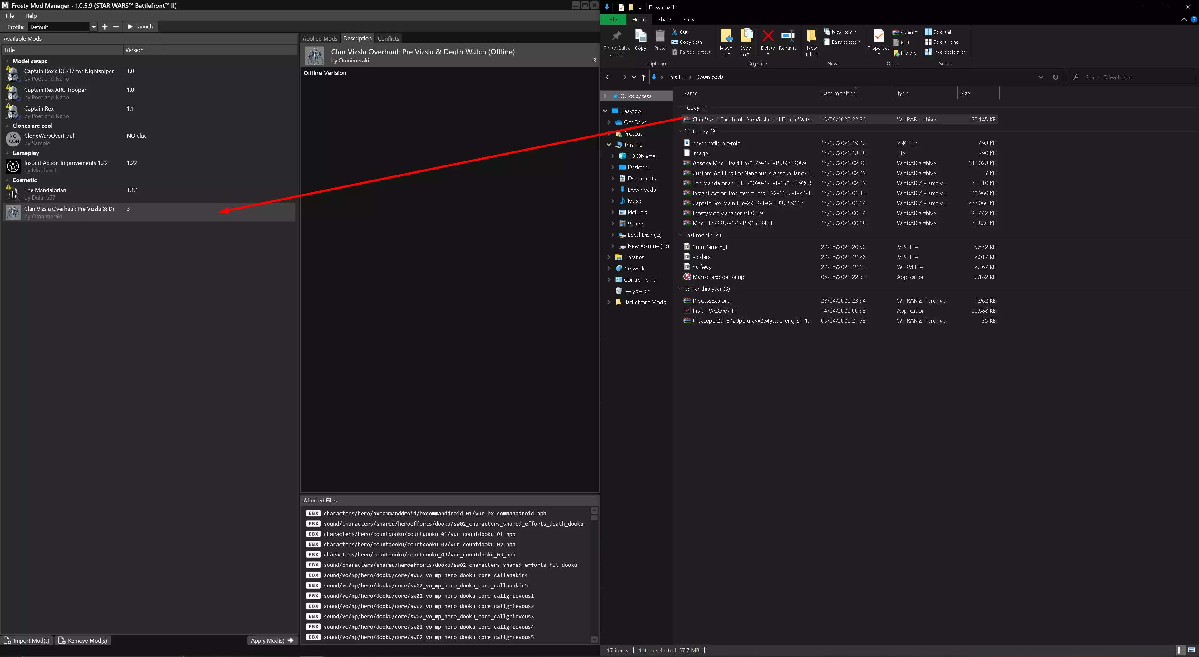 现在只需将mod从您的下载文件夹拖入Frosty即可!