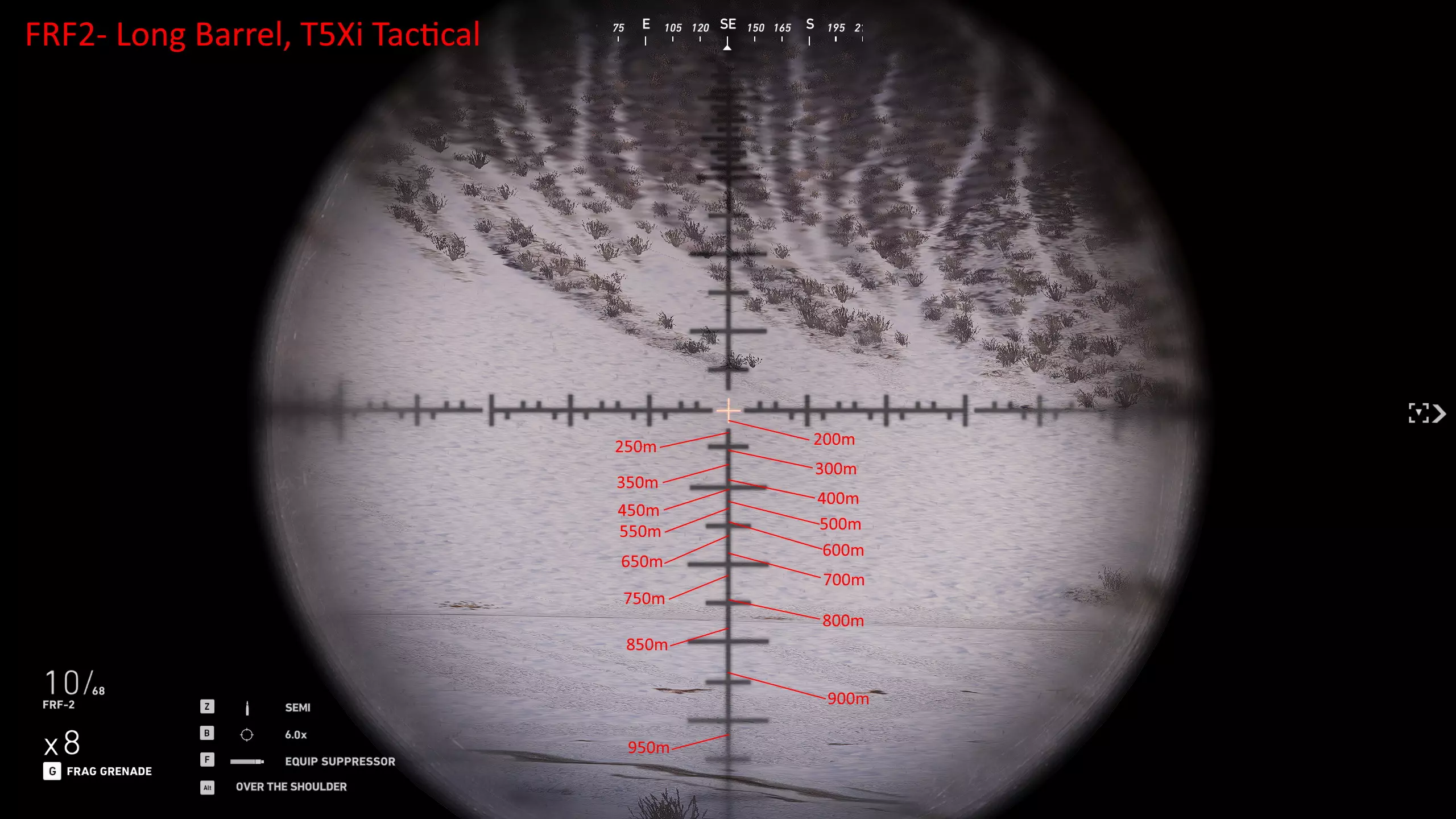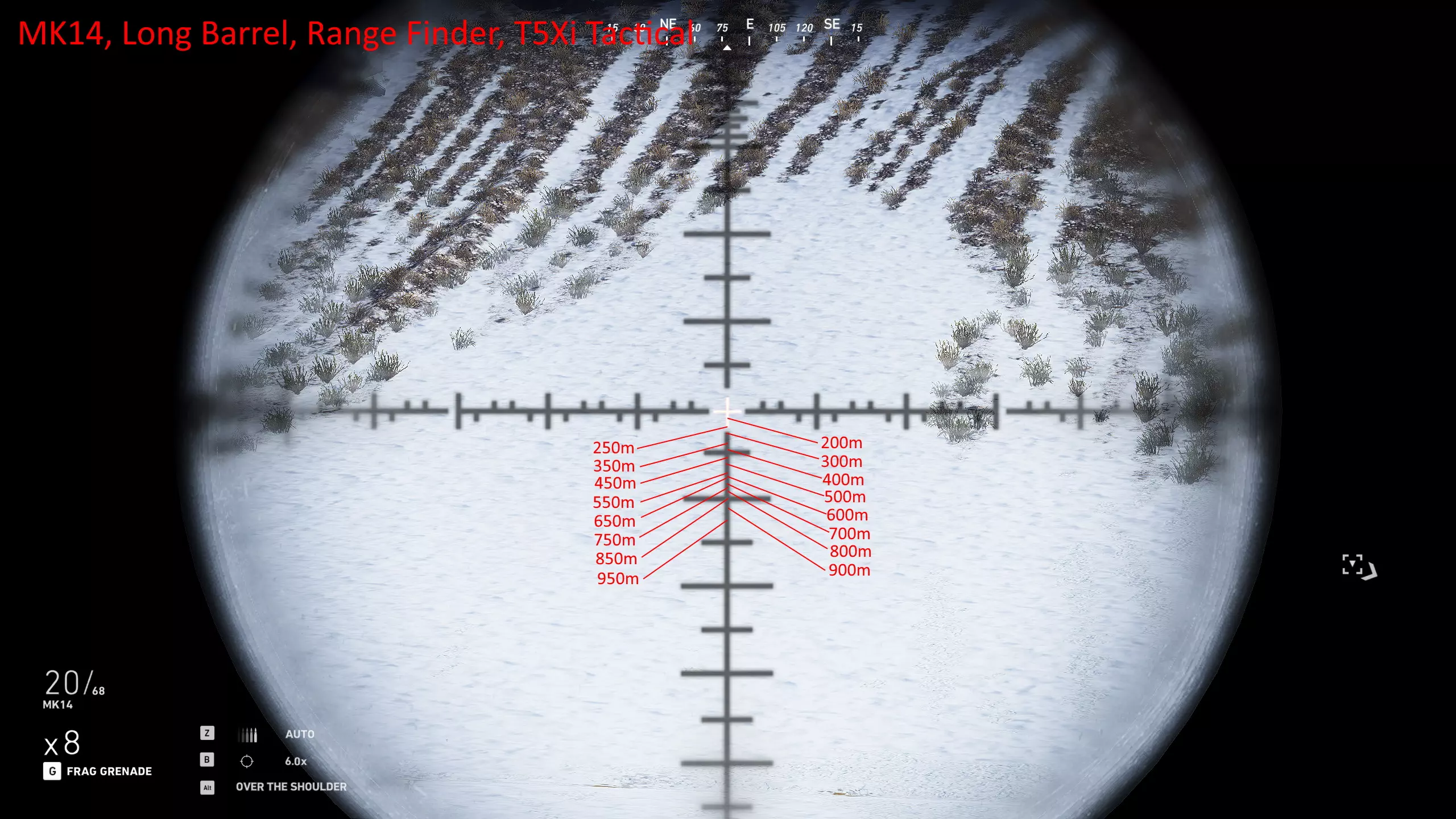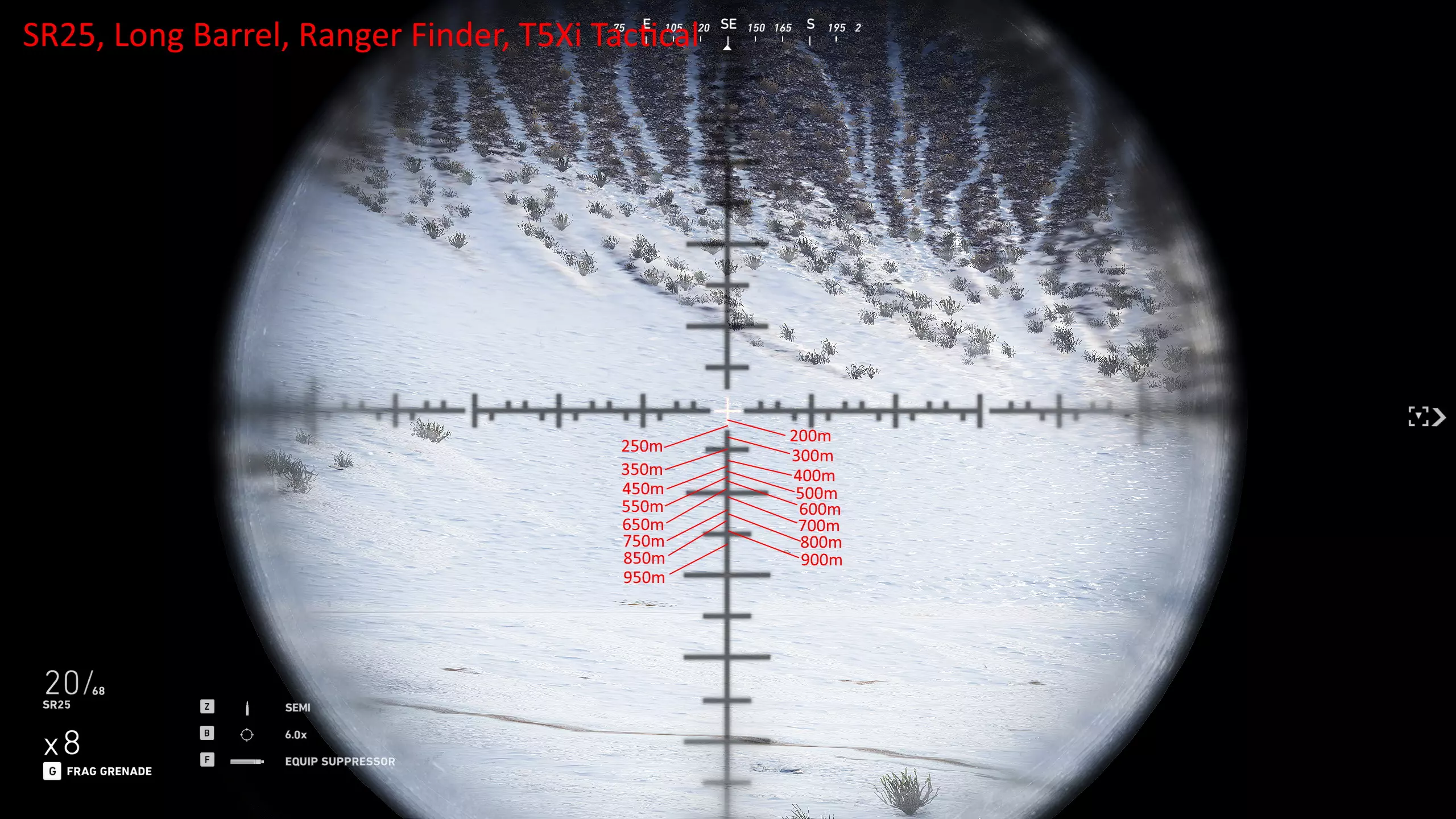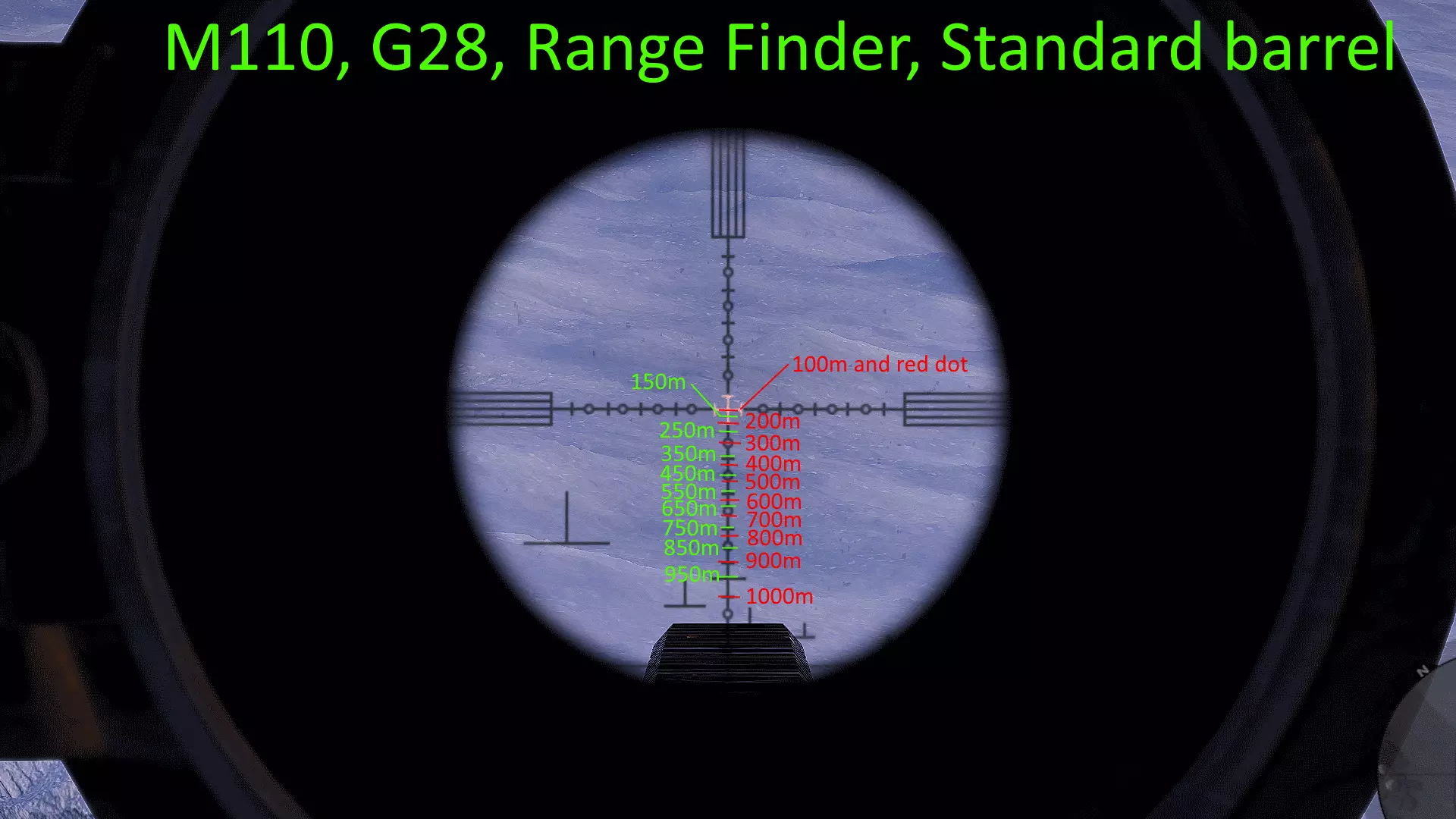 我玩了很久,花了大量时间对自己常用的武器进行射程归零,这样就能在副显示器上放一张图表,方便在任何距离轻松瞄准射击。以下是武器的完整列表和所选设置。 1000米是我为部分狙击枪设置的最大归零距离,在实际游戏中,大多数情况下你射击的距离不会超过600米,因为敌人不在视线范围内,不过现在你可以稍微利用一些技巧将最大归零距离设到1000米,以前在合作模式中可以设置得更远。普通步枪的归零距离则相对较短,因为它们的瞄准镜通常没有足够的刻度点可供使用。 要知道,游戏中的弹道轨迹并非弧线,而是先直线飞行,到达某一点后向下倾斜,然后继续直线飞行,直到下一个落点。因此我总是建议瞄准身体射击,只有当你与瞄准镜上的标记距离在5米以内时,才尝试爆头。 如果你想练习测距,可以前往山区的小村庄,那里其中一栋外围建筑上有一块不错的金属板,子弹击中时会产生火花且弹孔清晰可见。你需要往山上走一小段路,所以距离并非完全准确,但对于这款游戏来说已经足够接近了。 每张图片都列出了所使用的装备,有些枪械会出现两次,因为我使用了不同的配置。 战斗步枪:MK18、MDR和416
