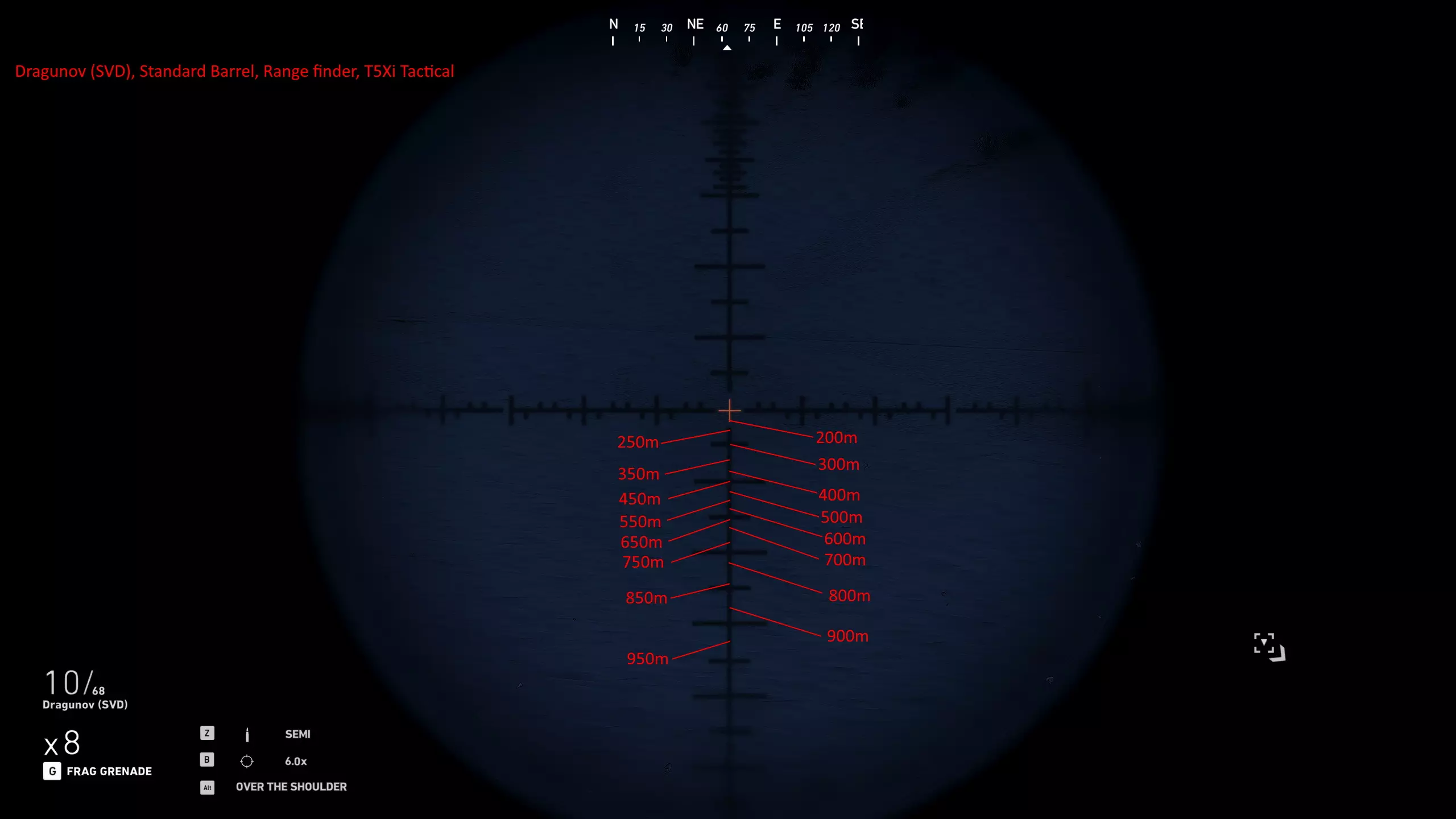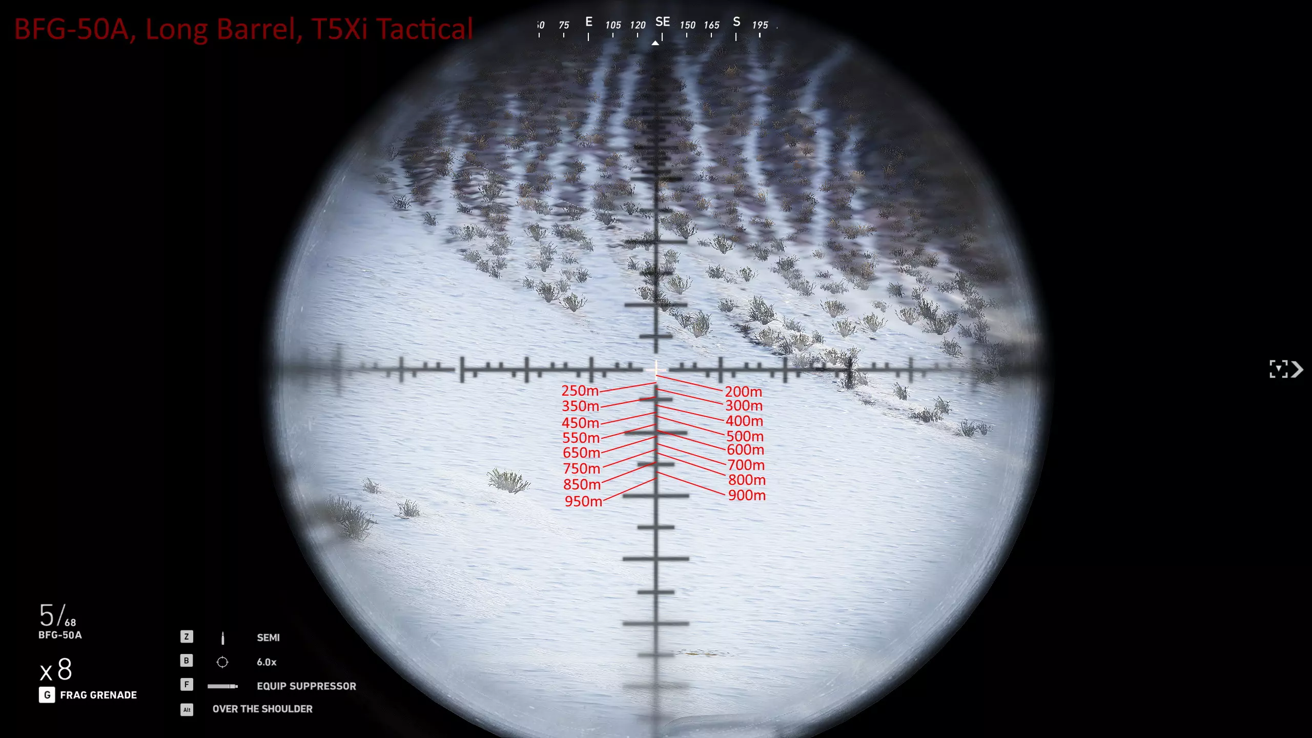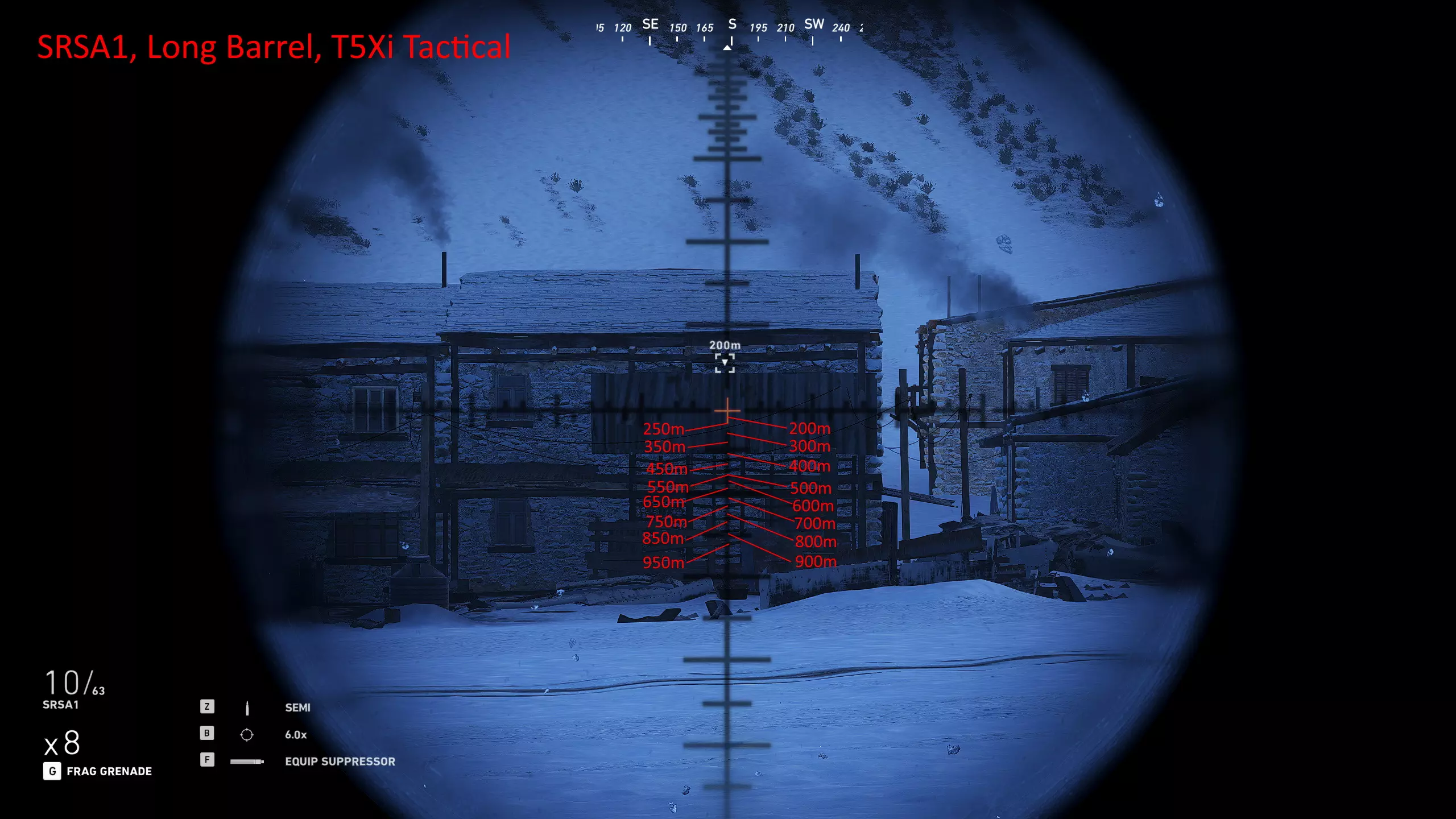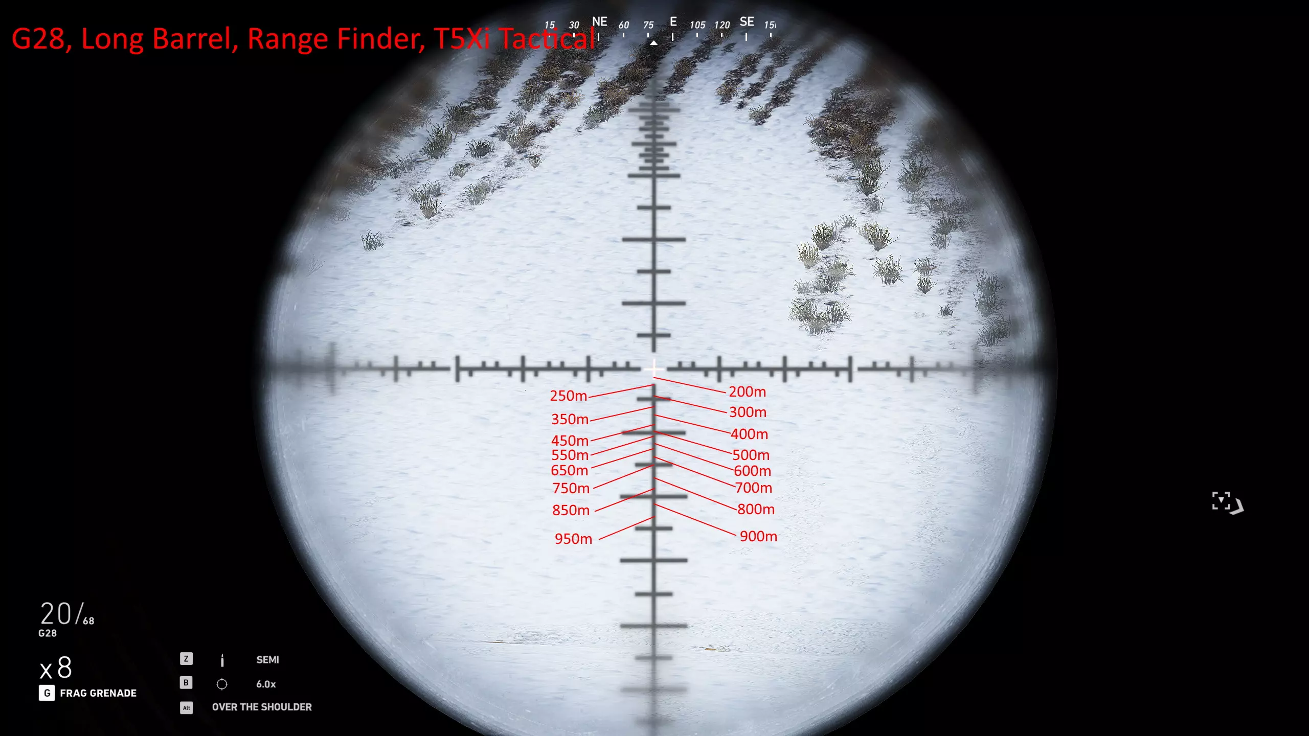 我玩了很久,花了大量时间对自己常用的武器进行射程归零,这样就能在副显示器上放一张图表,方便在任何距离轻松瞄准射击。以下是武器的完整列表和所选设置。 1000米是我为部分狙击枪设置的最大归零距离,在实际游戏中,大多数情况下你射击的距离不会超过600米,因为敌人不在视线范围内,不过现在你可以稍微利用一些技巧将最大归零距离设到1000米,以前在合作模式中可以设置得更远。普通步枪的归零距离则相对较短,因为它们的瞄准镜通常没有足够的刻度点可供使用。 要知道,游戏中的弹道轨迹并非弧线,而是先直线飞行,到达某一点后向下倾斜,然后继续直线飞行,直到下一个落点。因此我总是建议瞄准身体射击,只有当你与瞄准镜上的标记距离在5米以内时,才尝试爆头。 如果你想练习测距,可以前往山区的小村庄,那里其中一栋外围建筑上有一块不错的金属板,子弹击中时会产生火花且弹孔清晰可见。你需要往山上走一小段路,所以距离并非完全准确,但对于这款游戏来说已经足够接近了。 每张图片都列出了所使用的装备,有些枪械会出现两次,因为我使用了不同的配置。 战斗步枪:MK18、MDR和416