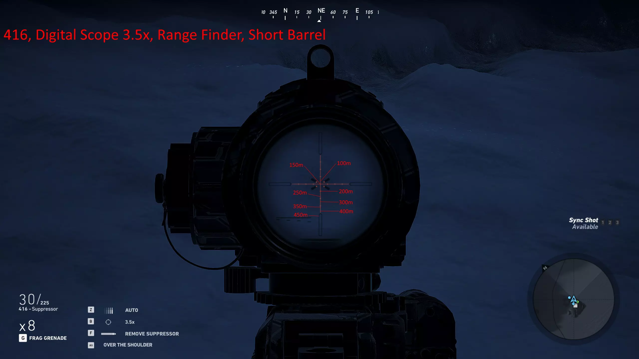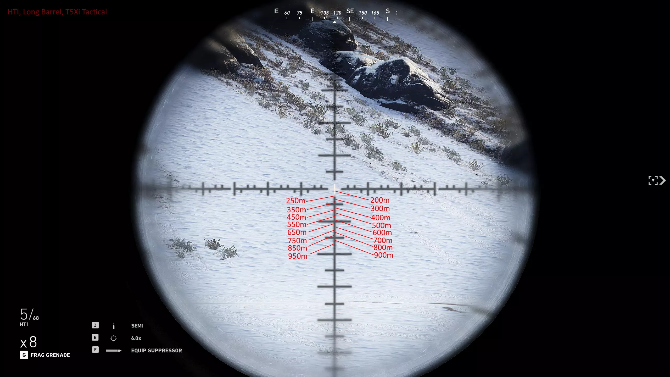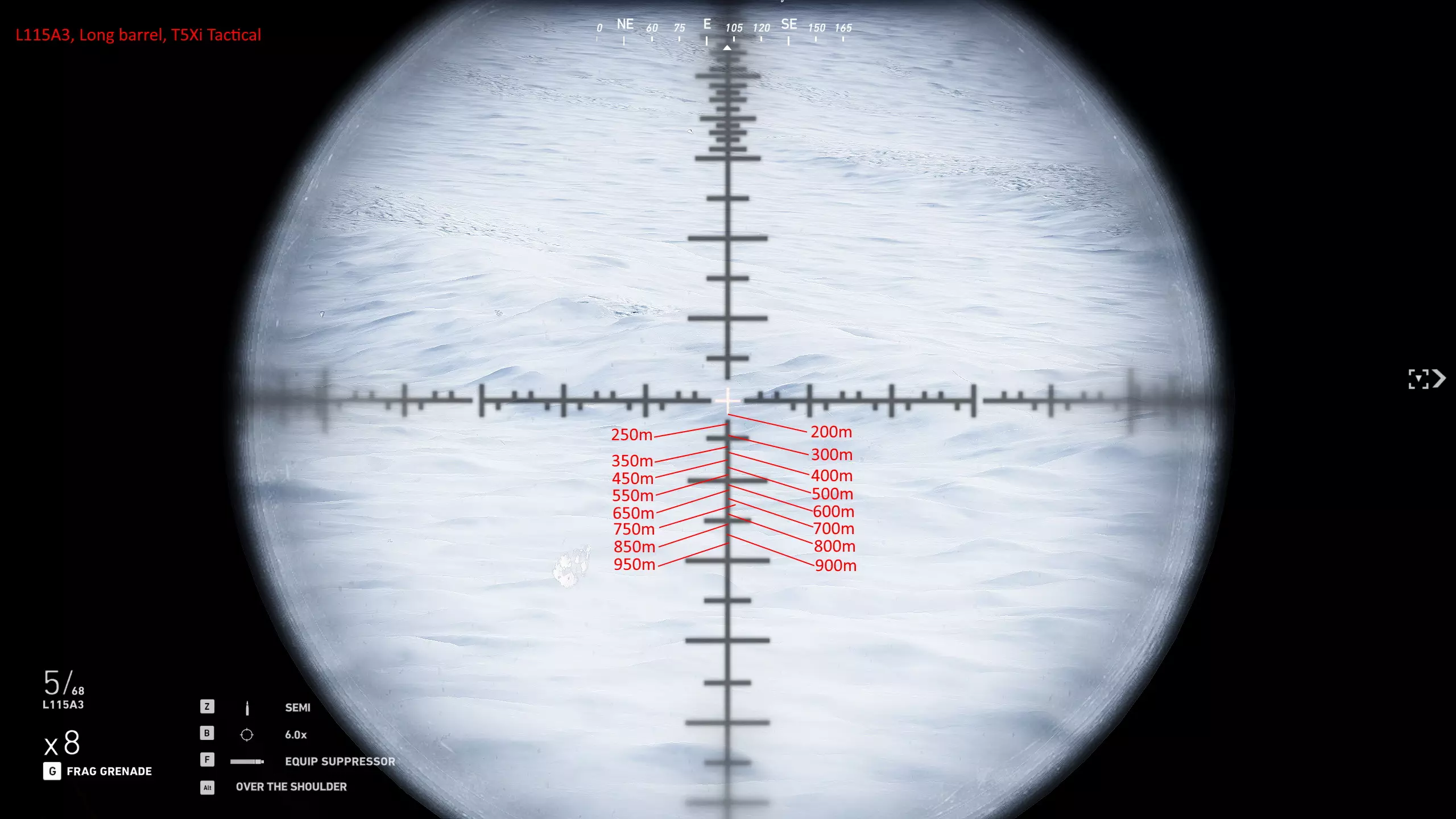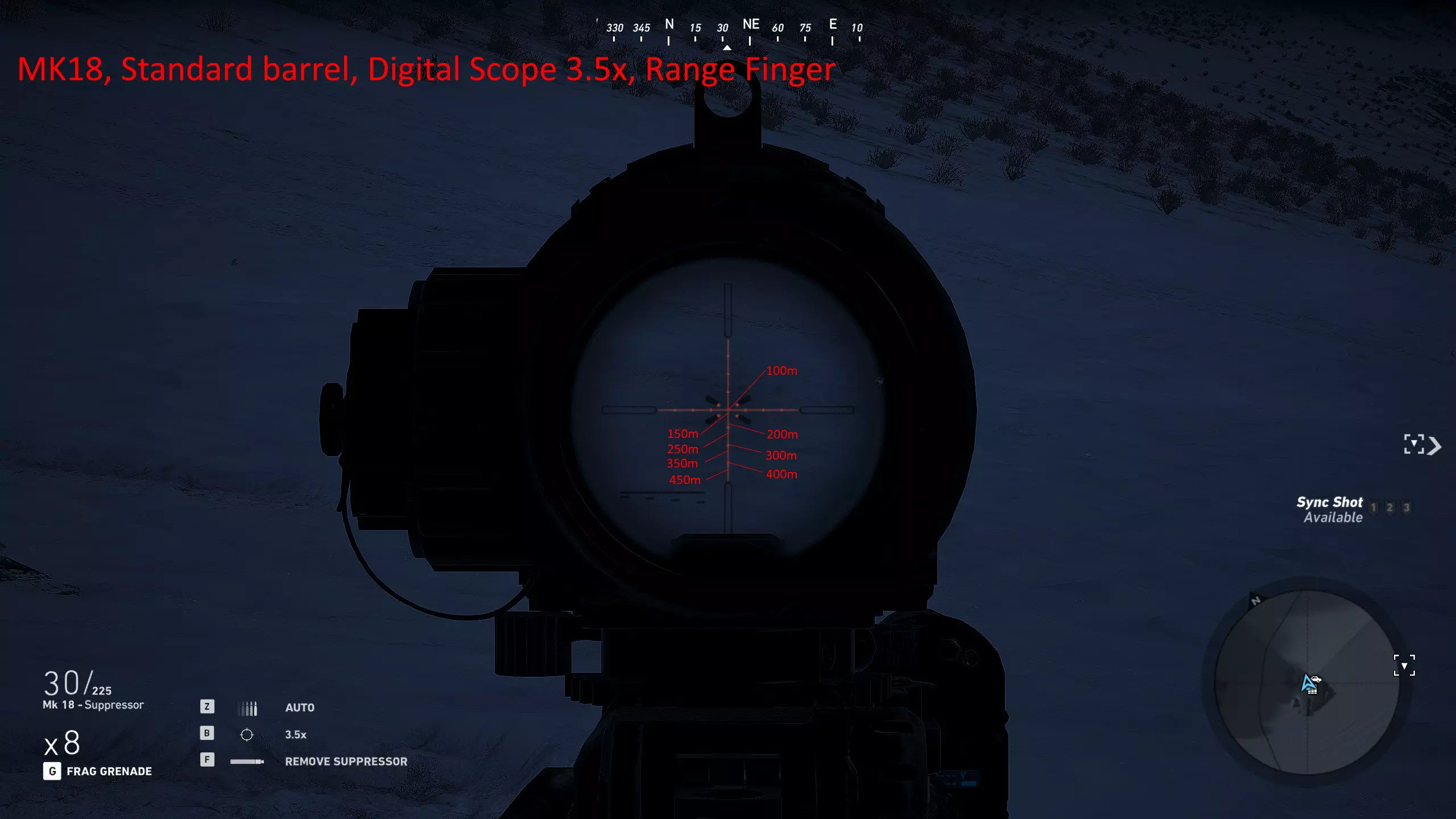 我玩了很久,花了大量时间对自己常用的武器进行射程归零,这样就能在副显示器上放一张图表,方便在任何距离轻松瞄准射击。以下是武器的完整列表和所选设置。 1000米是我为部分狙击枪设置的最大归零距离,在实际游戏中,大多数情况下你射击的距离不会超过600米,因为敌人不在视线范围内,不过现在你可以稍微利用一些技巧将最大归零距离设到1000米,以前在合作模式中可以设置得更远。普通步枪的归零距离则相对较短,因为它们的瞄准镜通常没有足够的刻度点可供使用。 要知道,游戏中的弹道轨迹并非弧线,而是先直线飞行,到达某一点后向下倾斜,然后继续直线飞行,直到下一个落点。因此我总是建议瞄准身体射击,只有当你与瞄准镜上的标记距离在5米以内时,才尝试爆头。 如果你想练习测距,可以前往山区的小村庄,那里其中一栋外围建筑上有一块不错的金属板,子弹击中时会产生火花且弹孔清晰可见。你需要往山上走一小段路,所以距离并非完全准确,但对于这款游戏来说已经足够接近了。 每张图片都列出了所使用的装备,有些枪械会出现两次,因为我使用了不同的配置。 战斗步枪:MK18、MDR和416