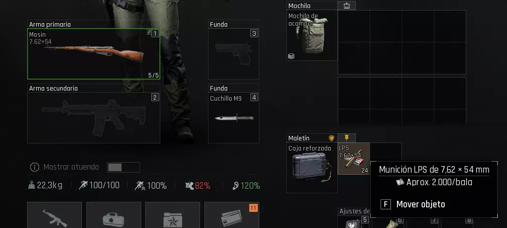 尤其是莫辛纳甘或SKS,你可以保留子弹而不会丢失。只会有5发子弹进入你的背包或防弹衣,而不是全部。