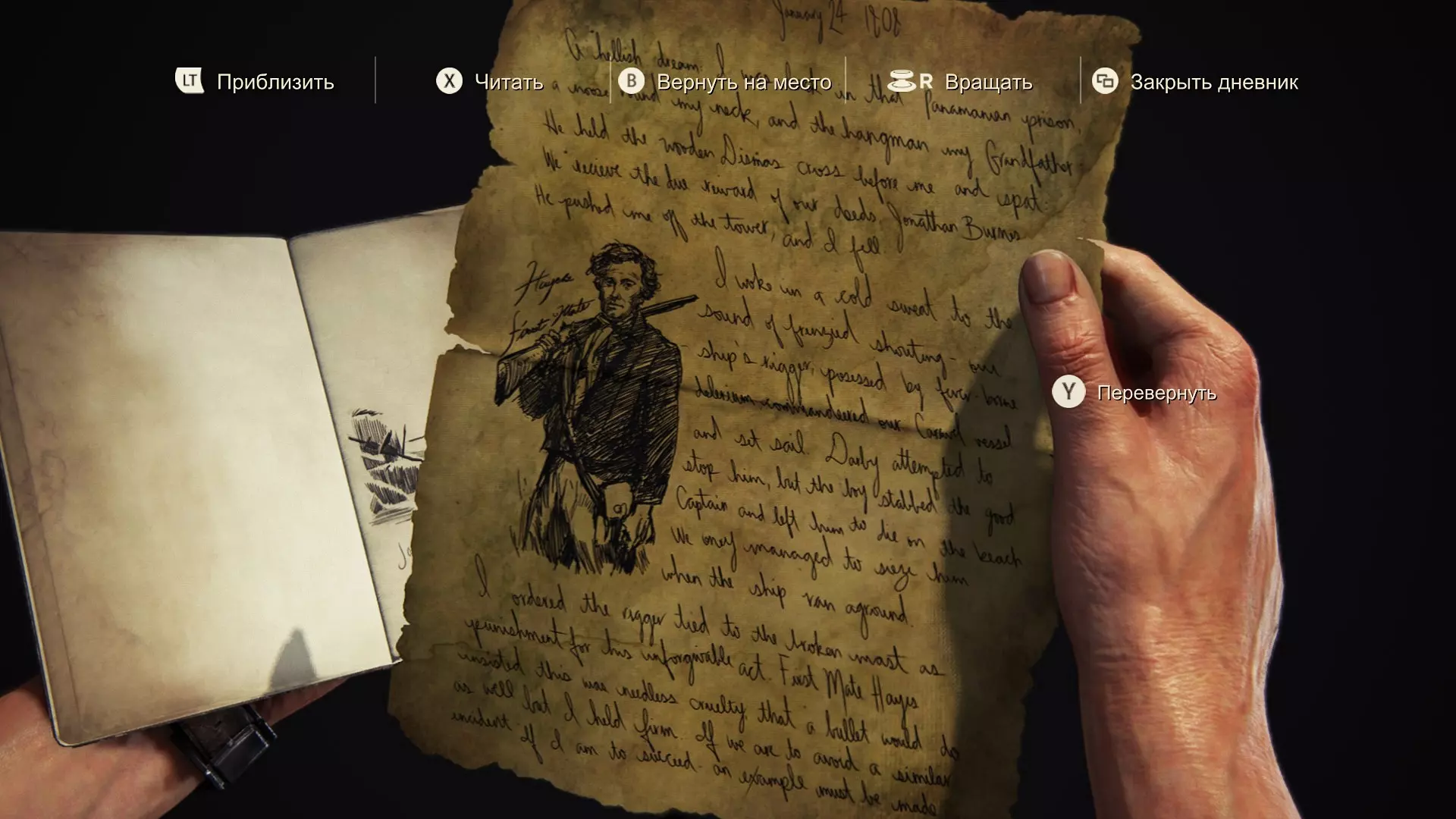 1808年1月24日 可怕的噩梦:我仿佛又回到了巴拿马的监狱,脖子上套着绞索。而刽子手竟然是我的祖父。他把一个刻有圣迪斯马斯的木制十字架塞到我鼻子底下,低声说:“每个人都会得到应有的报应,乔纳森·伯恩斯。”然后他把我从塔上推了下去,我便坠落下去。 我浑身冷汗地醒来。外面传来可怕的尖叫:我们的水手长在胡言乱语中控制了卡拉维尔帆船,升起了船帆。达比试图阻止他,但那小混蛋用刀刺中了船长,把他丢在岸边等死。直到船搁浅,他们才抓住了那小子。 作为对这些罪行的惩罚,我下令把他绑在断裂的桅杆上。大副海斯坚持认为这过于残忍,觉得用枪处决就够了,但我立场坚定。如果我们想在未来避免类似的事情,如果我想达成目标,这次处决必须具有警示意义。我们把从卡拉维尔船上抢救出来的物资搬到了剩下的船上。 临近夜晚,我们回到山洞,将可怜的达比船长安葬。人们开始为起航做准备,但我听到他们在低声抱怨,对我们的计划能否成功产生了怀疑。于是我把他们召集到达比的墓前,宣布道:“愿他的死并非徒劳。我们已经离目标很近了。埃弗里的宝藏在等着我们!”说实话,当时我唯一确定的就是让克莱尔留在家里这个决定是正确的。这种事情对她这种心思细腻的人来说太沉重了。或许对我来说也是如此,但我不能退缩。这不仅关系到我个人的荣誉,也关系到我家族的荣誉。