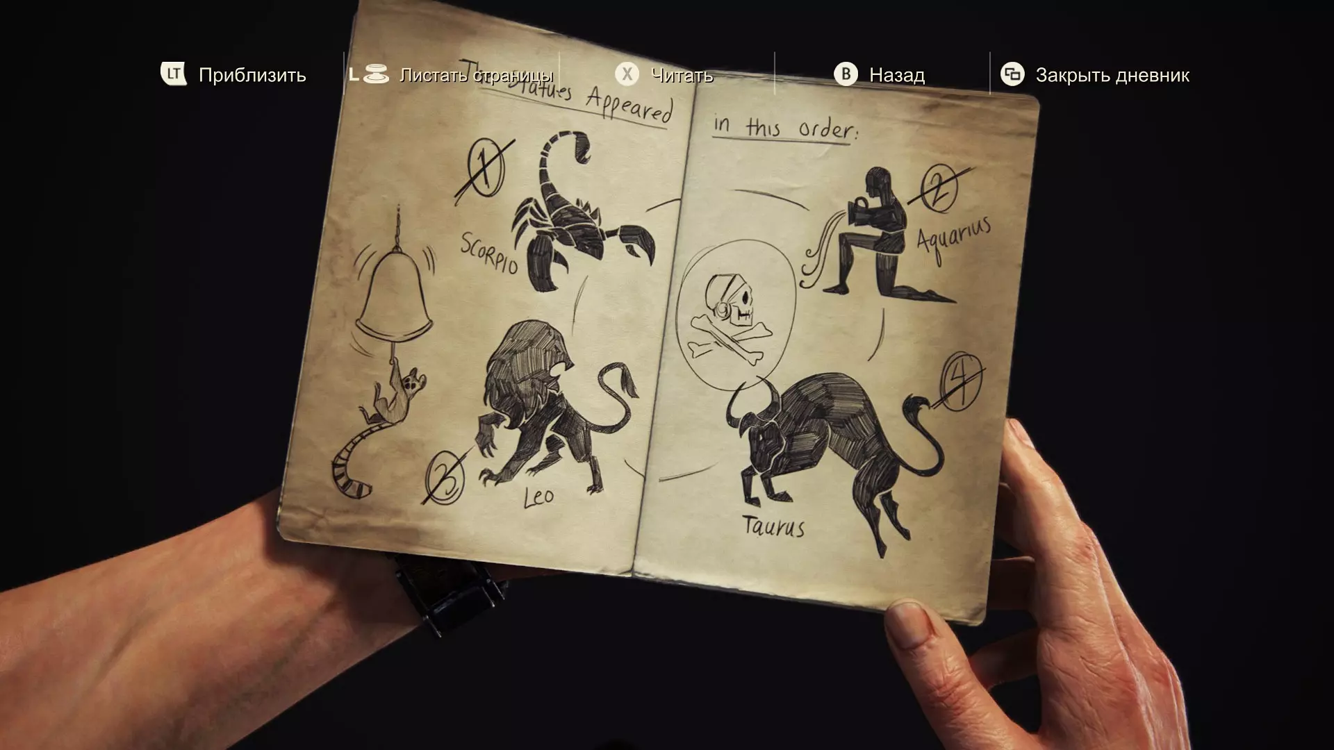 雕像出现顺序如下: 1. 蝎子 2. 水瓶座 3. 狮子 4. 金牛座 第43-48页