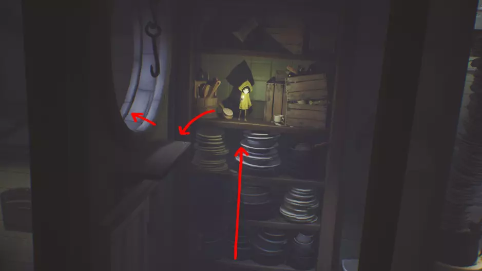 最后的光源(5/5)当你到达 bosses 正在洗碗的房间时,向左走并爬上柜子,然后抓住钩子,等待它带你到达最后的光源。