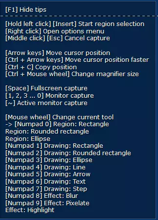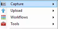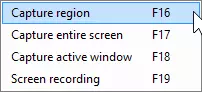 工作流程与我们在第一章中描述的已分配F键有关。捕获菜单中的部分功能已链接到某个F键。最常用的功能包括全屏捕获、窗口捕获或从窗口/屏幕中捕获特定区域。如果已设置F键,建议重新检查并确认是否符合需求。 提示:若要从预定义的方形区域进行捕获,需先选择“区域”,然后将鼠标移至要捕获的区域部分。此时会逐格高亮显示该方形区域。