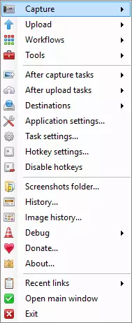 在ShareX的主菜单中,你会看到4个部分:我们在此讨论第一部分。 捕获全屏:这很简单。如果你有多个屏幕,你可以进行多屏幕捕获! 窗口>>:如果你不想要全屏,选择“窗口”,然后从列表中选择窗口。 显示器>>:在这里你可以选择要捕获的显示器全屏。 区域:使用F键捕获区域,移动鼠标(不要点击!)以查看该区域中不同的标记方形部分。左键点击保存。
