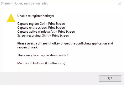 重启ShareX后,你会看到另一个弹窗,提示热键设置不可用。