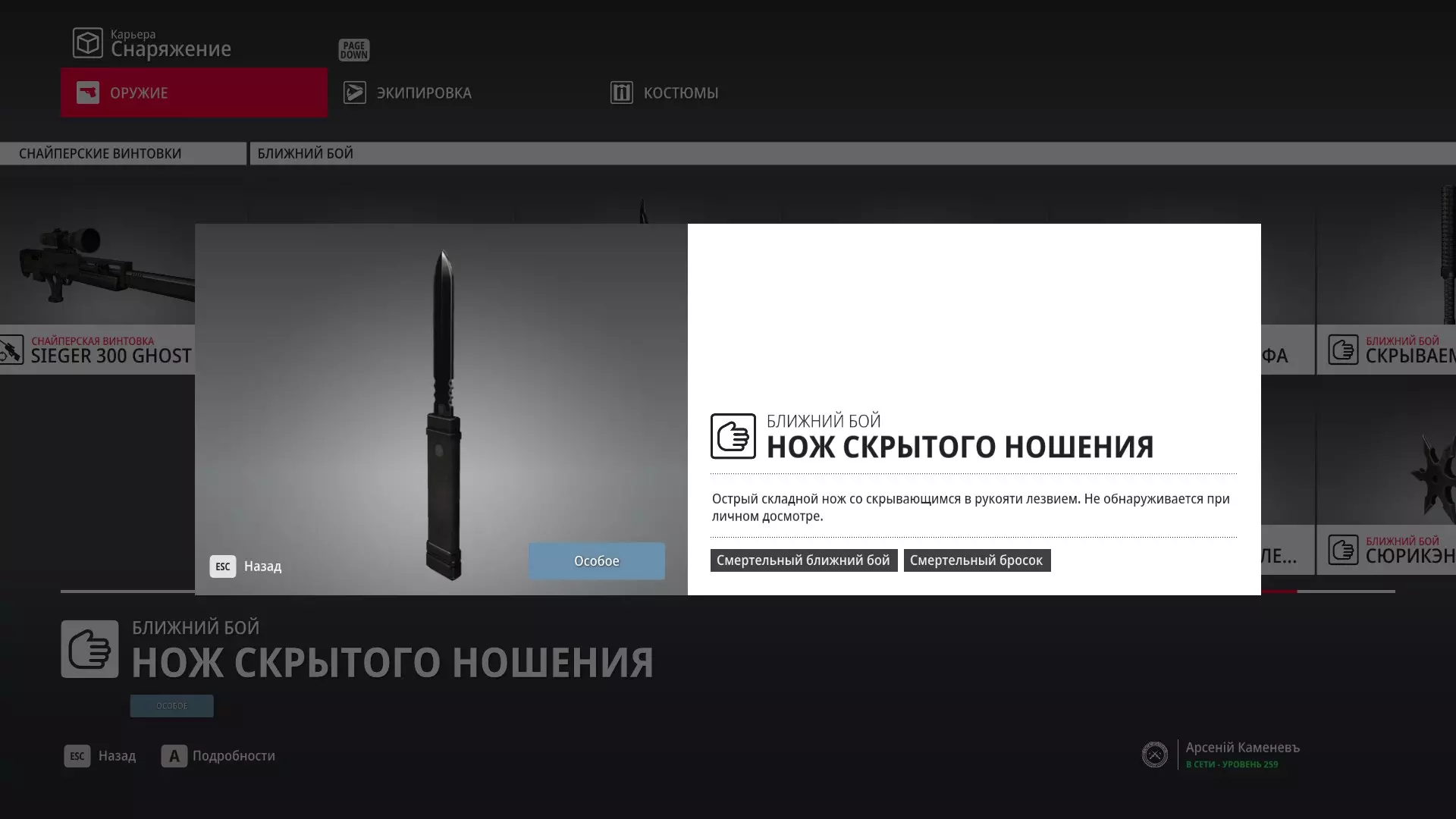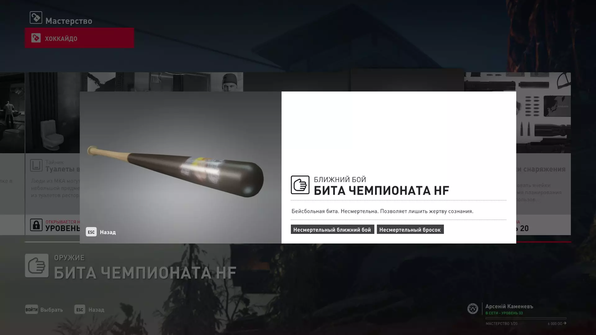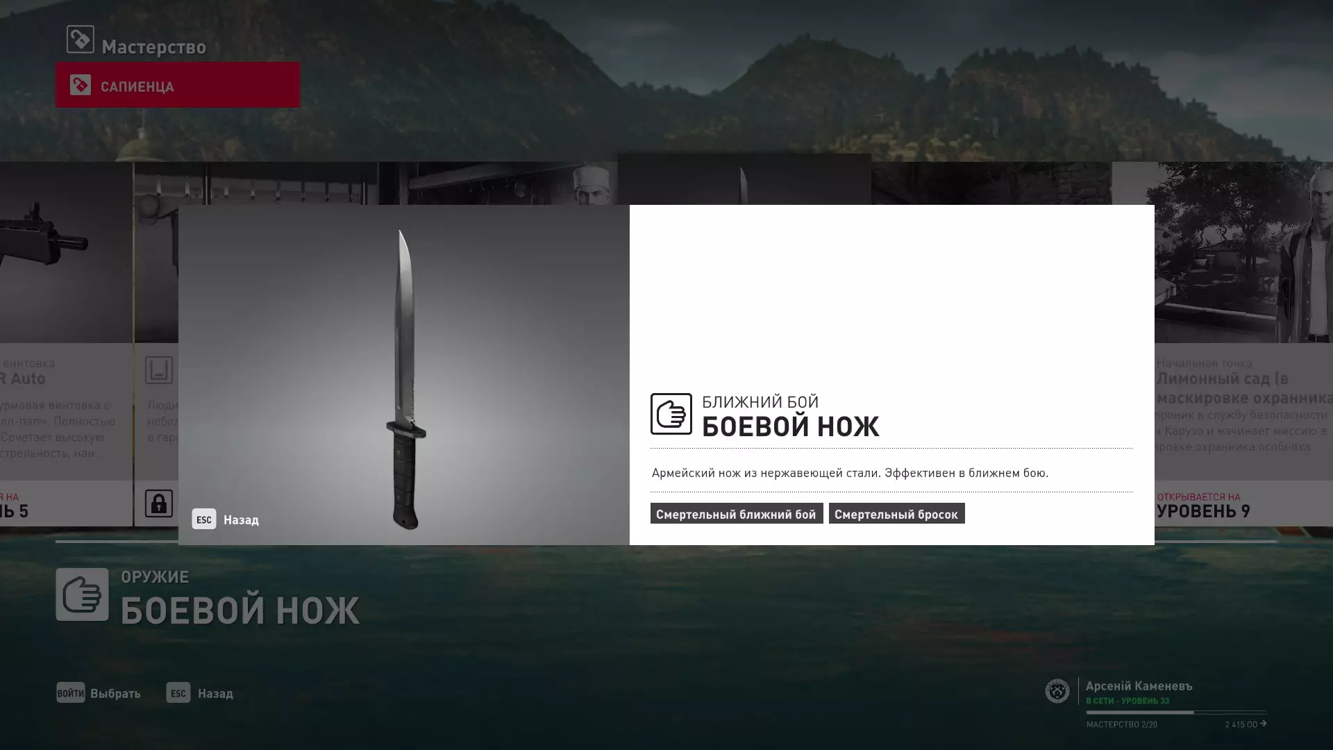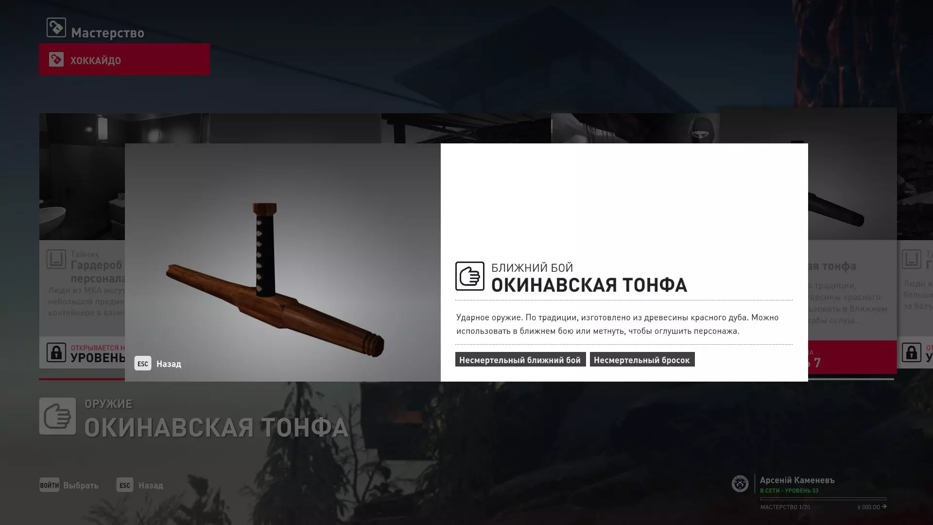 7级熟练度:在厨房的初始位置,伪装成厨师并持有战斗刀