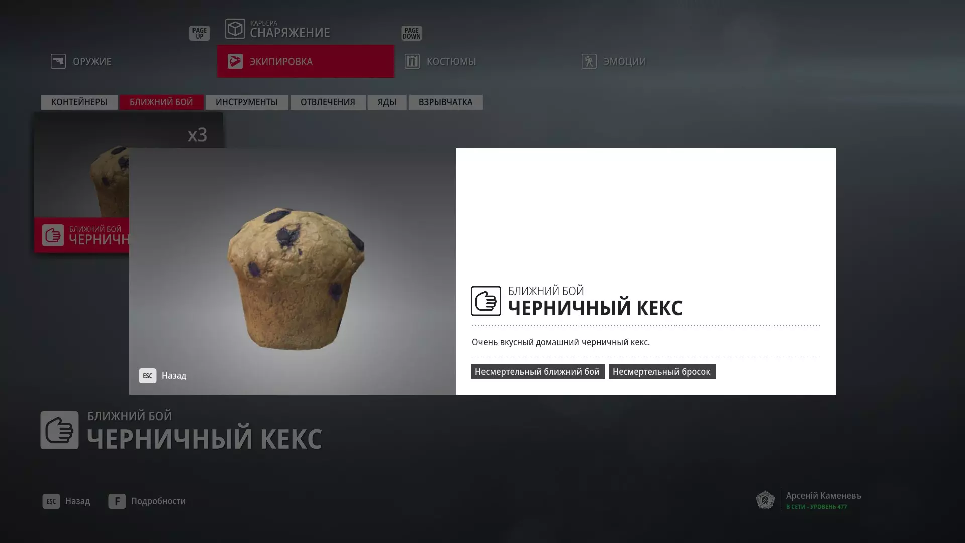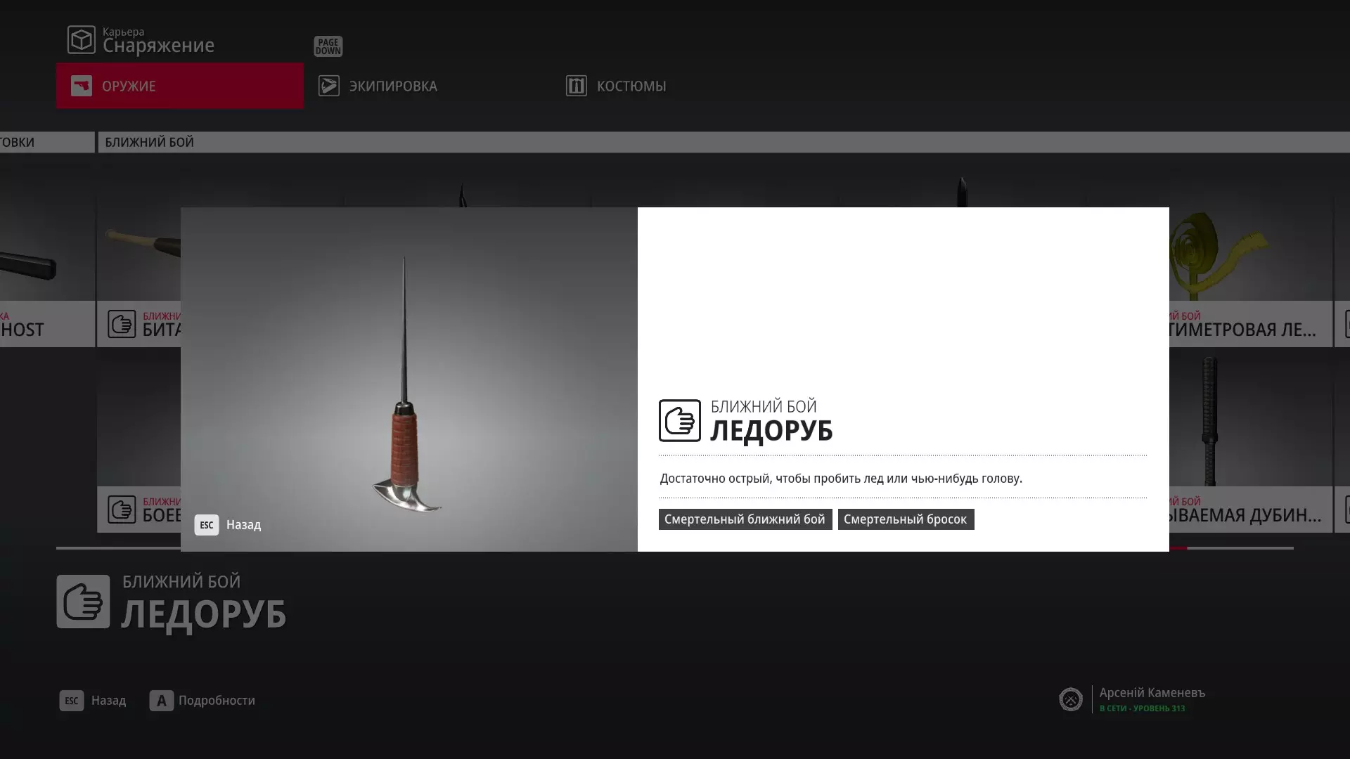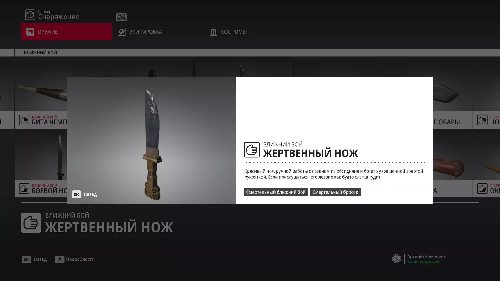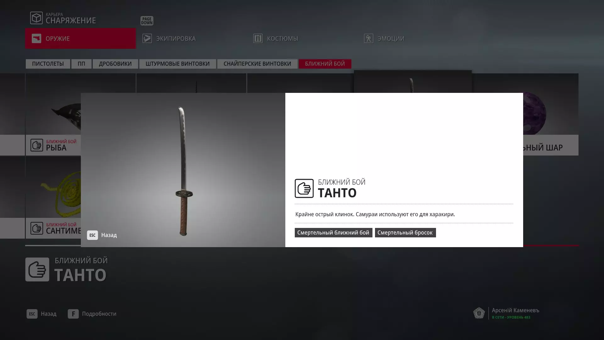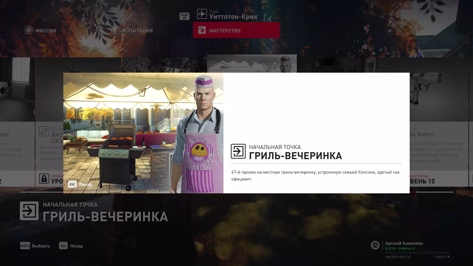 7级熟练度:在厨房的初始位置,伪装成厨师并持有战斗刀