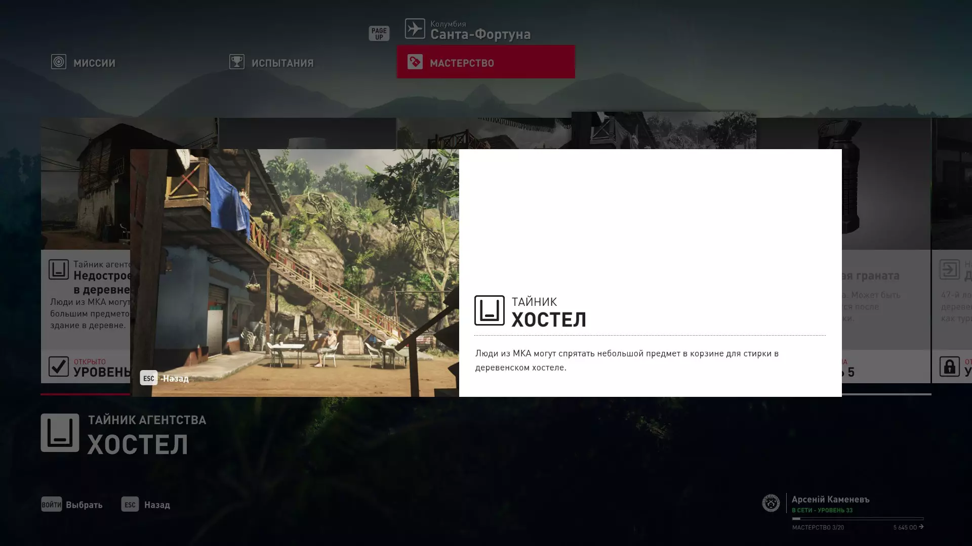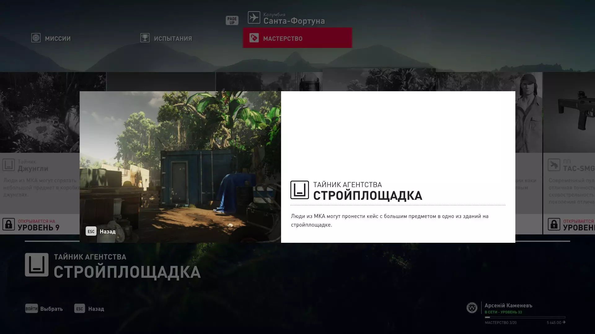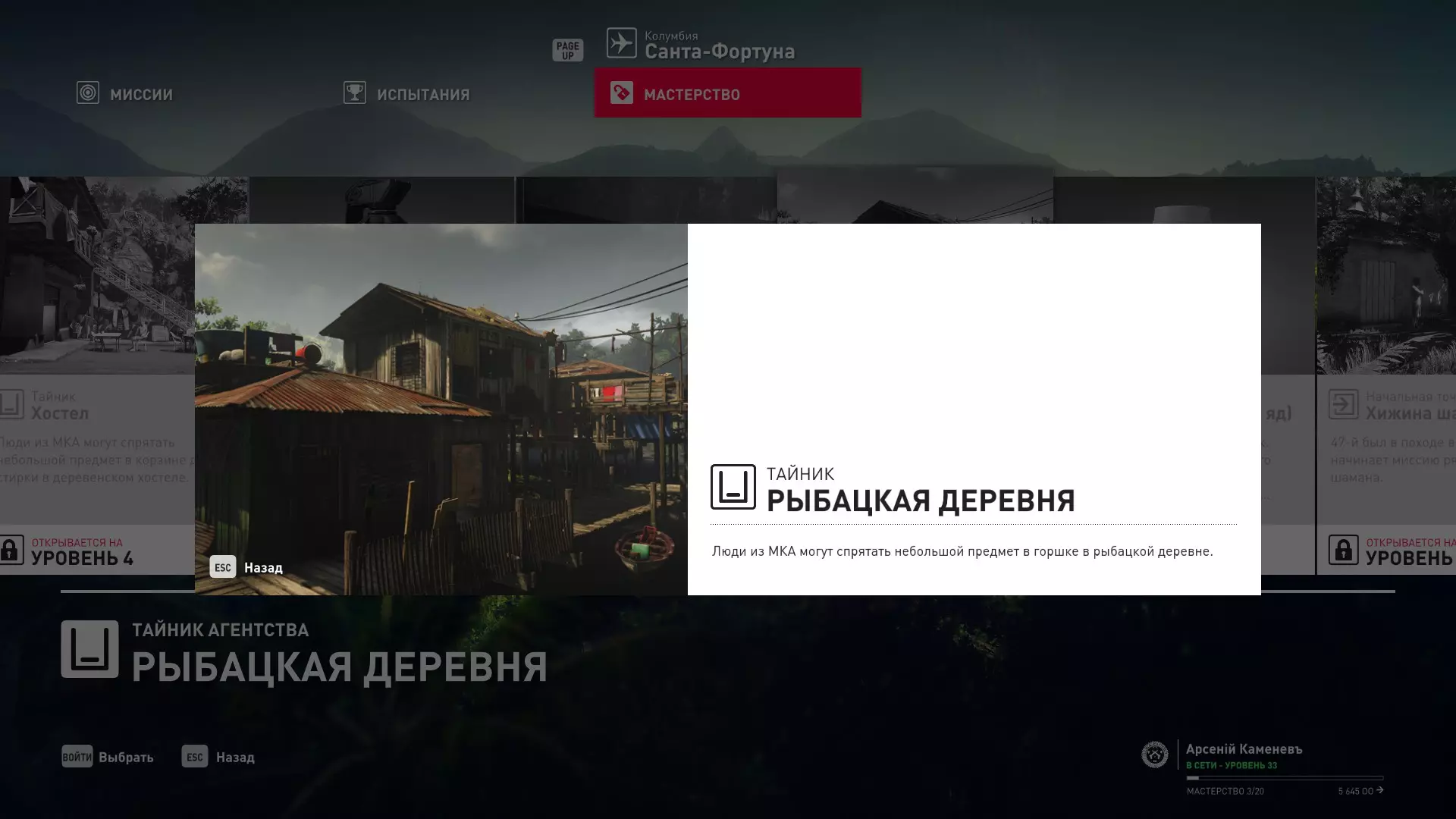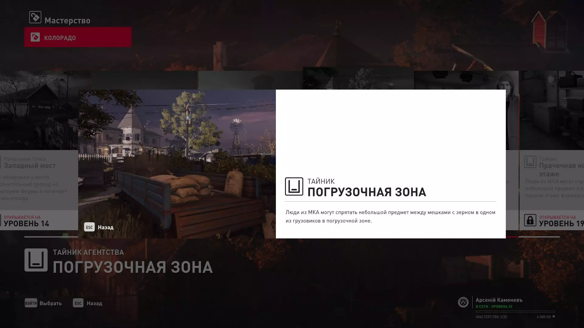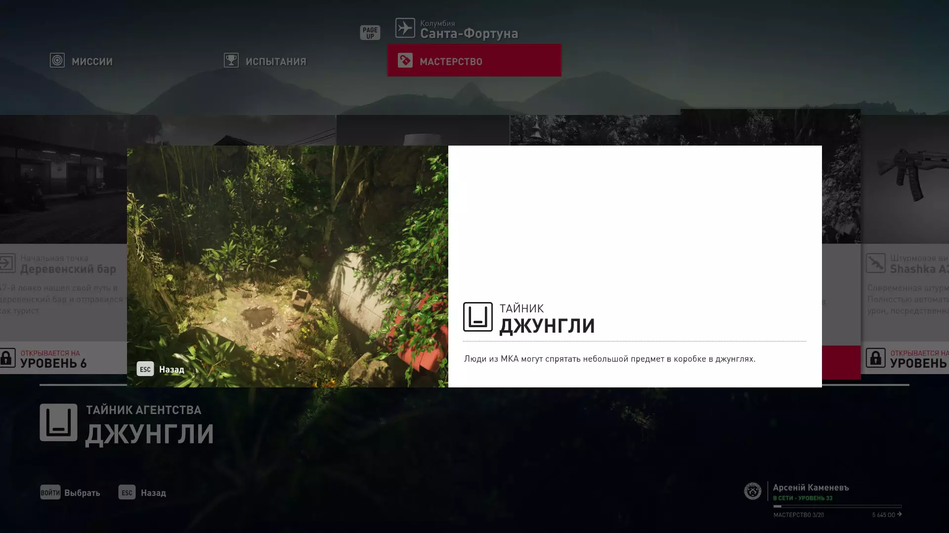 17级熟练度:在山丘的起始点伪装成“沃罗诺夫帮”成员,以及兰扎纳塔中的MKA藏身处