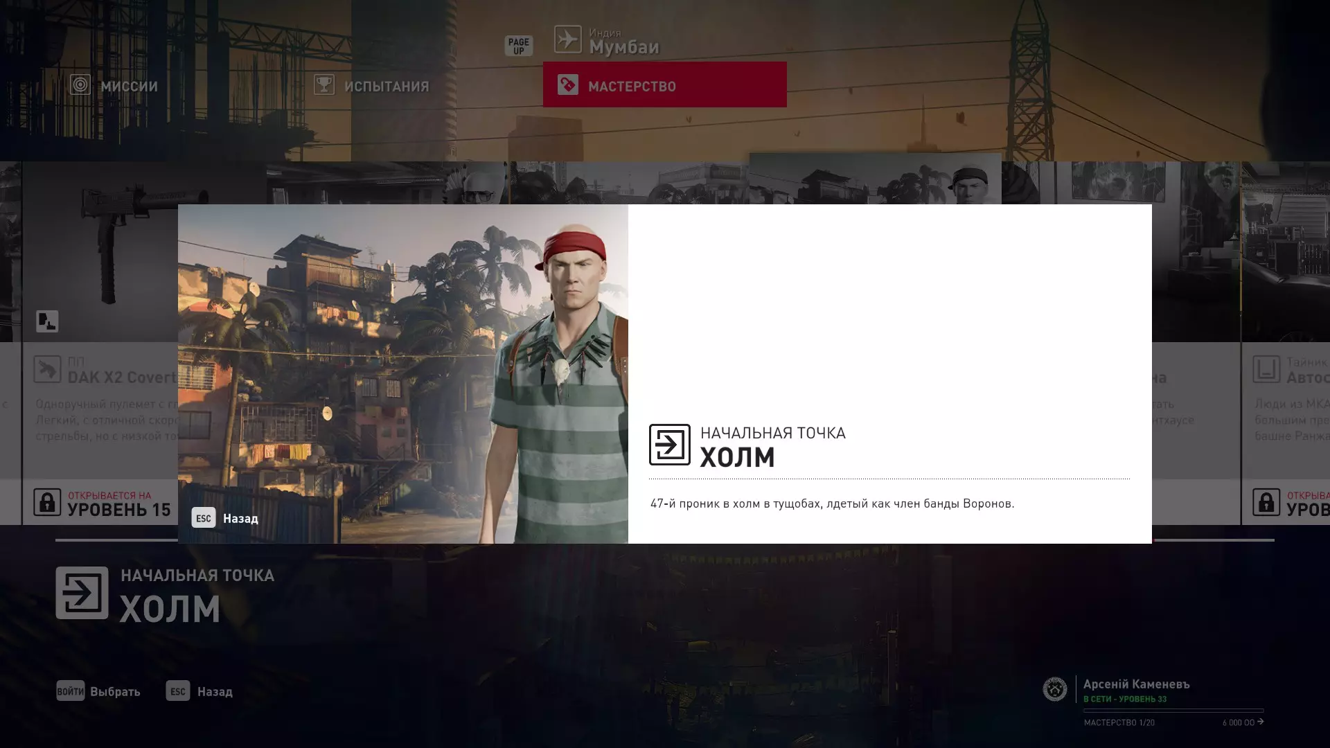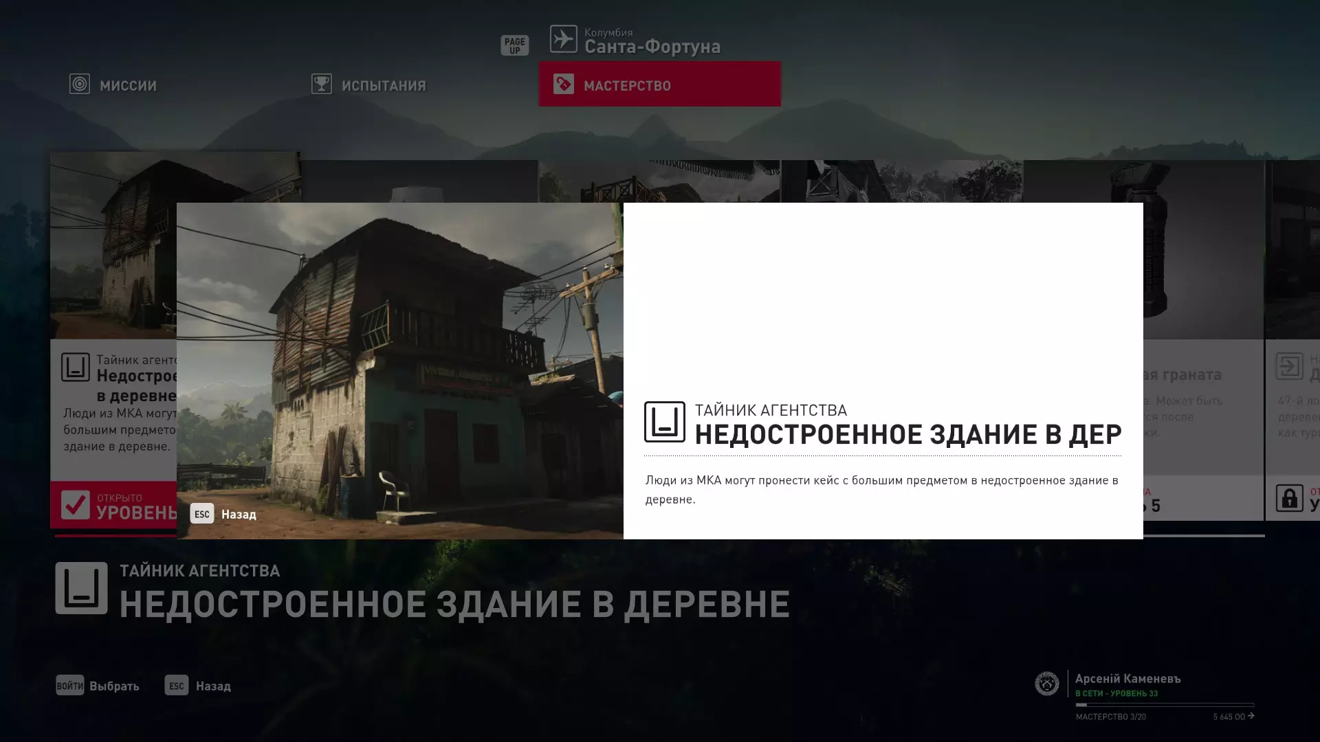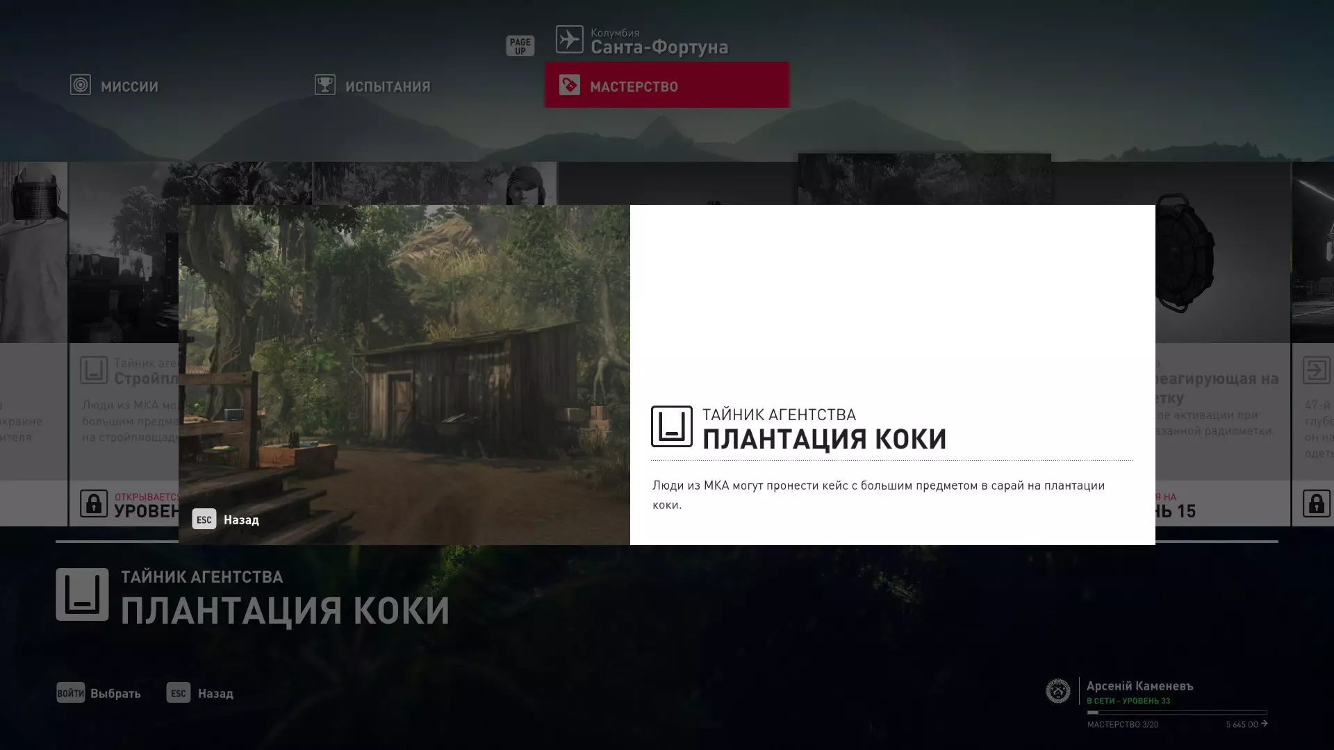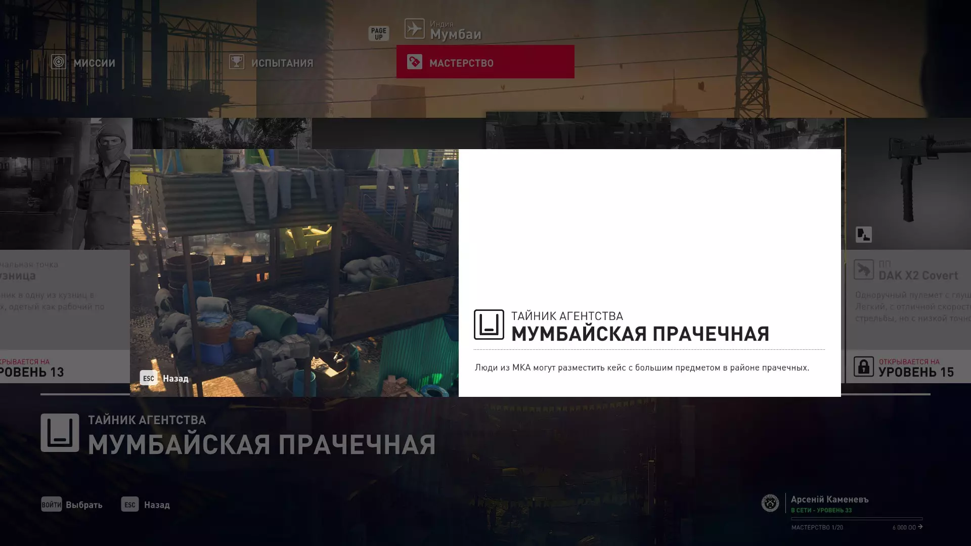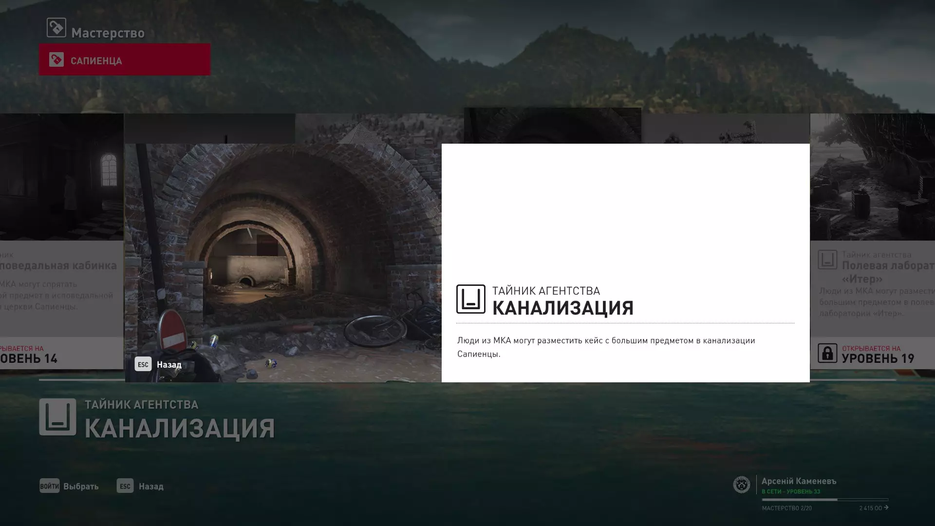 17级熟练度:在山丘的起始点伪装成“沃罗诺夫帮”成员,以及兰扎纳塔中的MKA藏身处