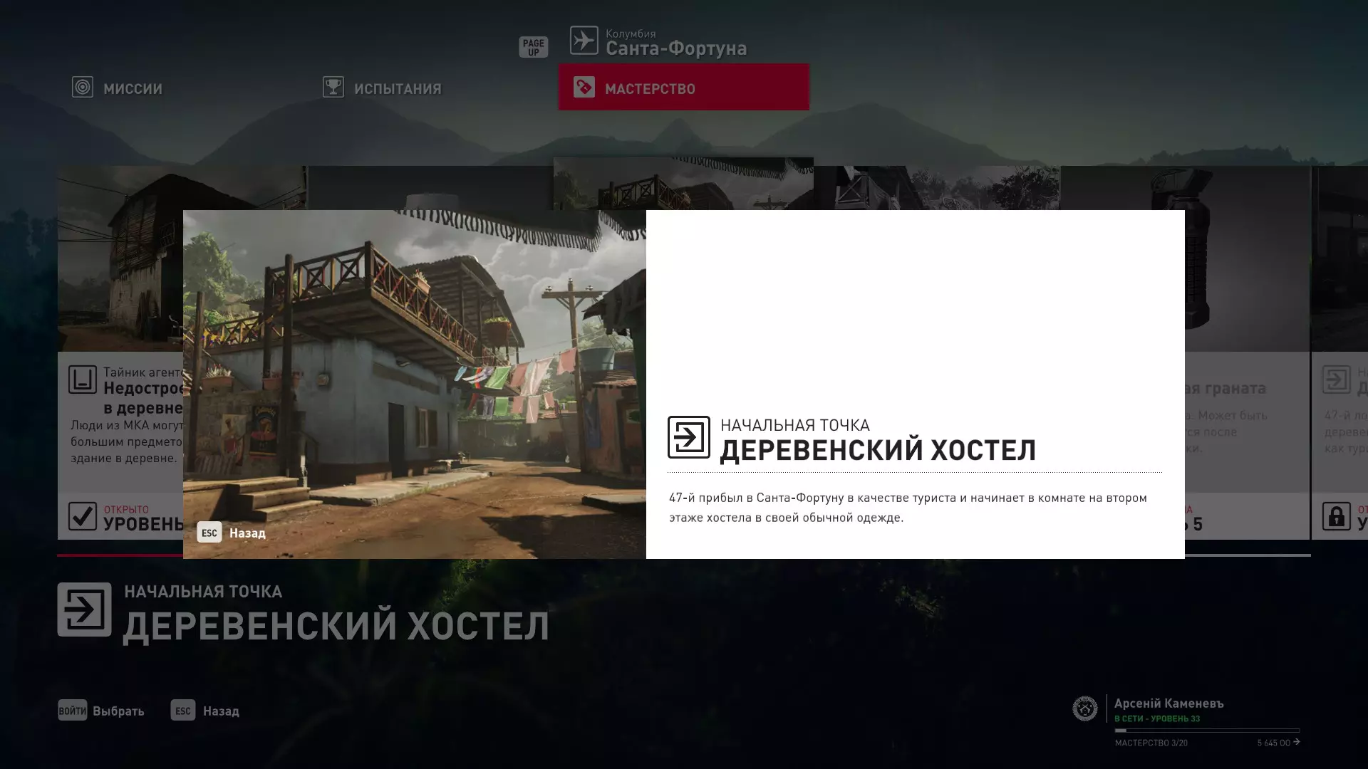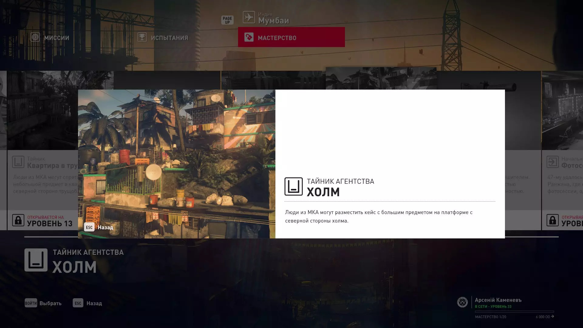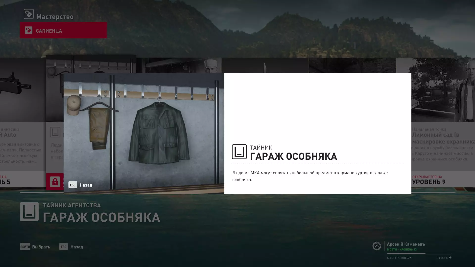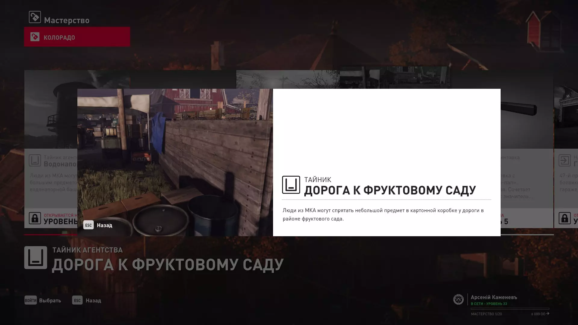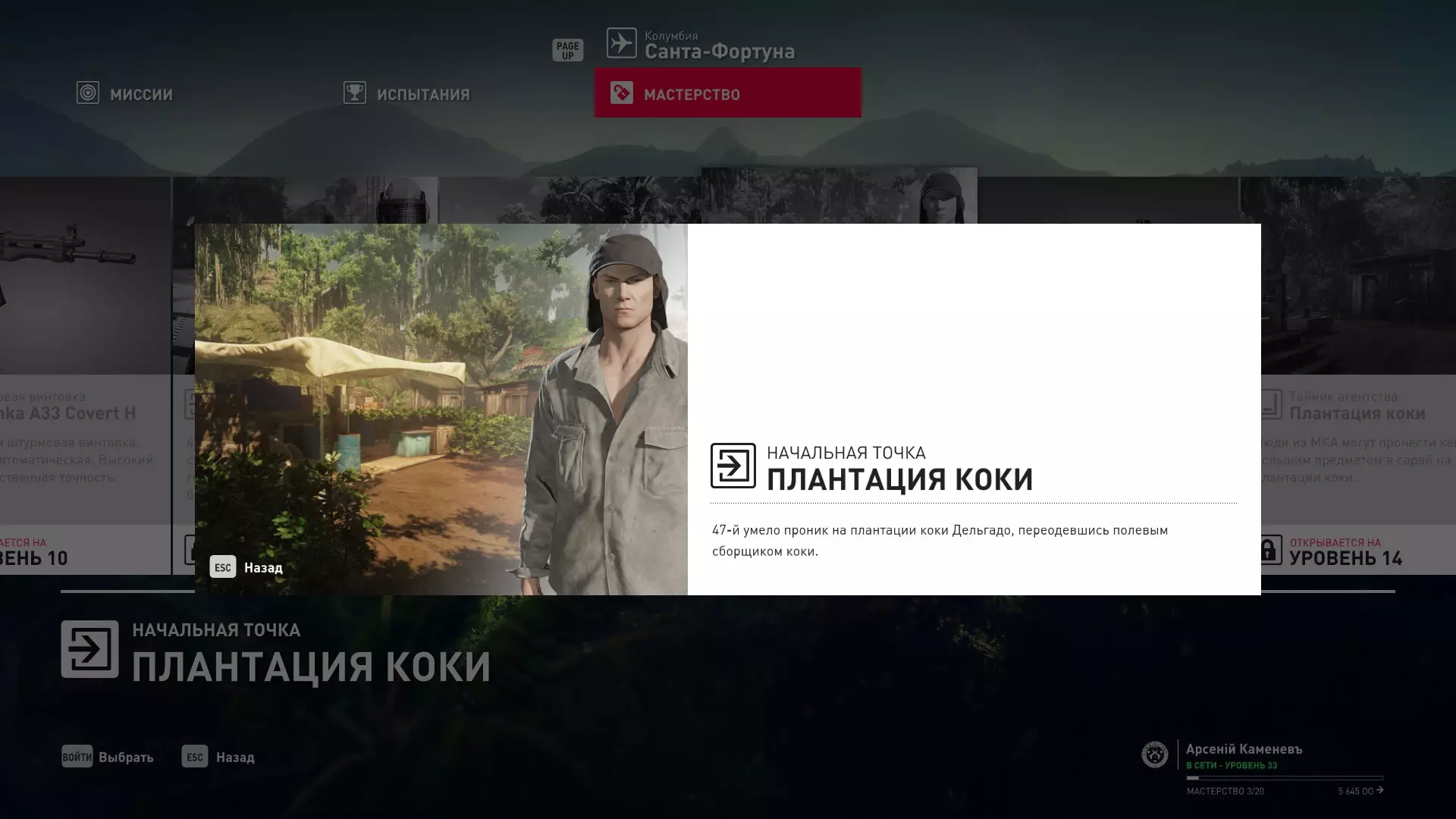 17级熟练度:在山丘的起始点伪装成“沃罗诺夫帮”成员,以及兰扎纳塔中的MKA藏身处