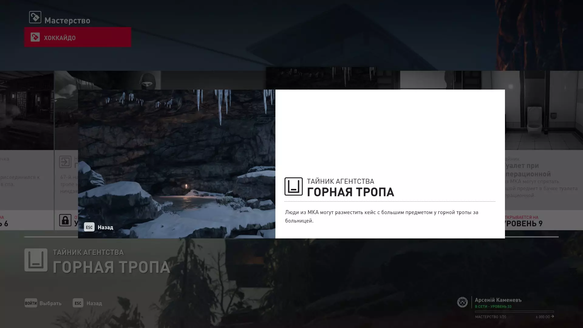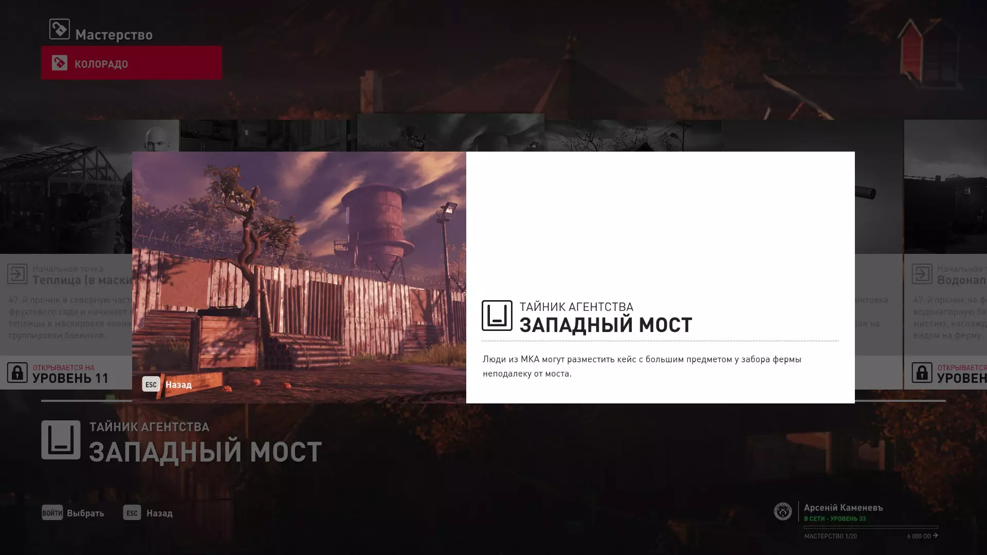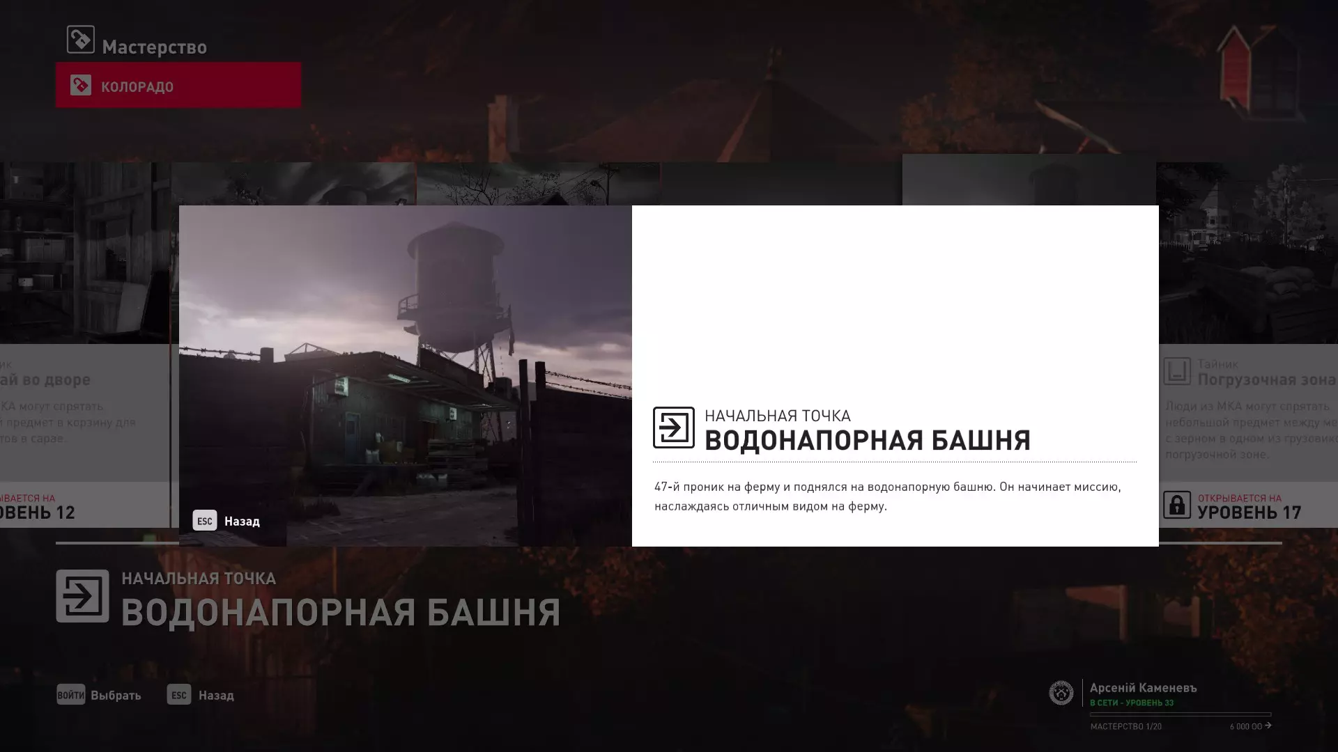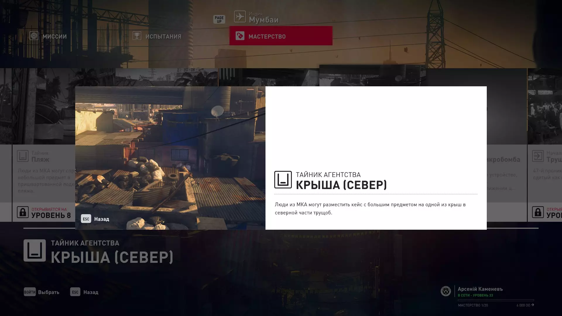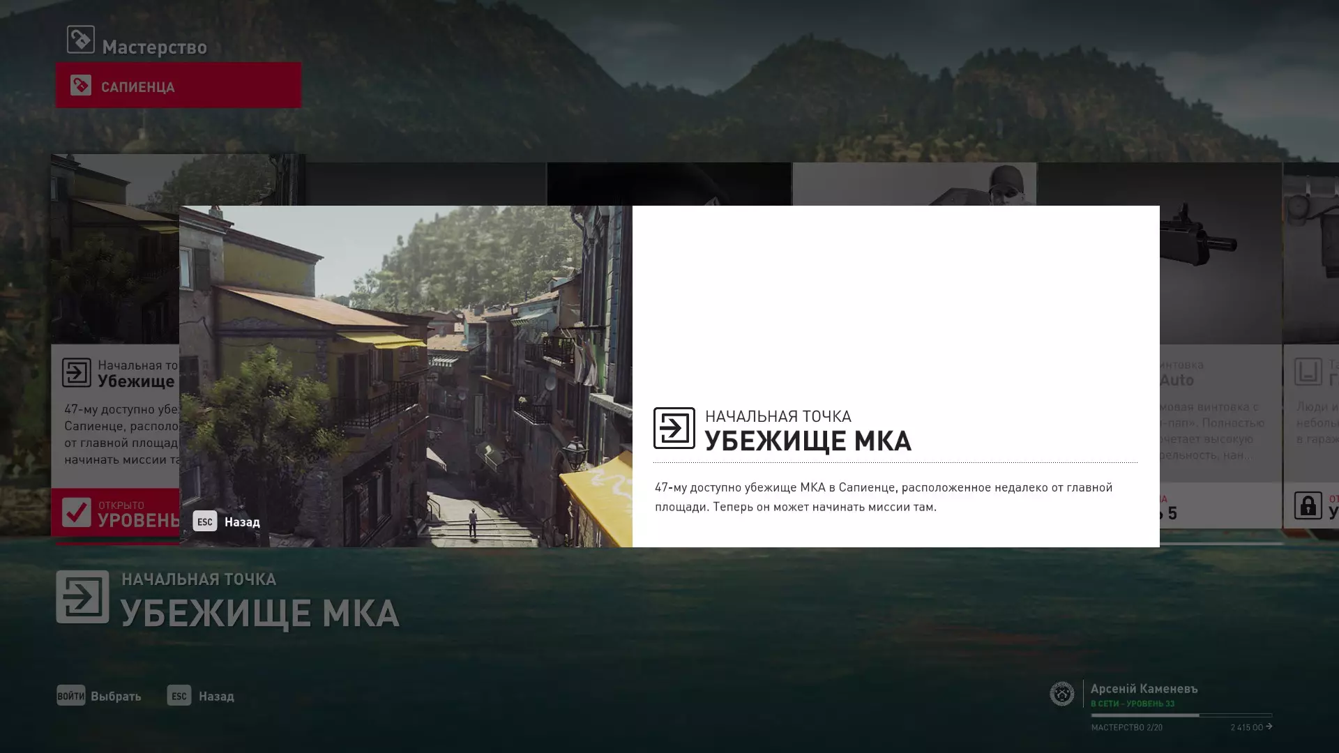 17级熟练度:在山丘的起始点伪装成“沃罗诺夫帮”成员,以及兰扎纳塔中的MKA藏身处
