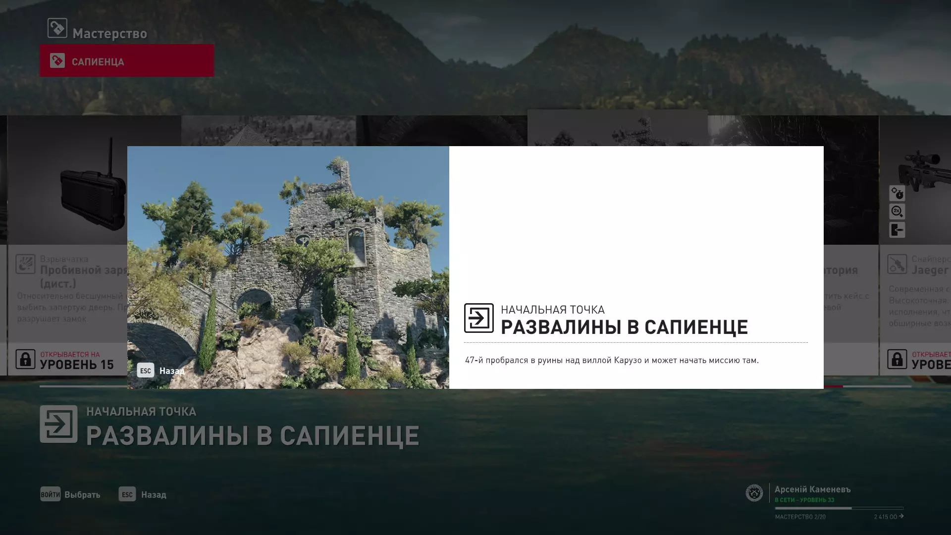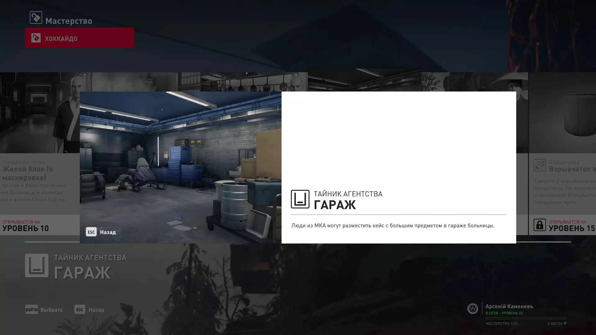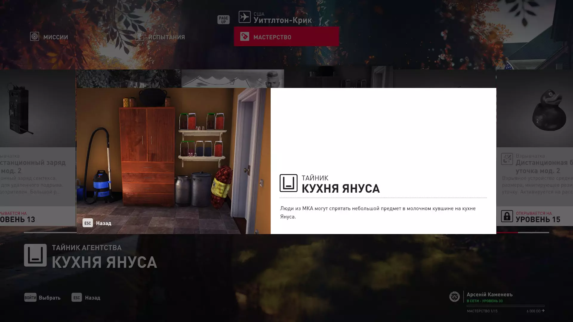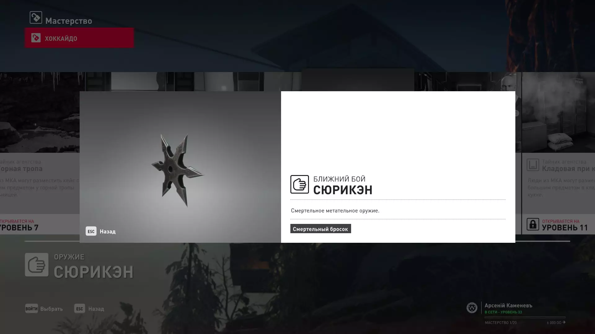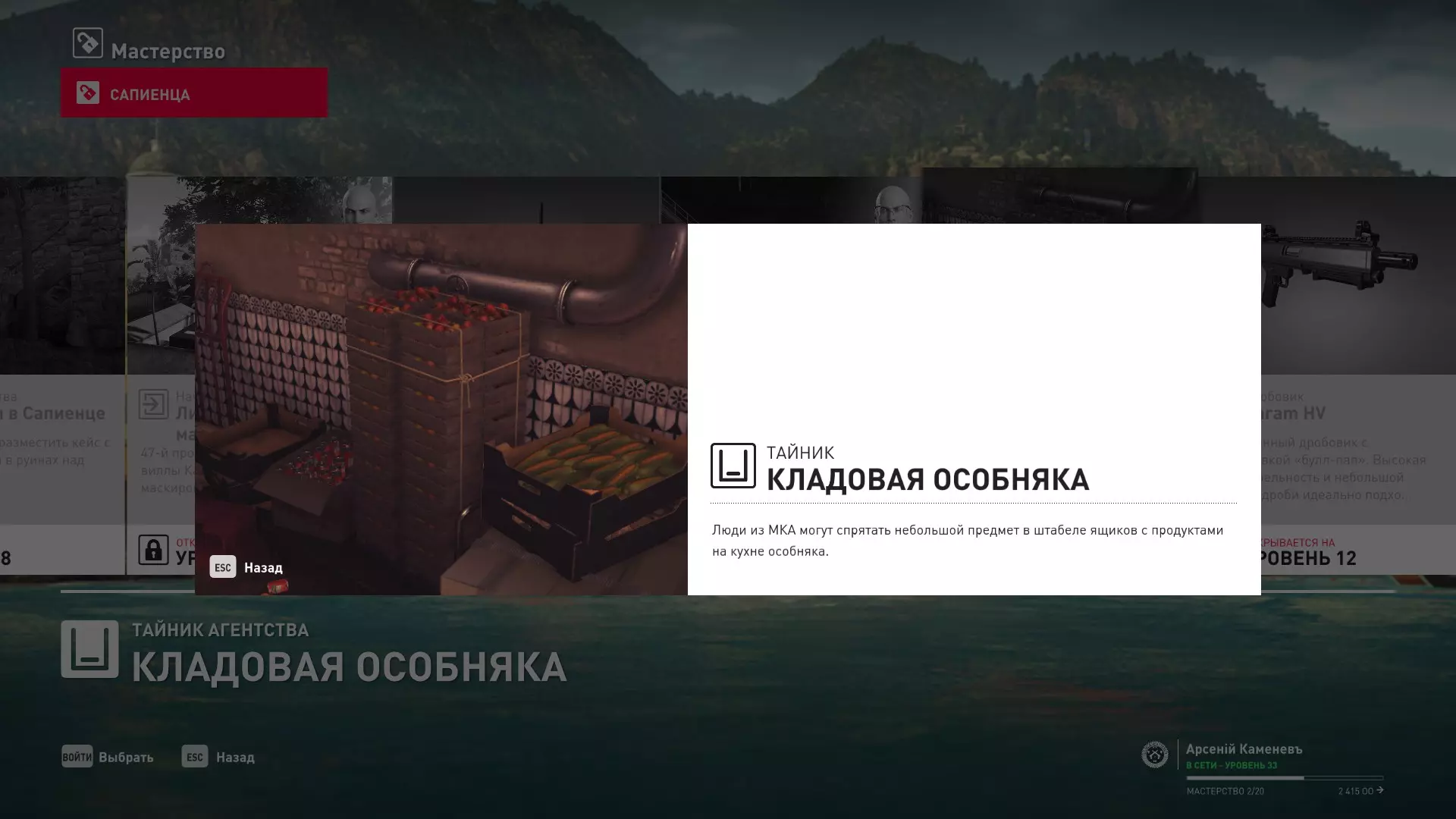 17级熟练度:在山丘的起始点伪装成“沃罗诺夫帮”成员,以及兰扎纳塔中的MKA藏身处