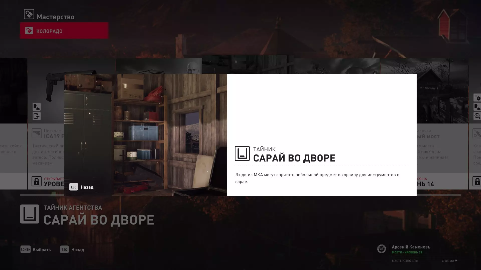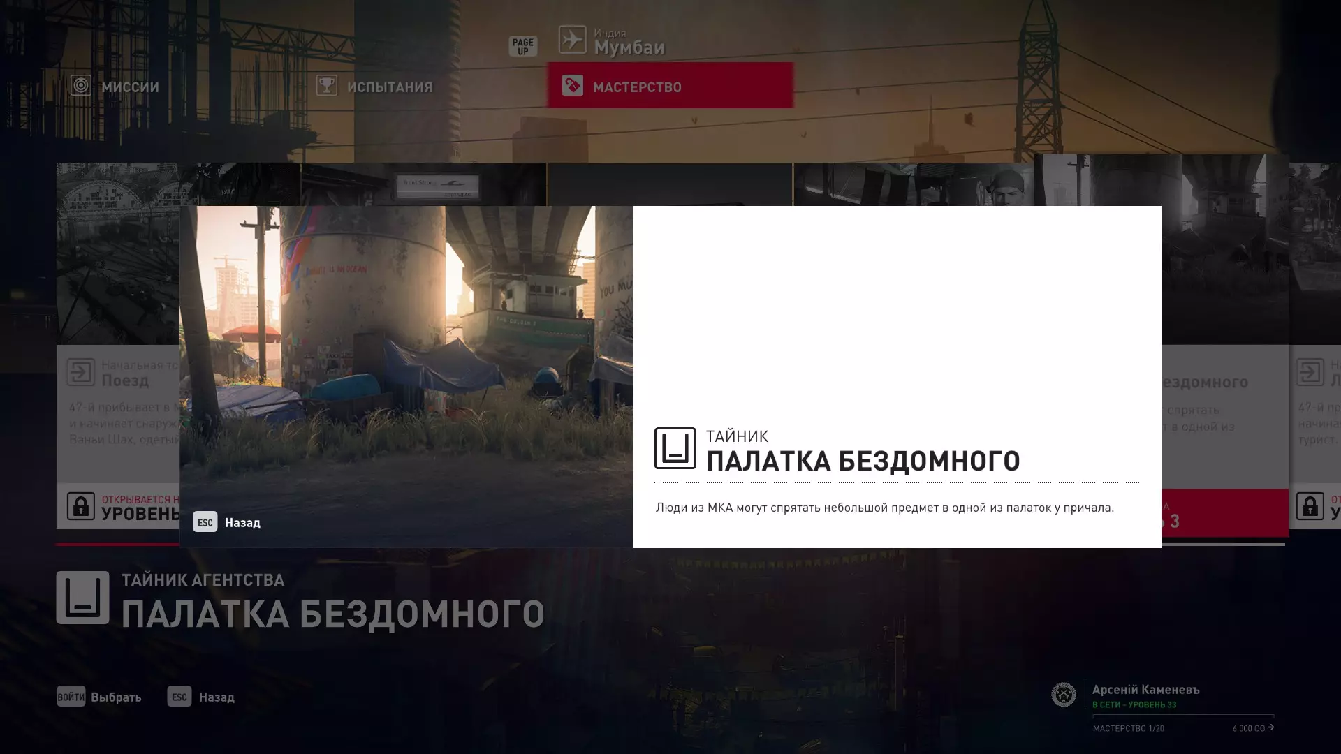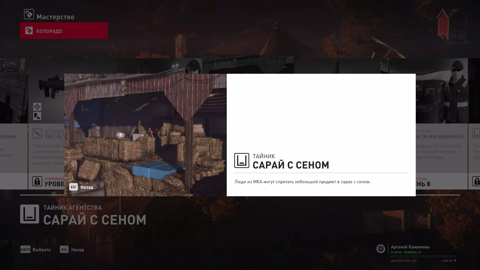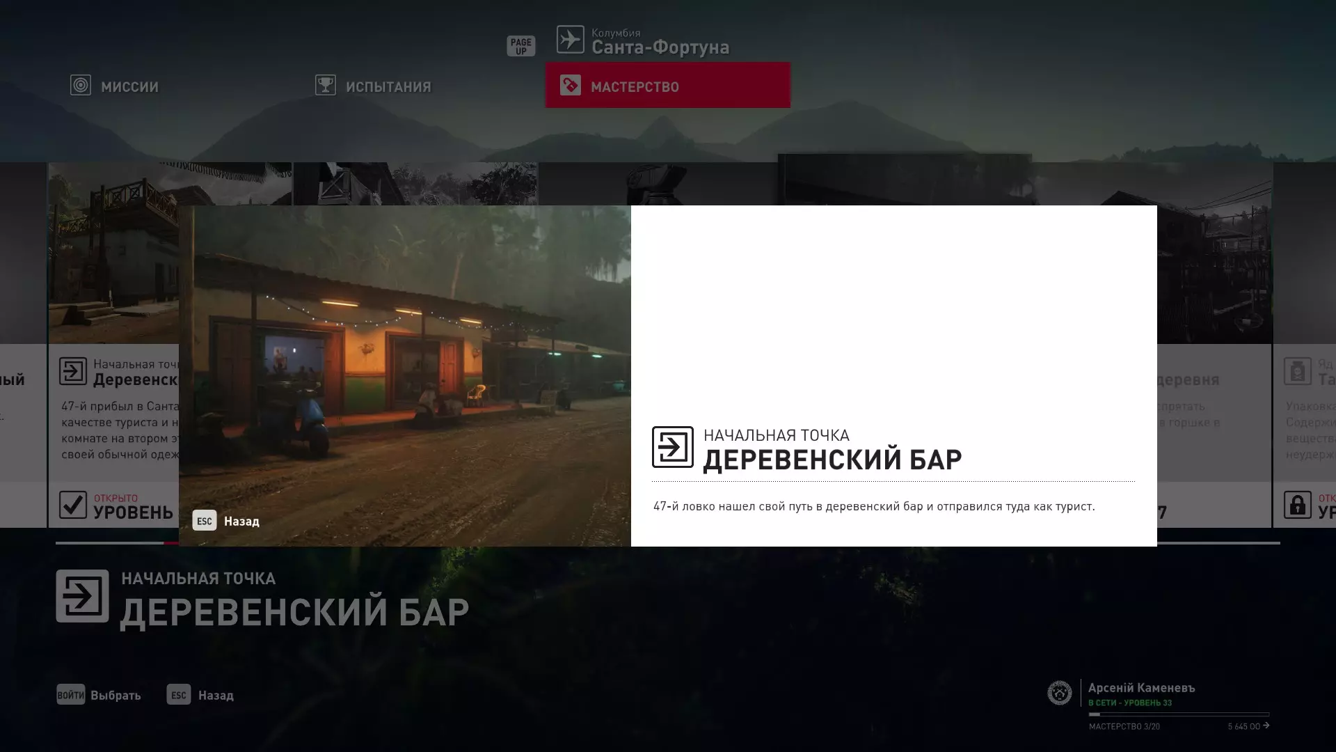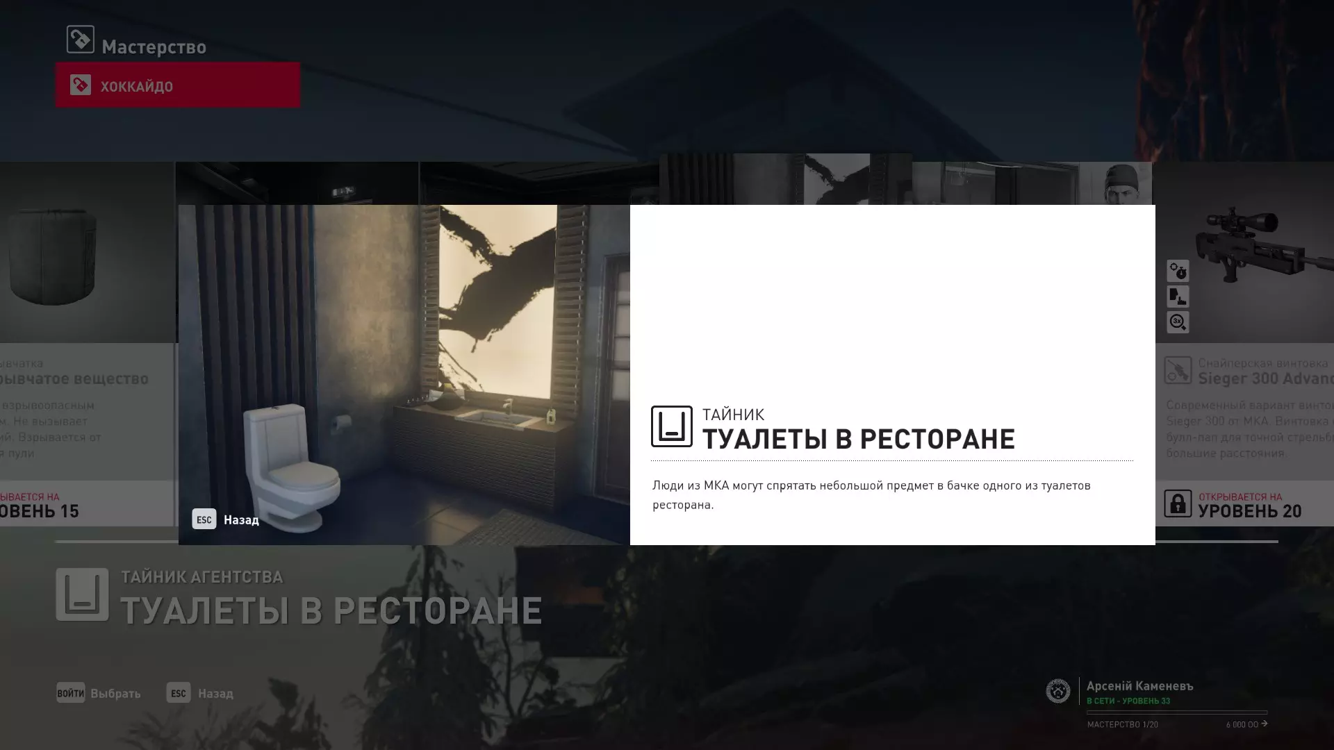 17级熟练度:在山丘的起始点伪装成“沃罗诺夫帮”成员,以及兰扎纳塔中的MKA藏身处