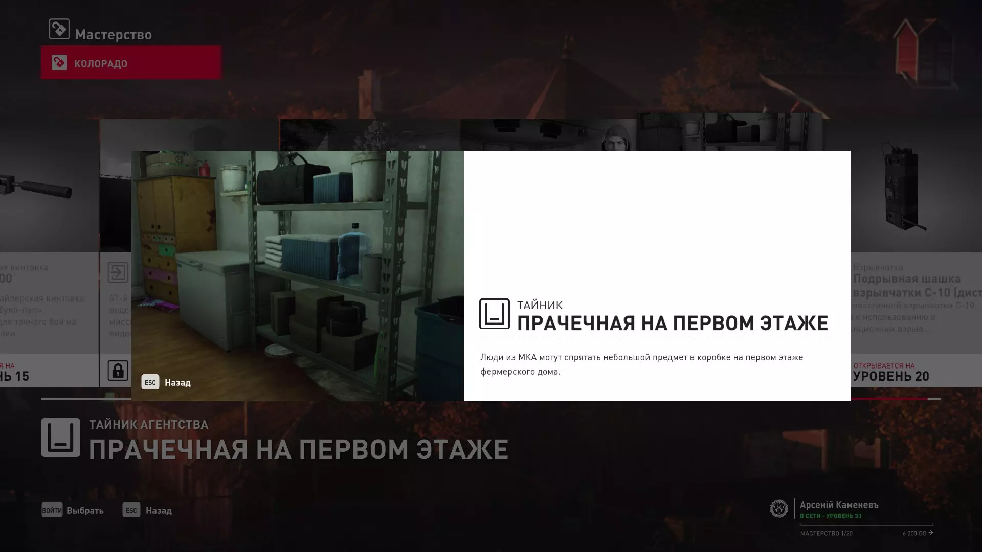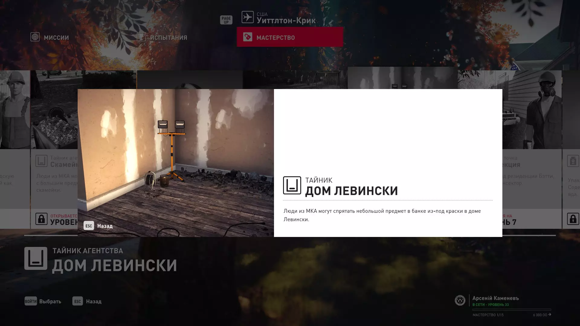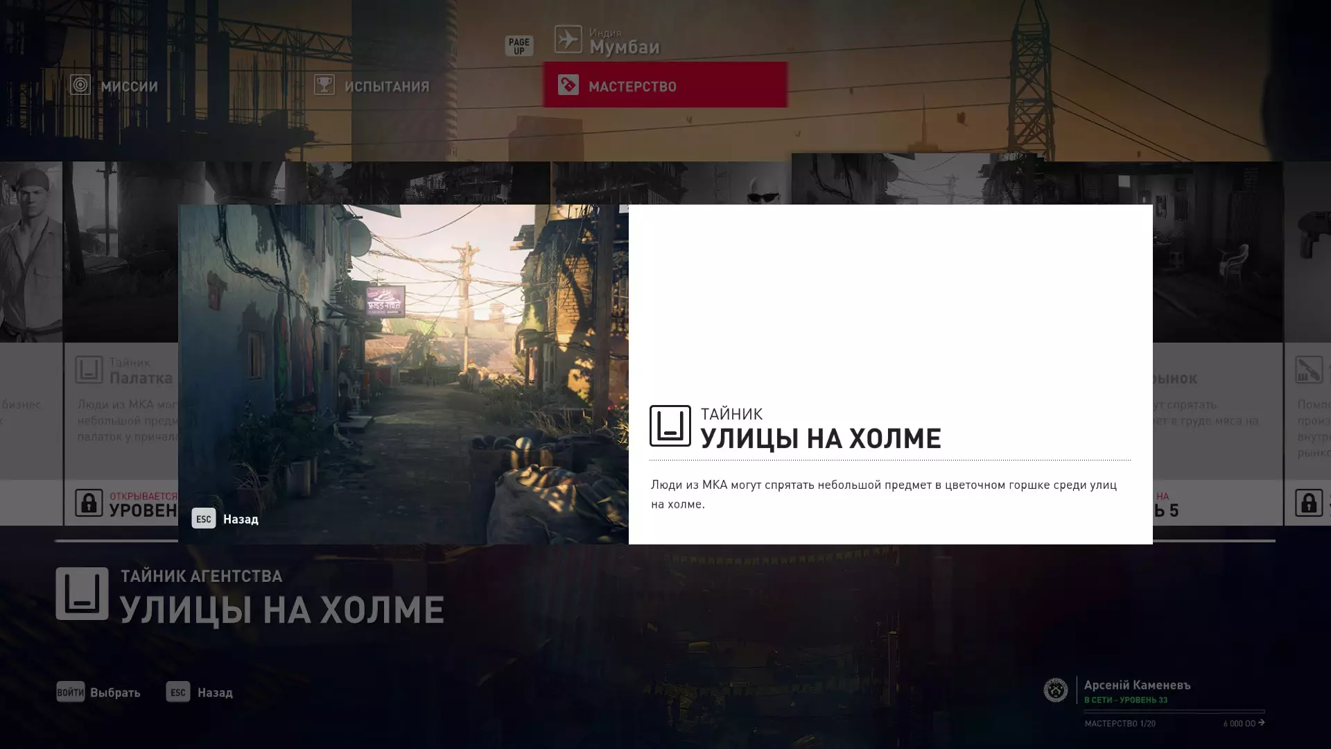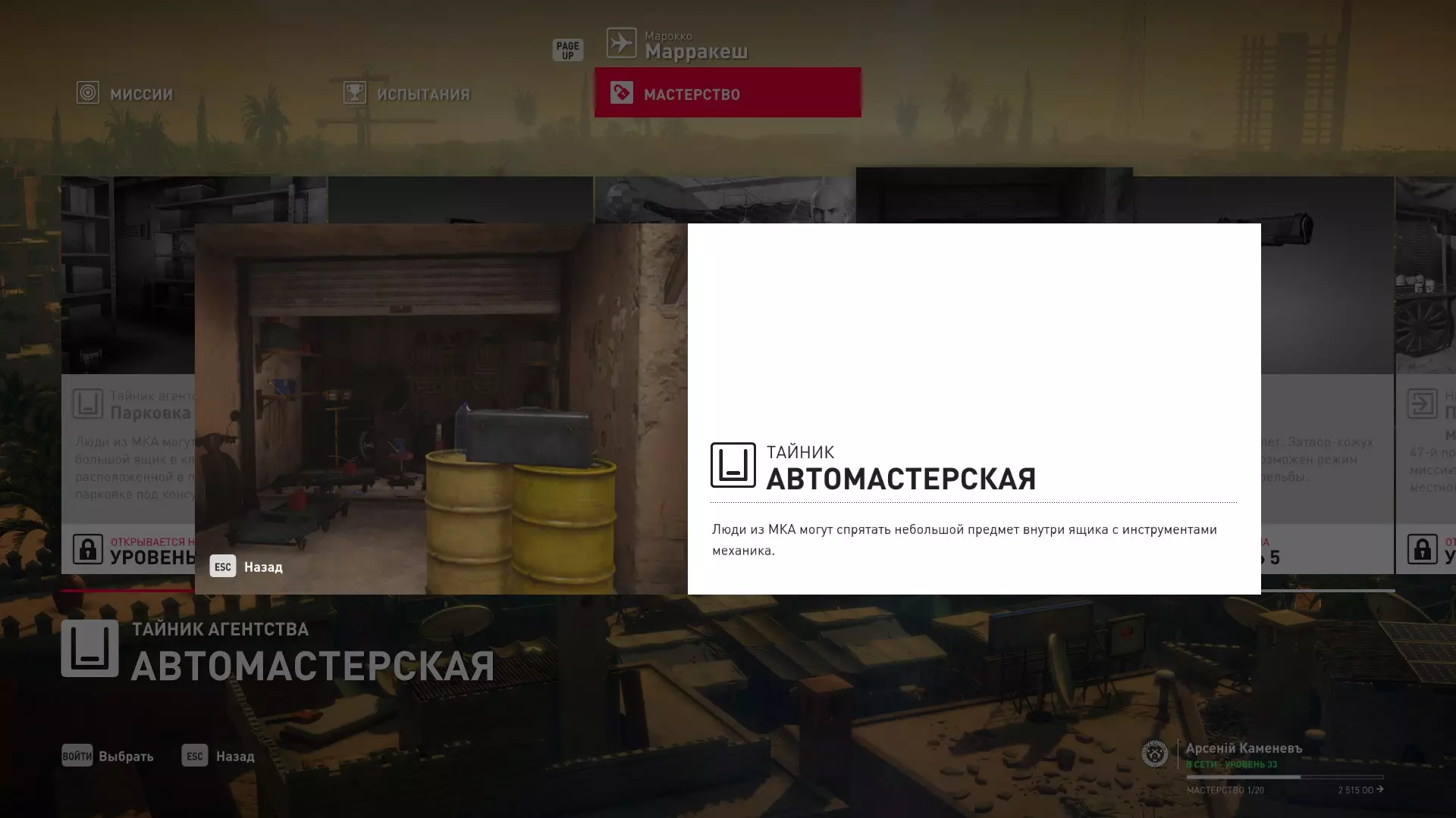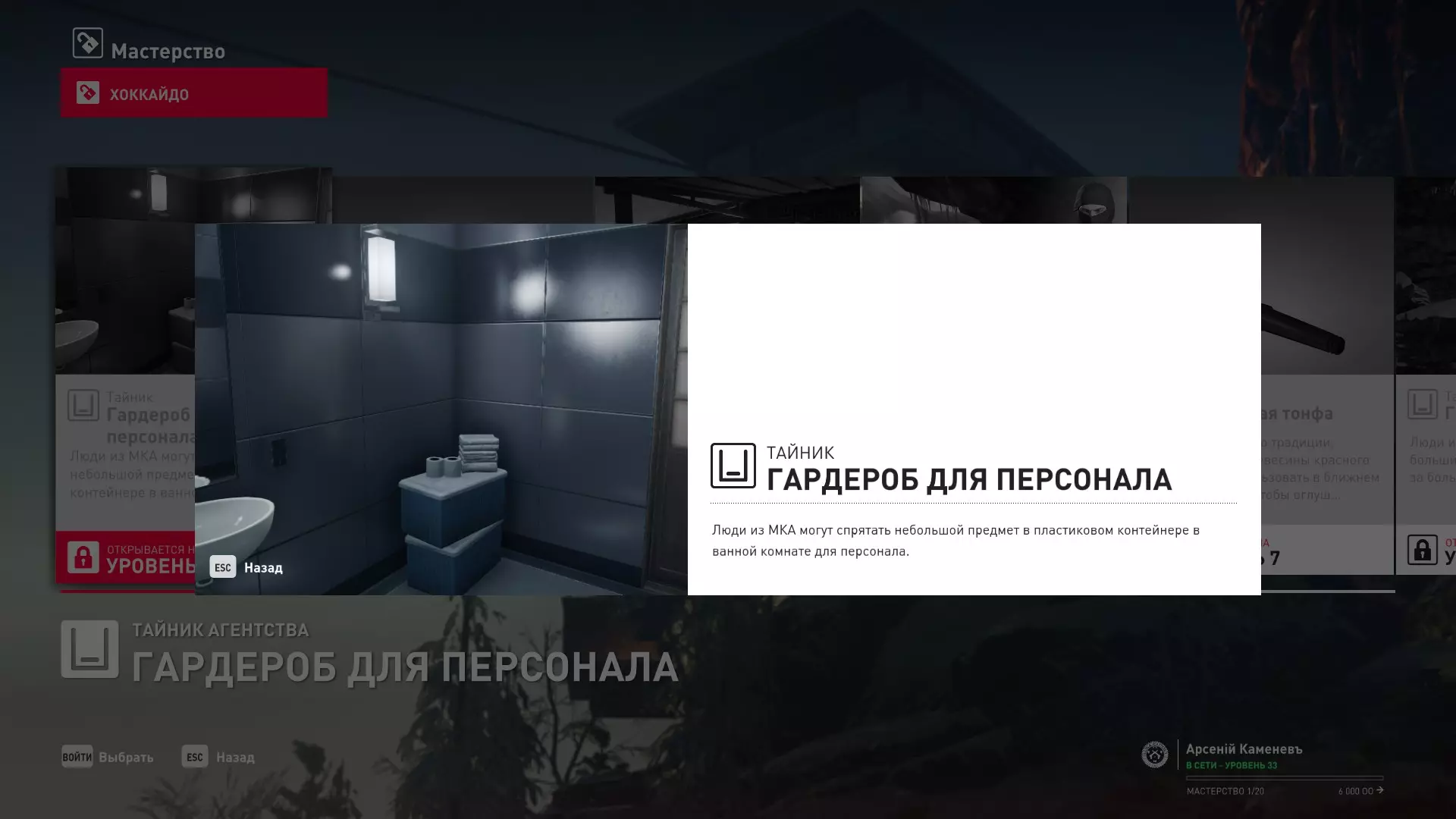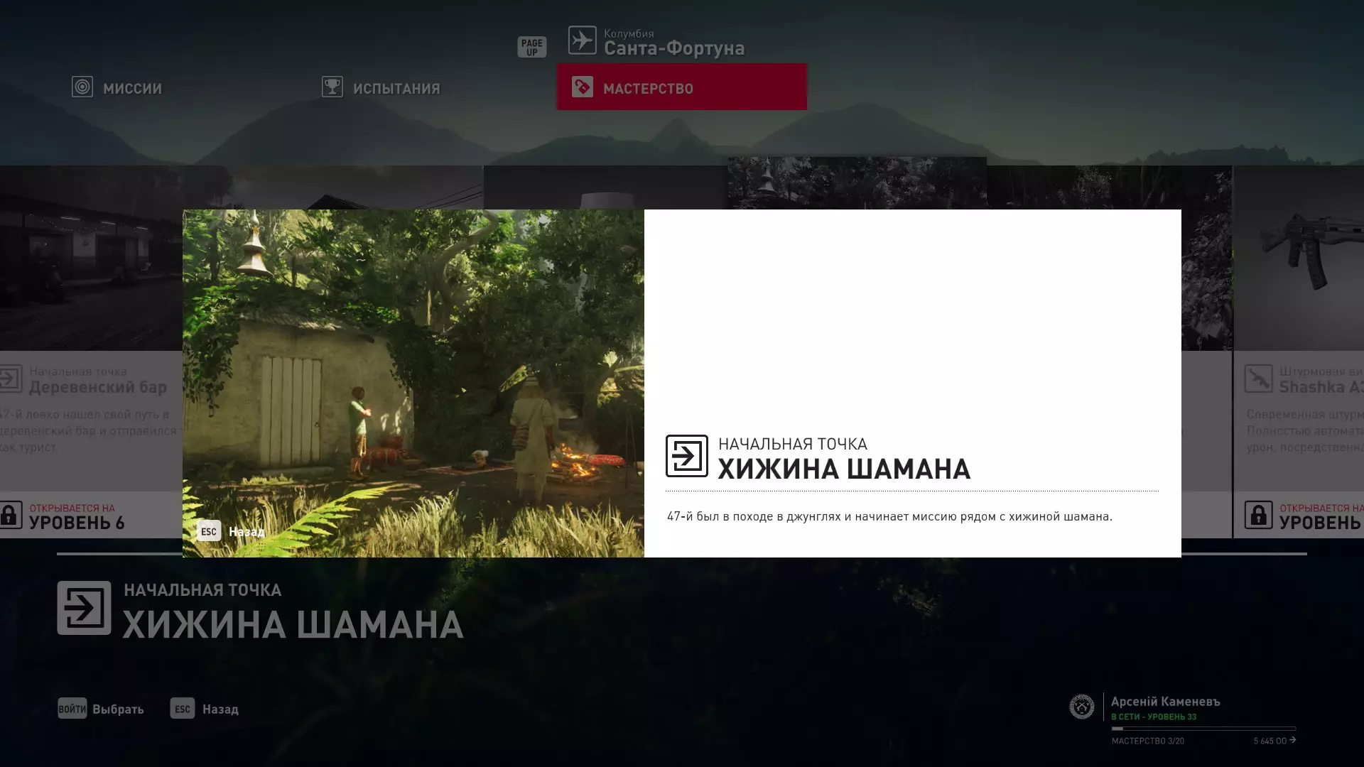 17级熟练度:在山丘的起始点伪装成“沃罗诺夫帮”成员,以及兰扎纳塔中的MKA藏身处