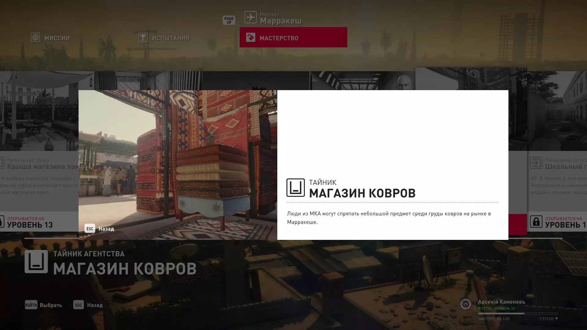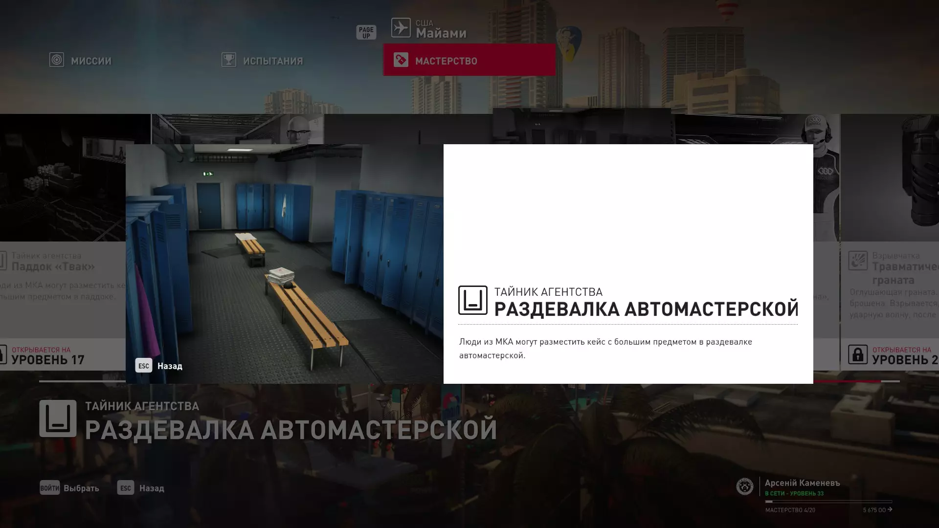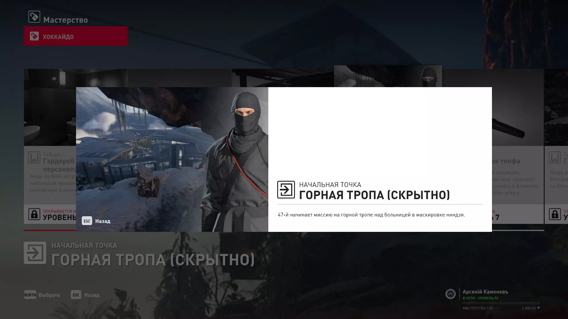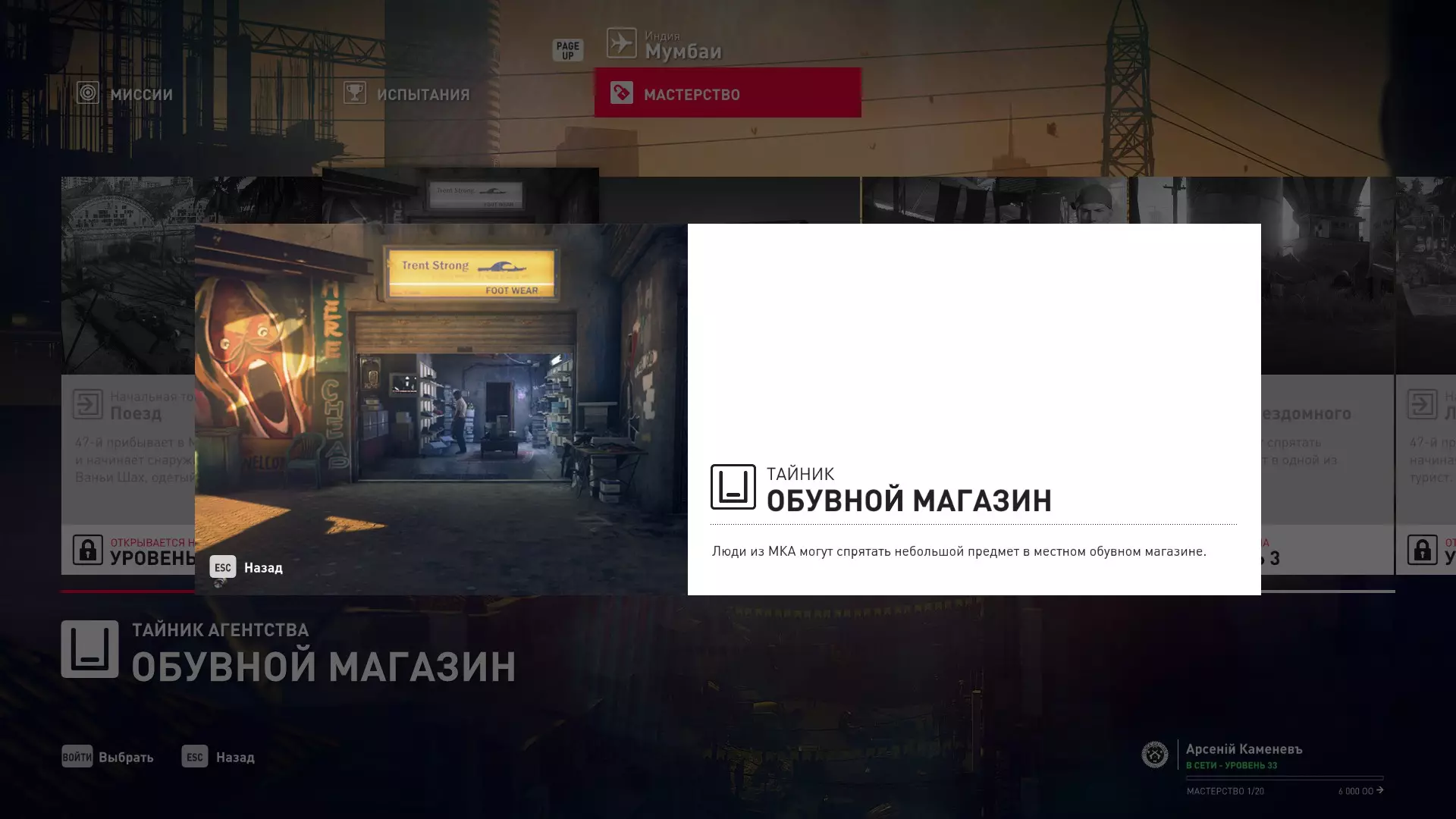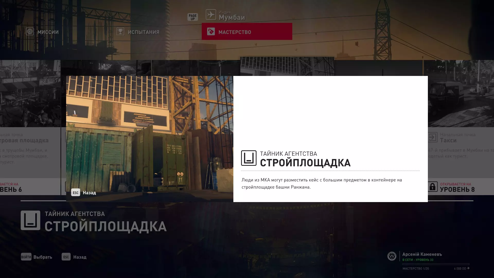 17级熟练度:在山丘的起始点伪装成“沃罗诺夫帮”成员,以及兰扎纳塔中的MKA藏身处
