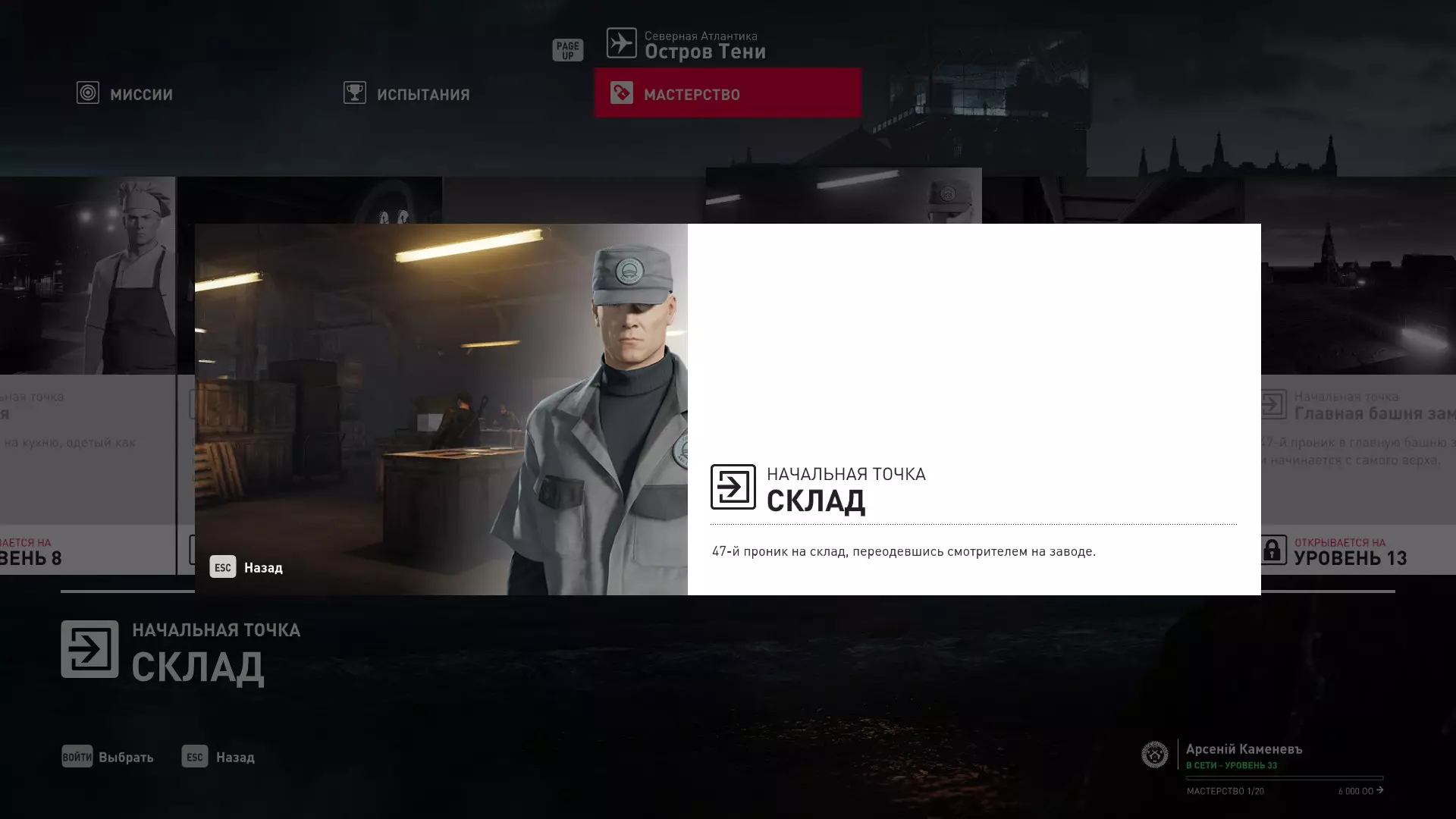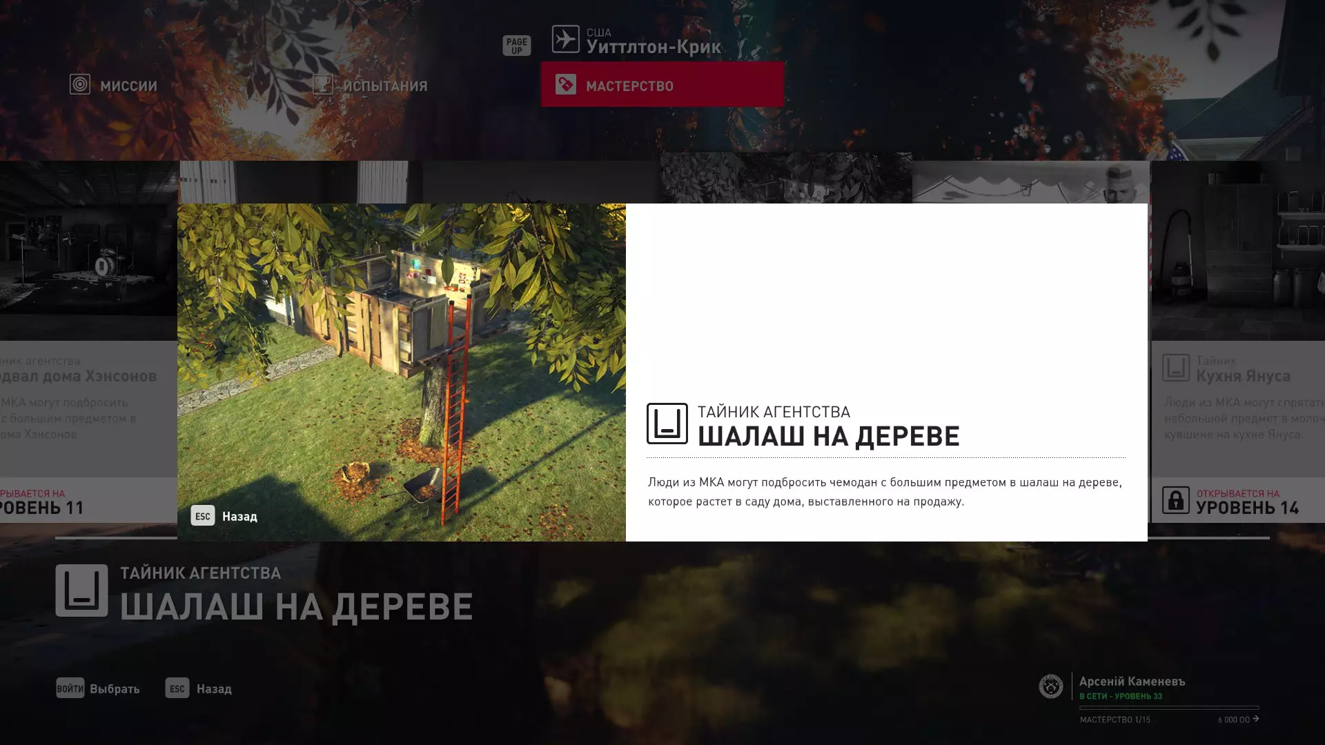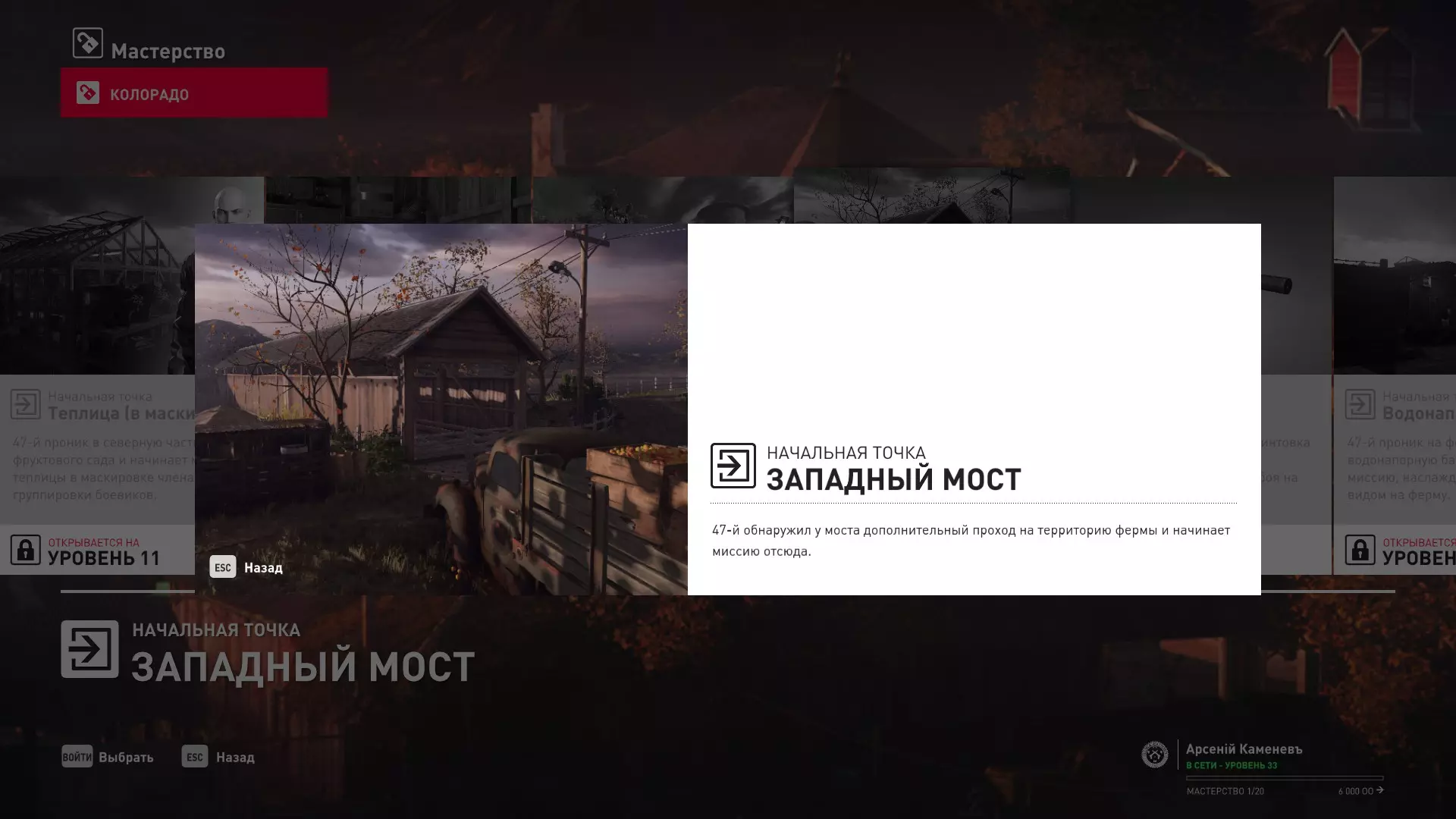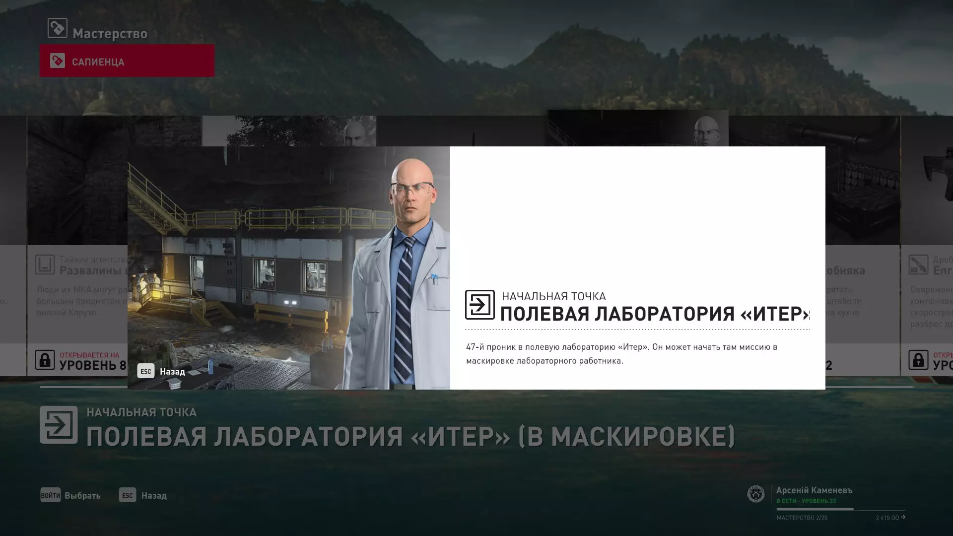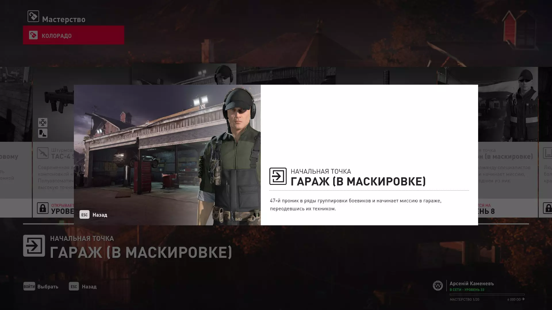 17级熟练度:在山丘的起始点伪装成“沃罗诺夫帮”成员,以及兰扎纳塔中的MKA藏身处