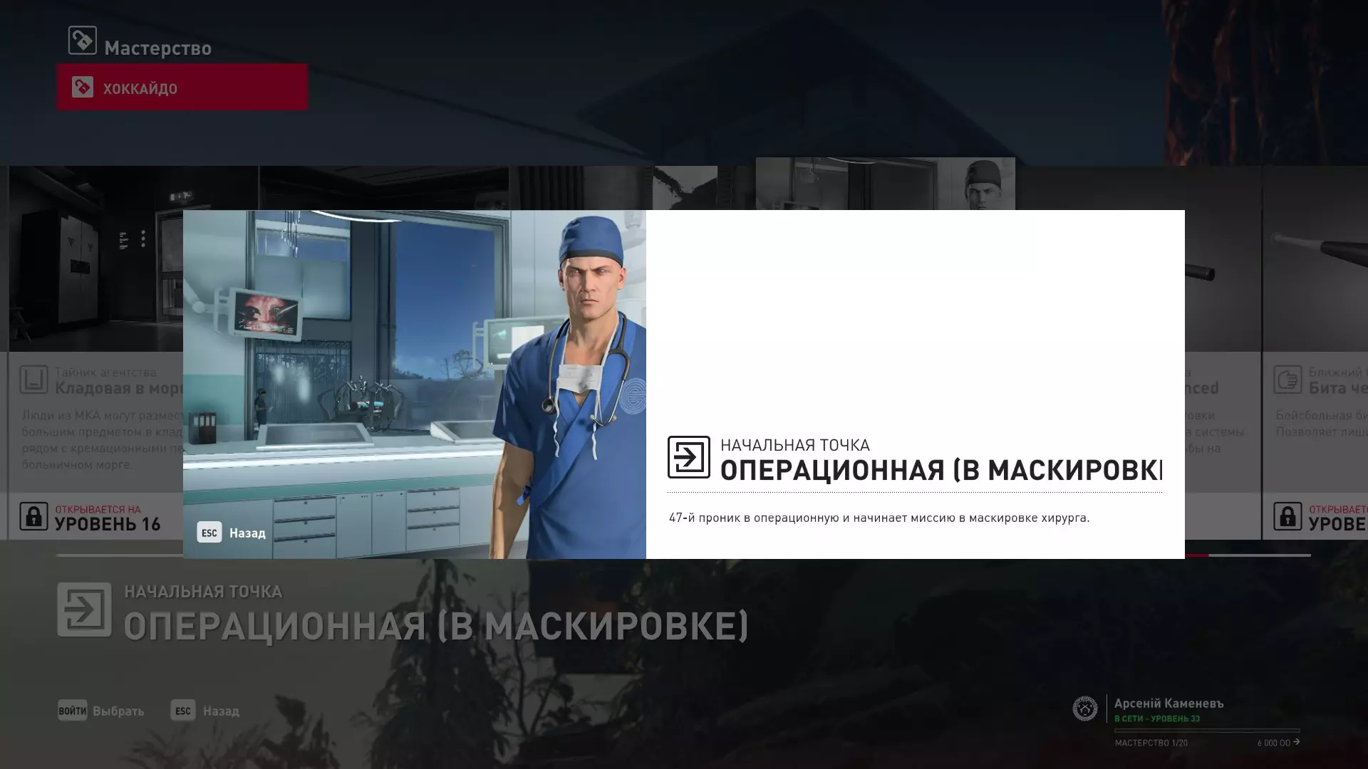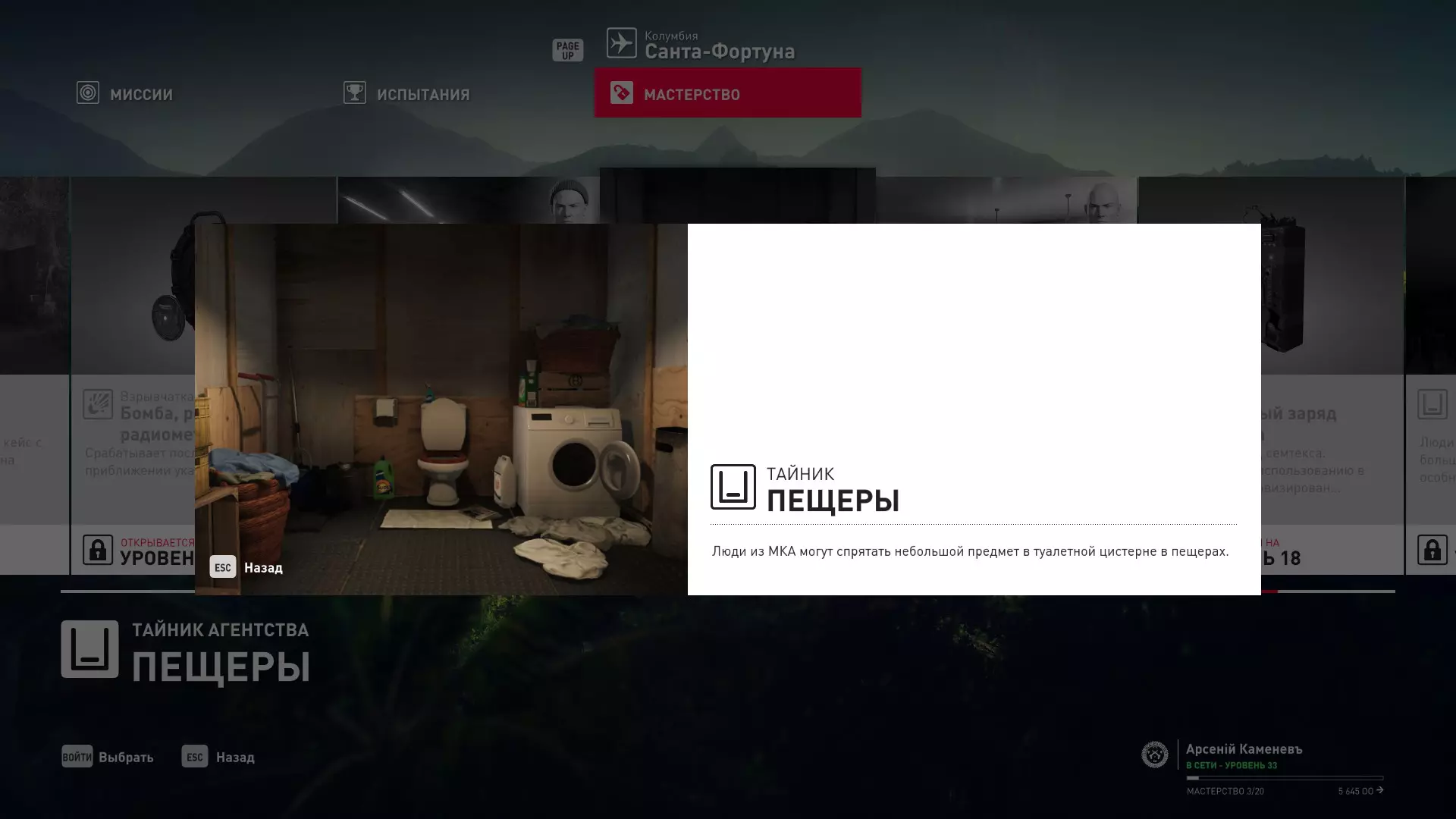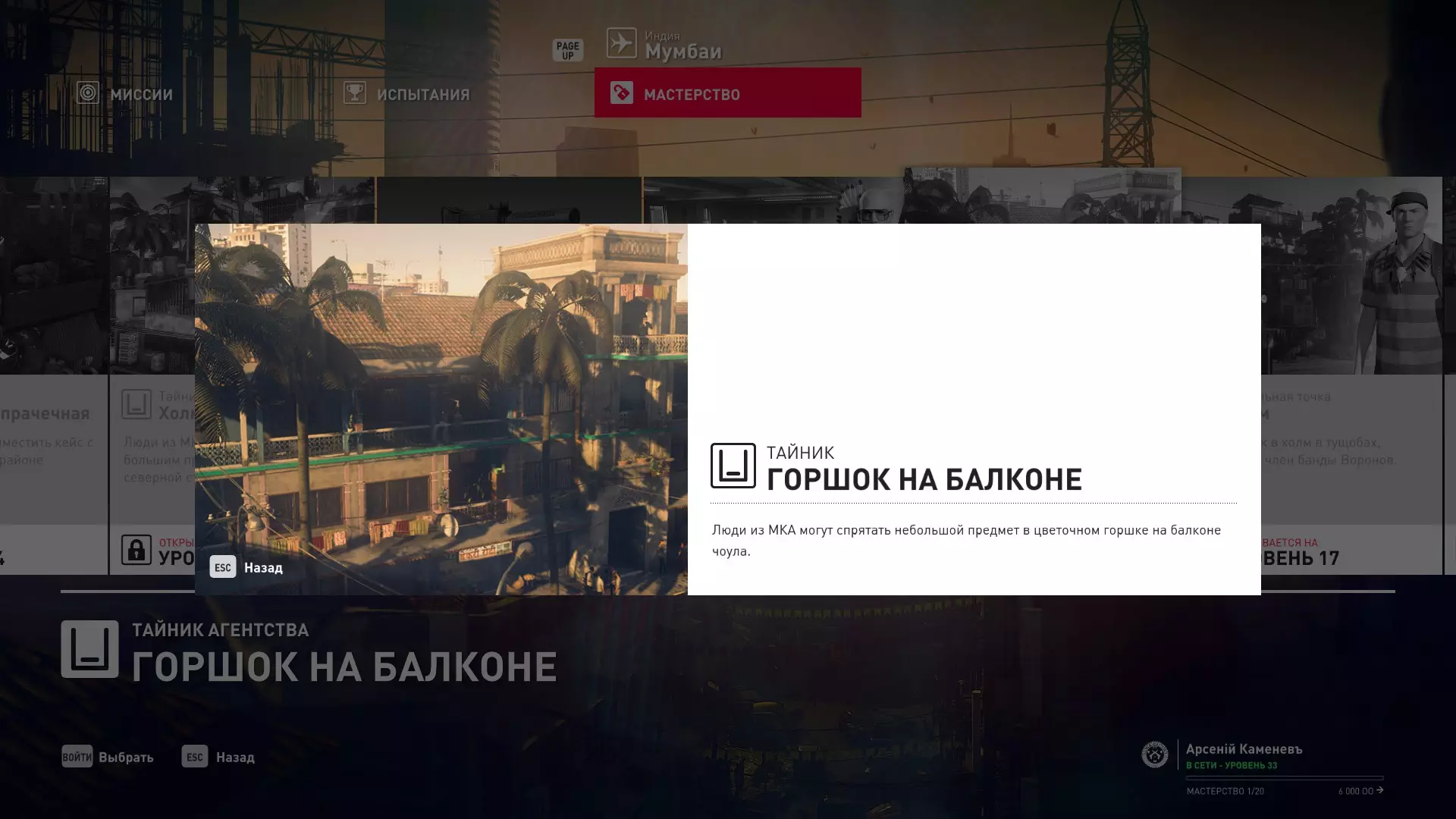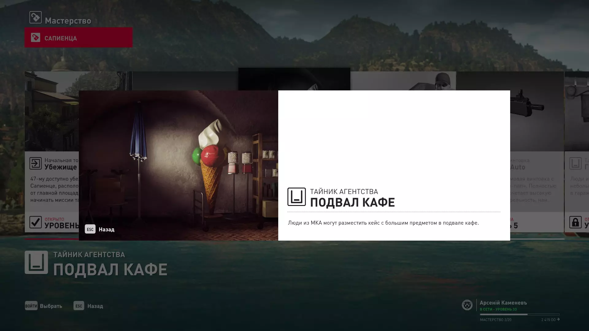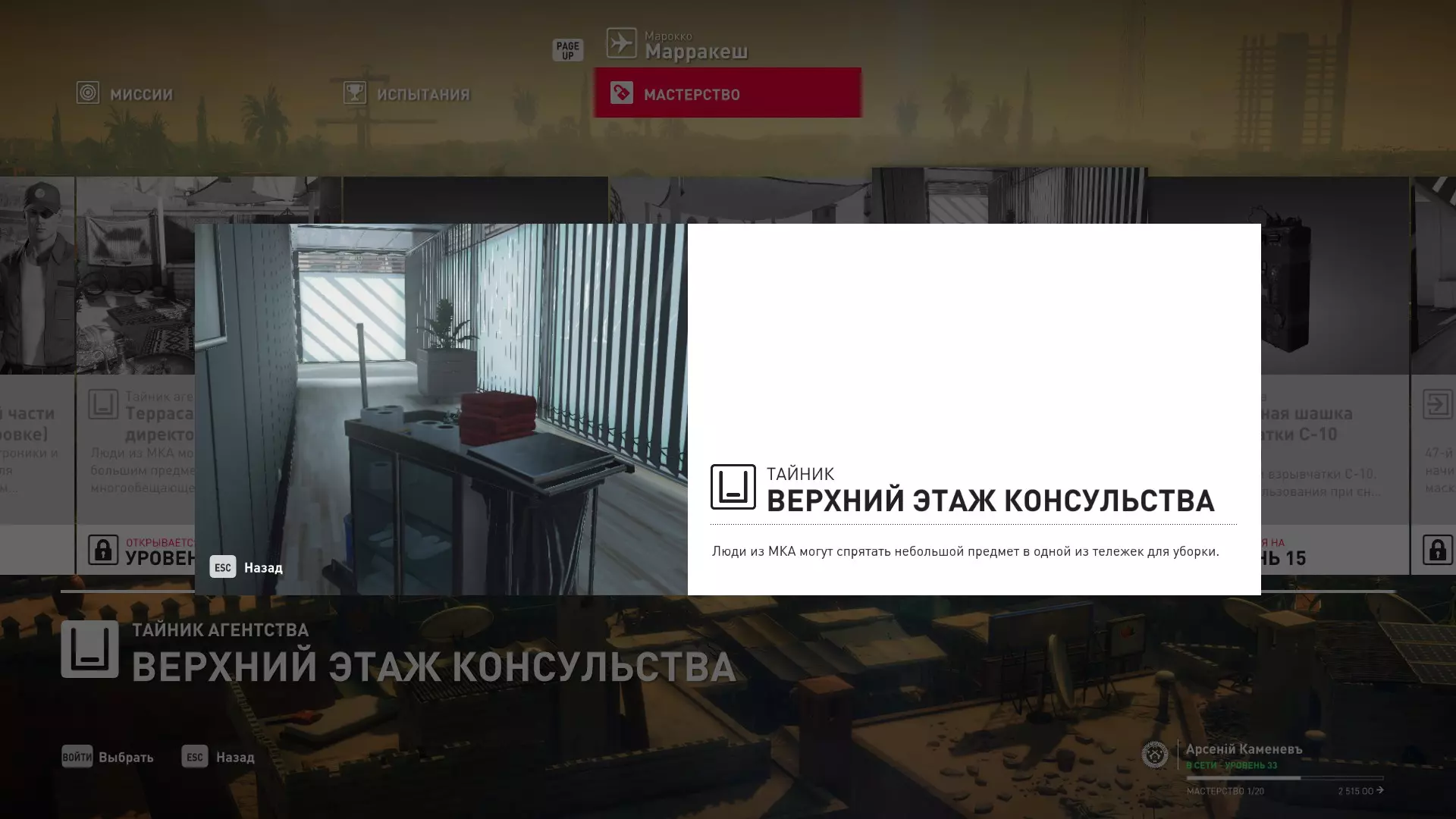 17级熟练度:在山丘的起始点伪装成“沃罗诺夫帮”成员,以及兰扎纳塔中的MKA藏身处