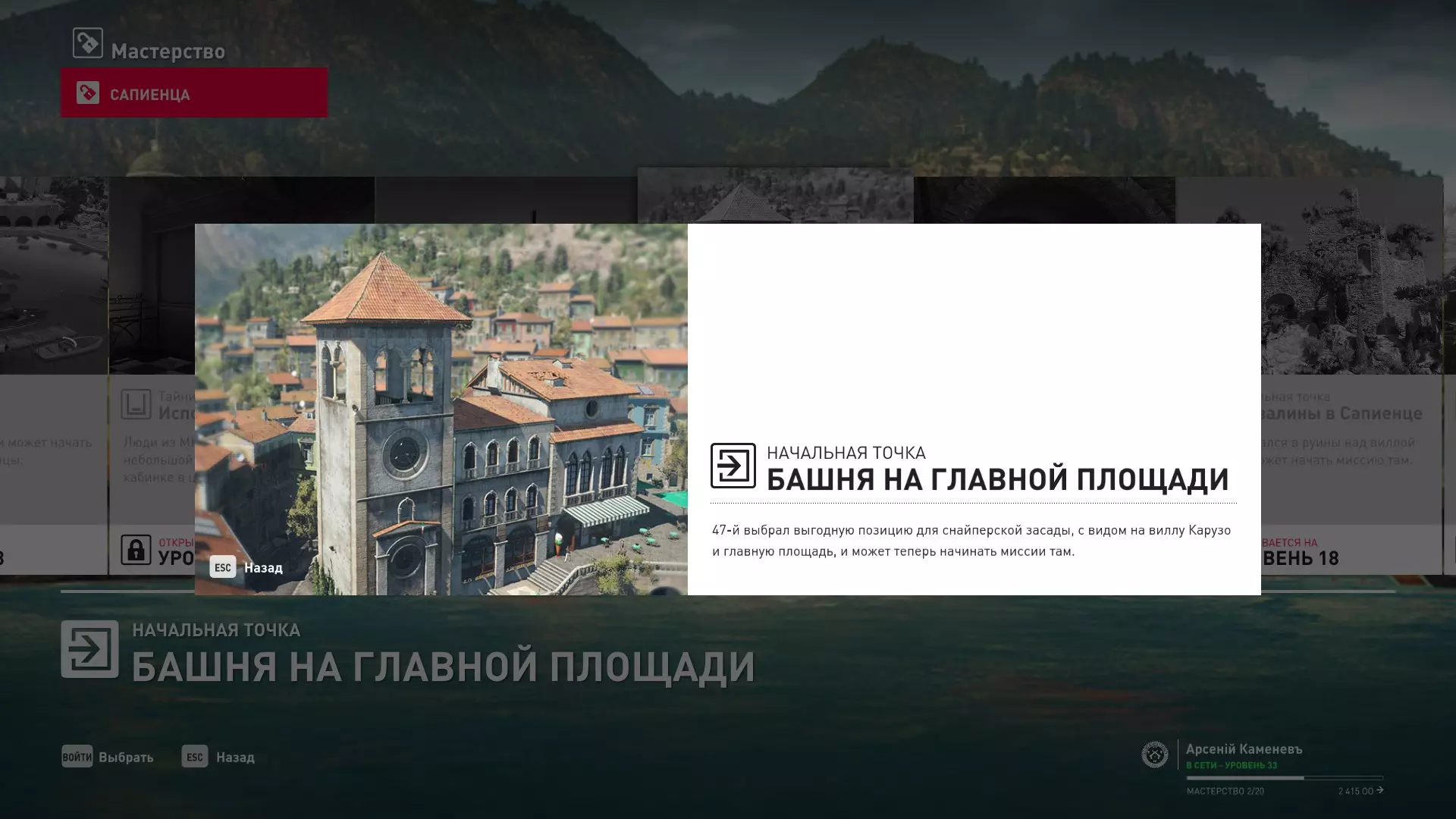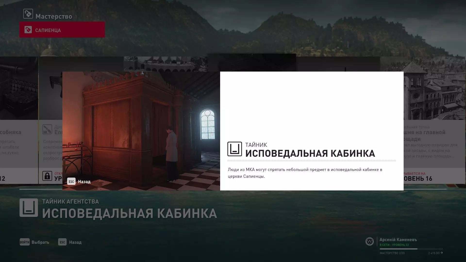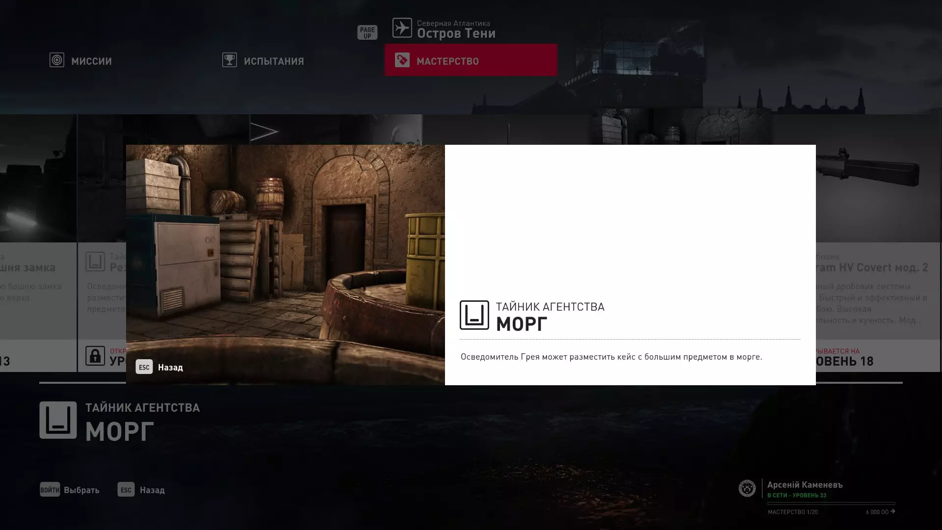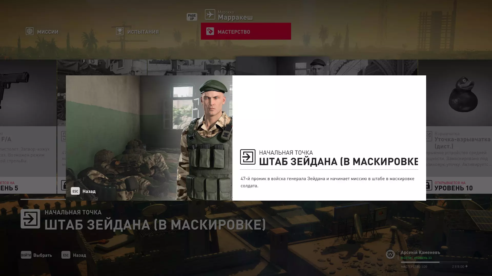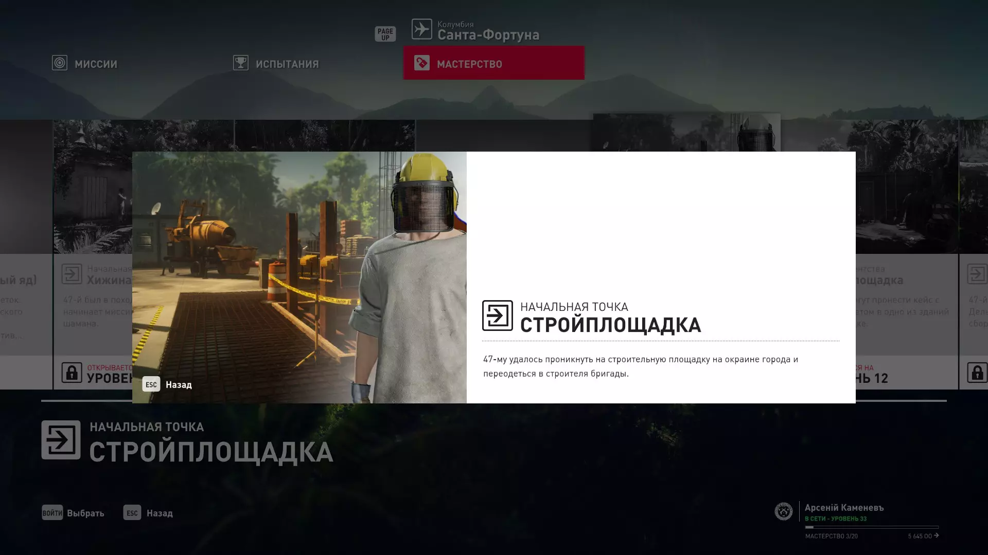 17级熟练度:在山丘的起始点伪装成“沃罗诺夫帮”成员,以及兰扎纳塔中的MKA藏身处