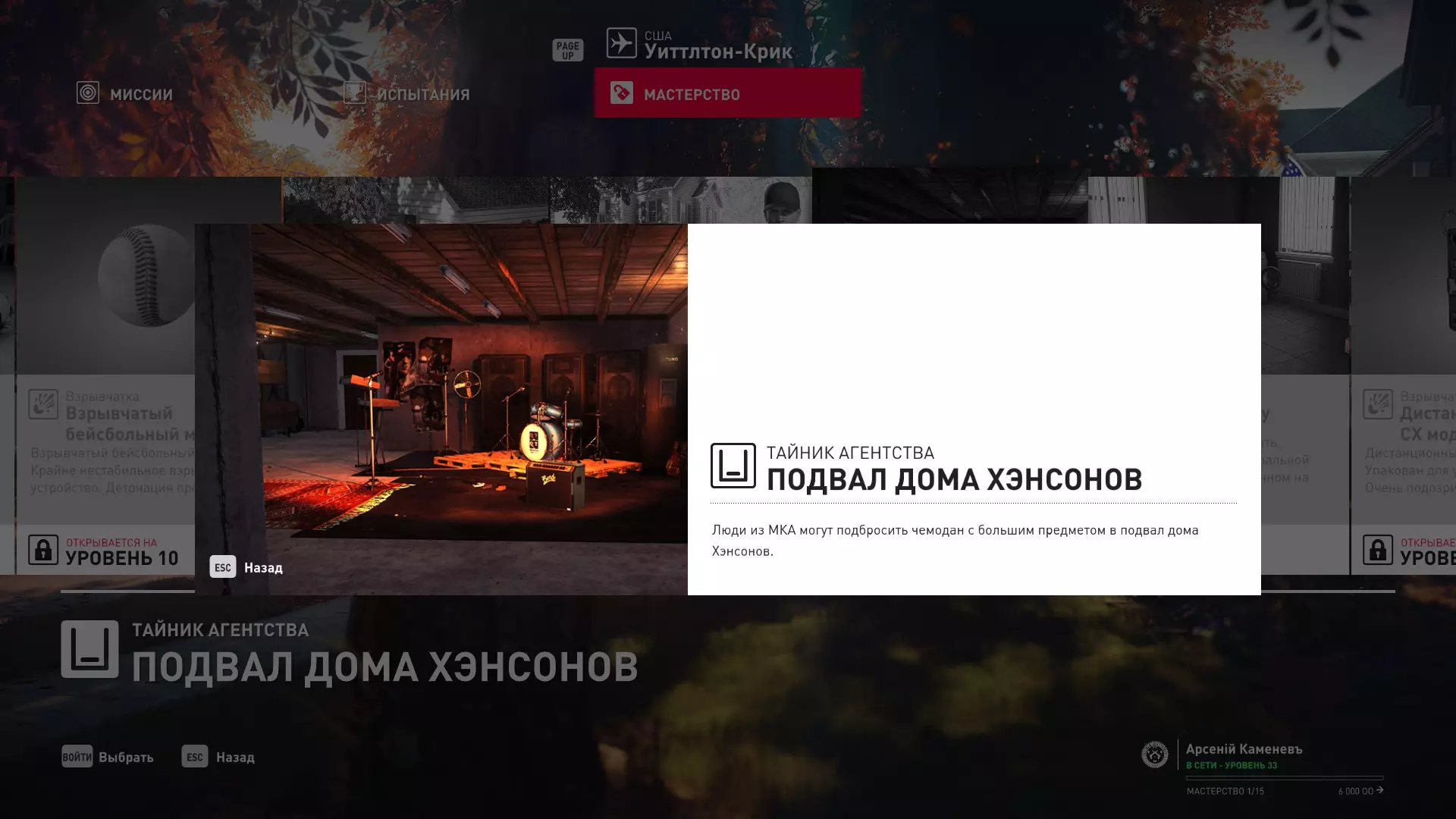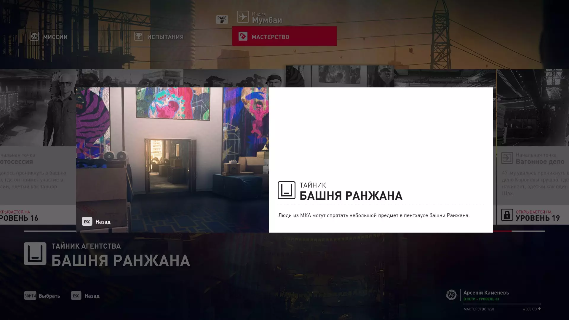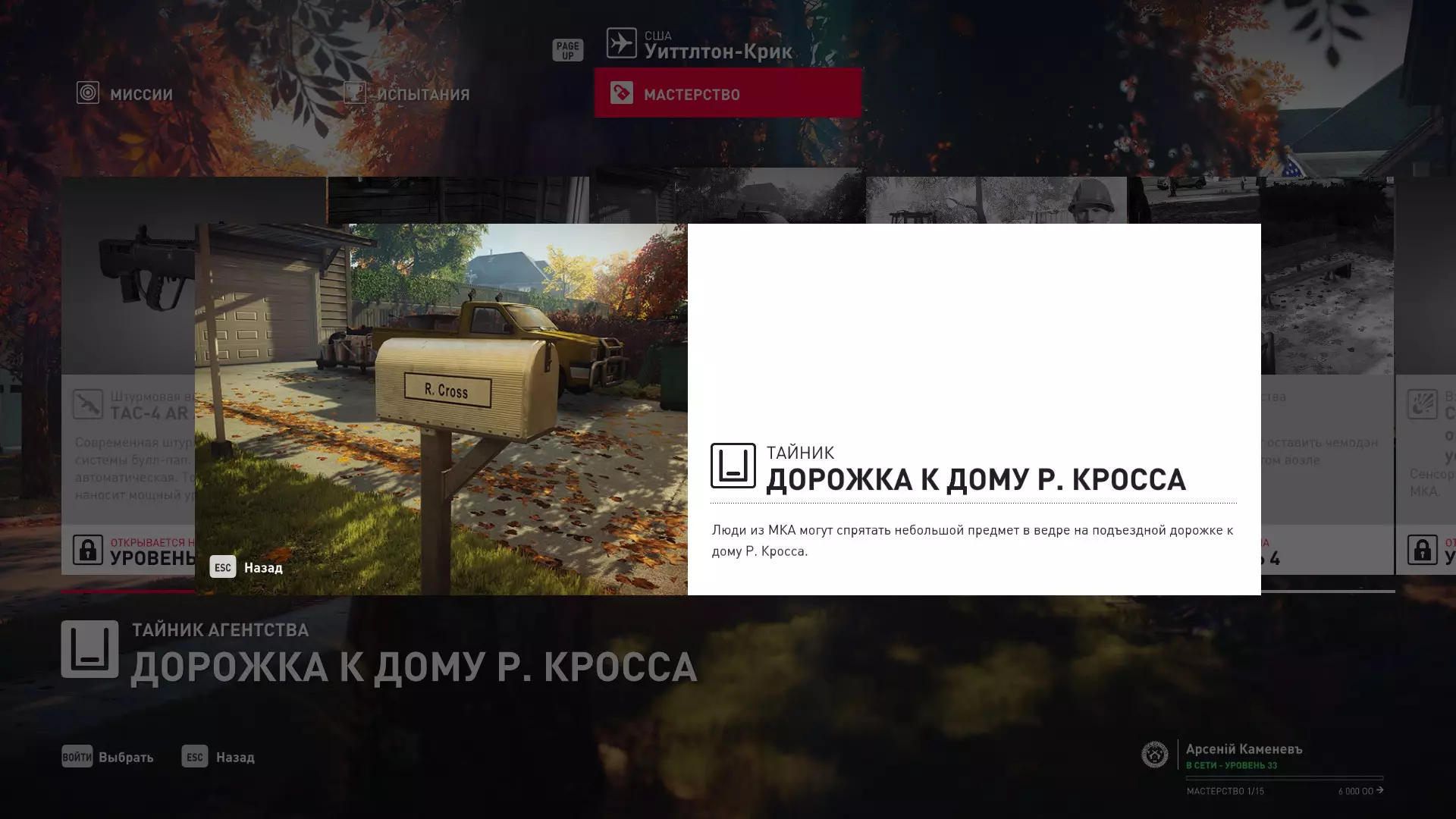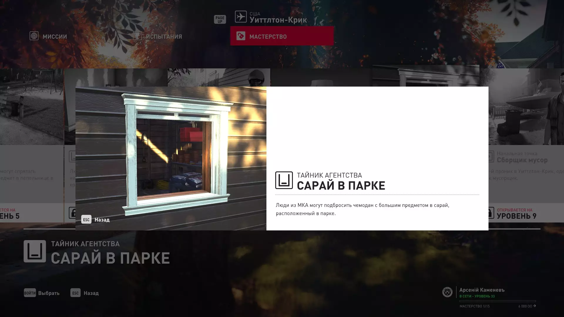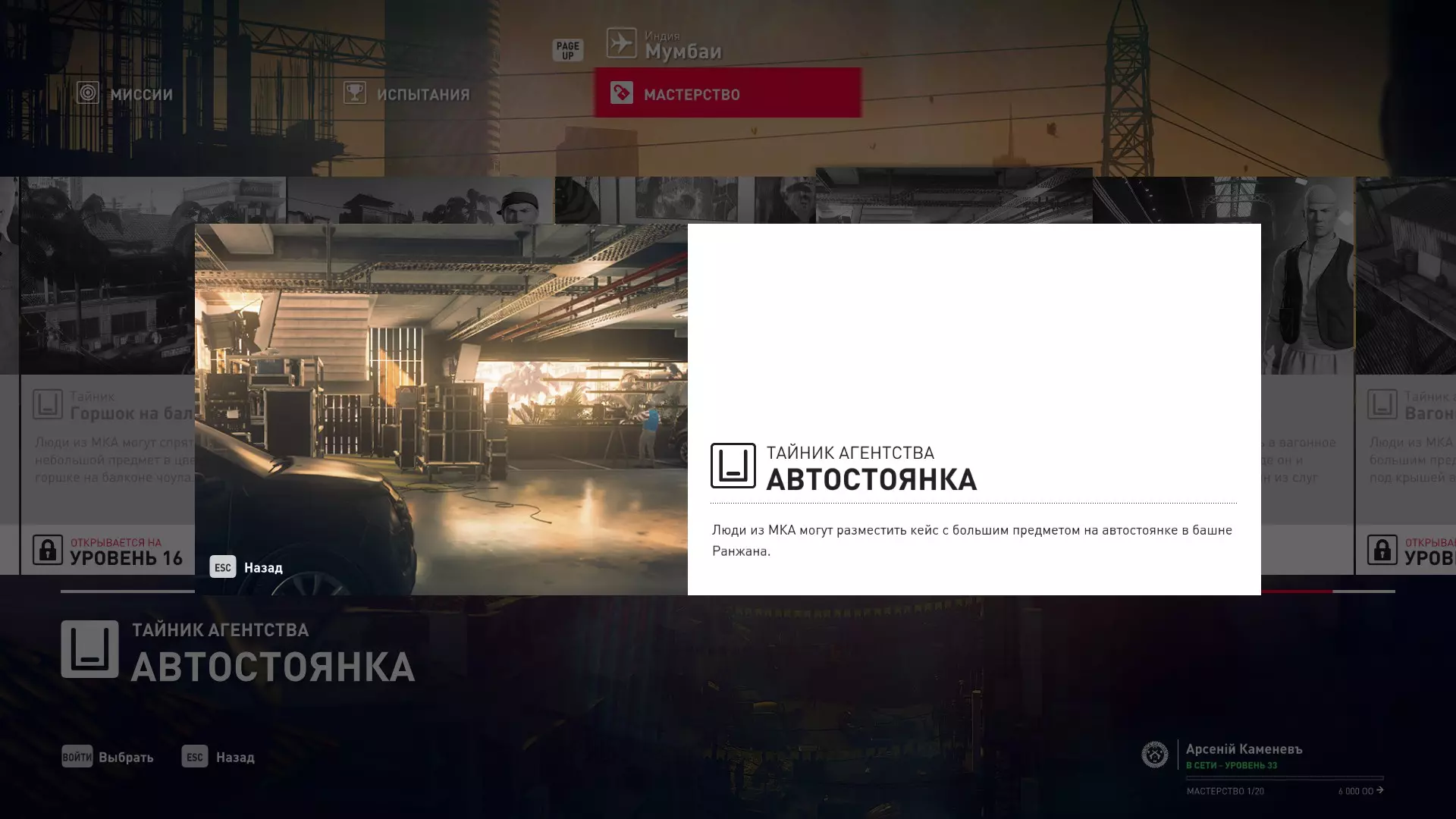 17级熟练度:在山丘的起始点伪装成“沃罗诺夫帮”成员,以及兰扎纳塔中的MKA藏身处