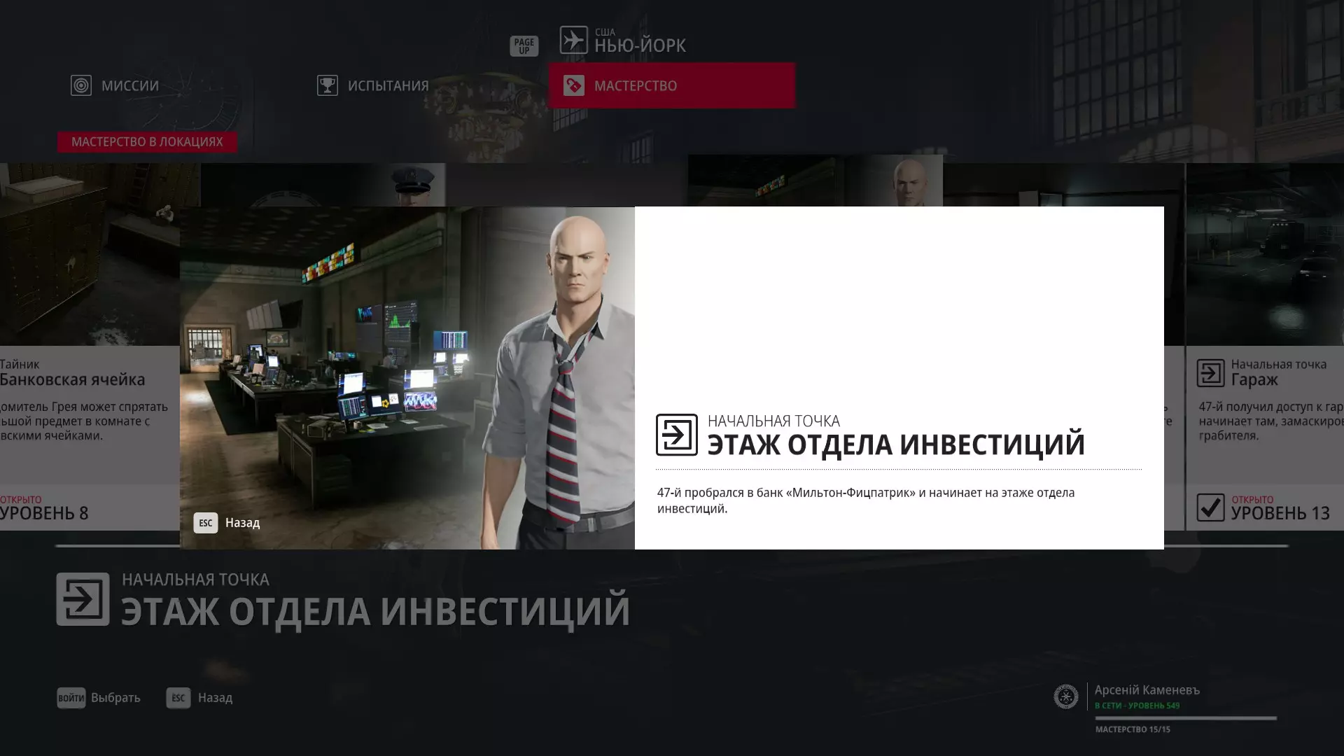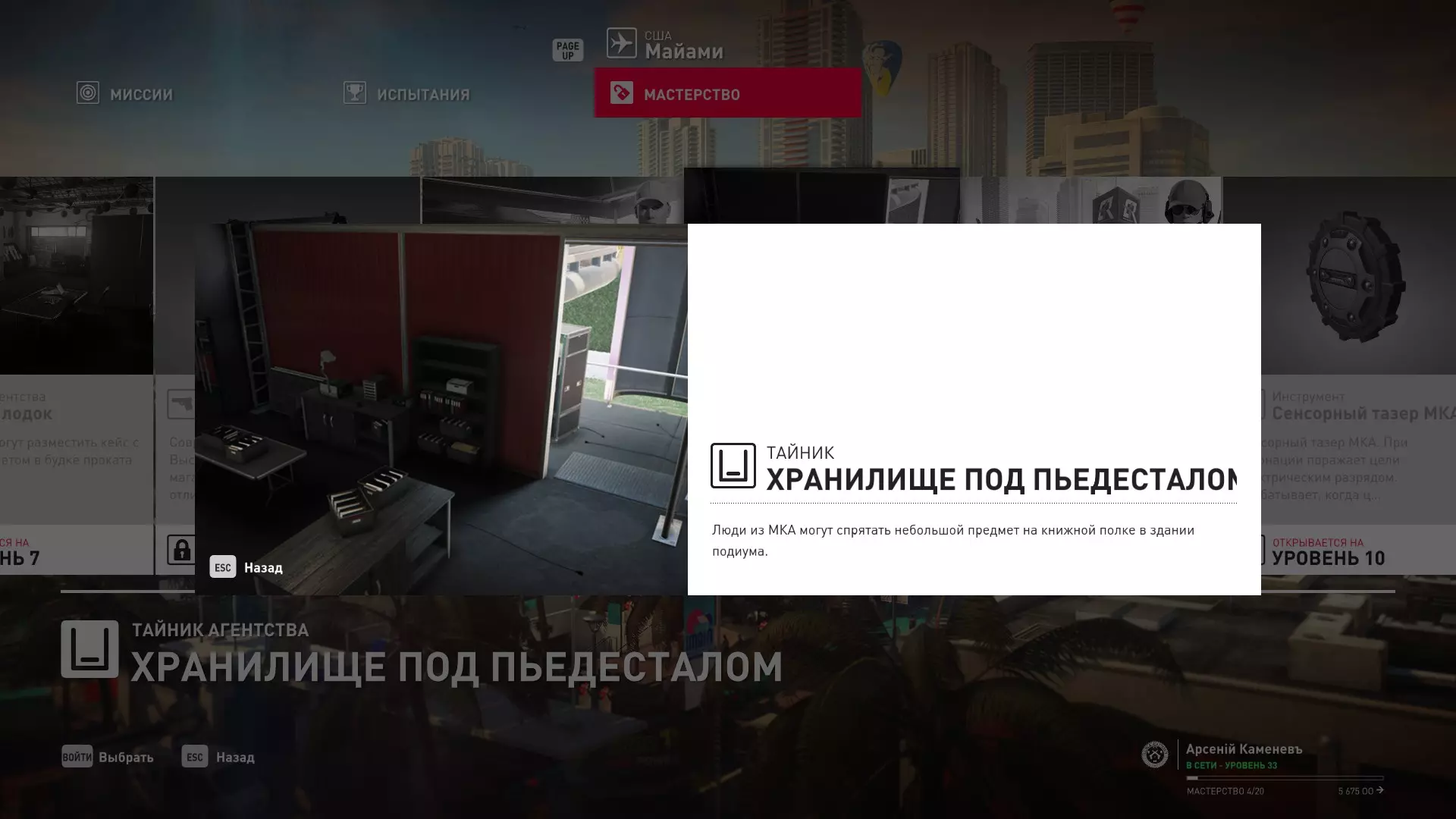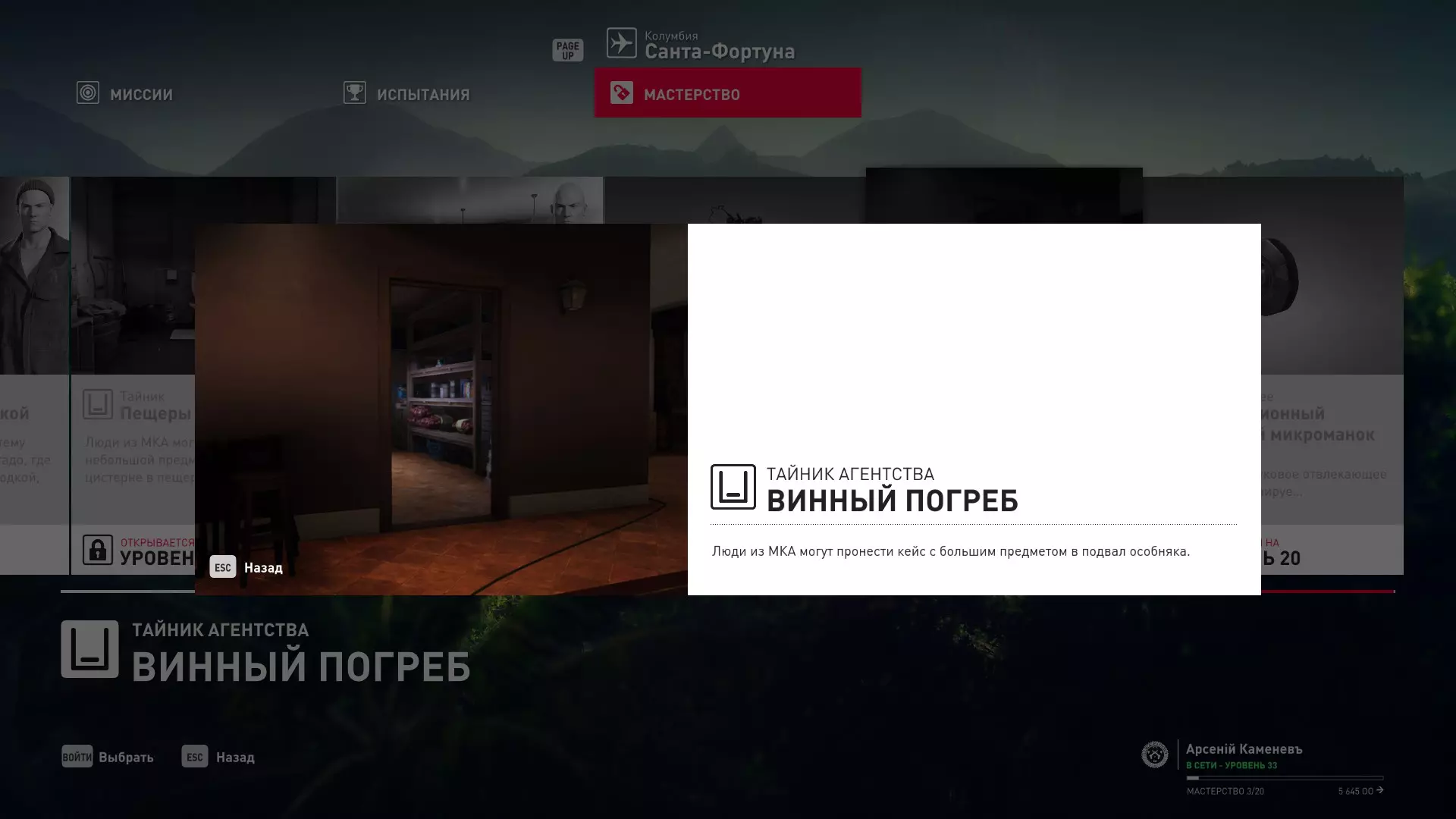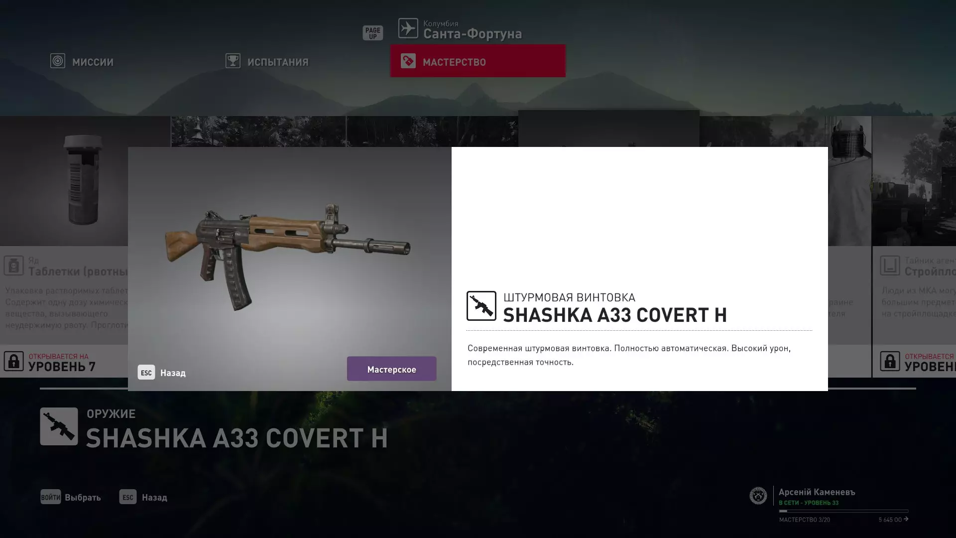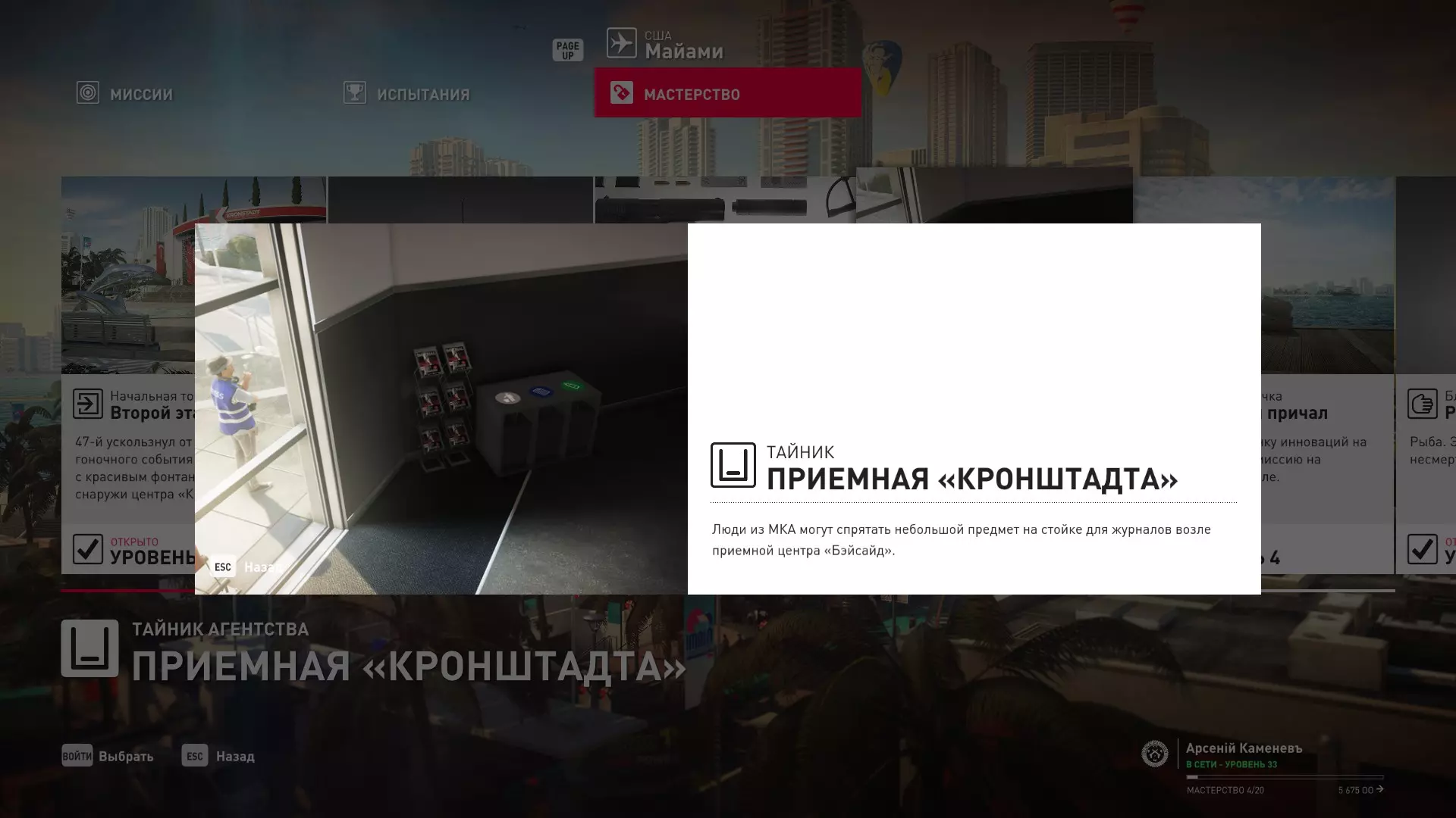 17级熟练度:在山丘的起始点伪装成“沃罗诺夫帮”成员,以及兰扎纳塔中的MKA藏身处