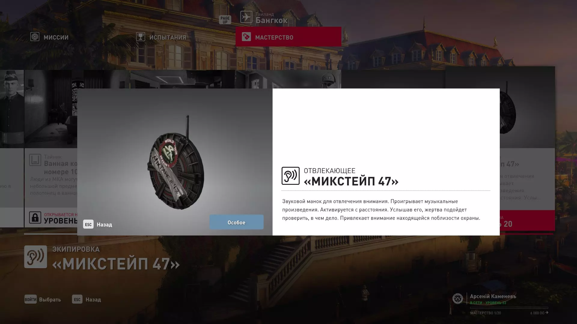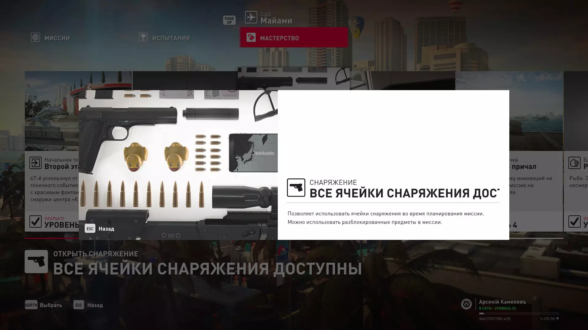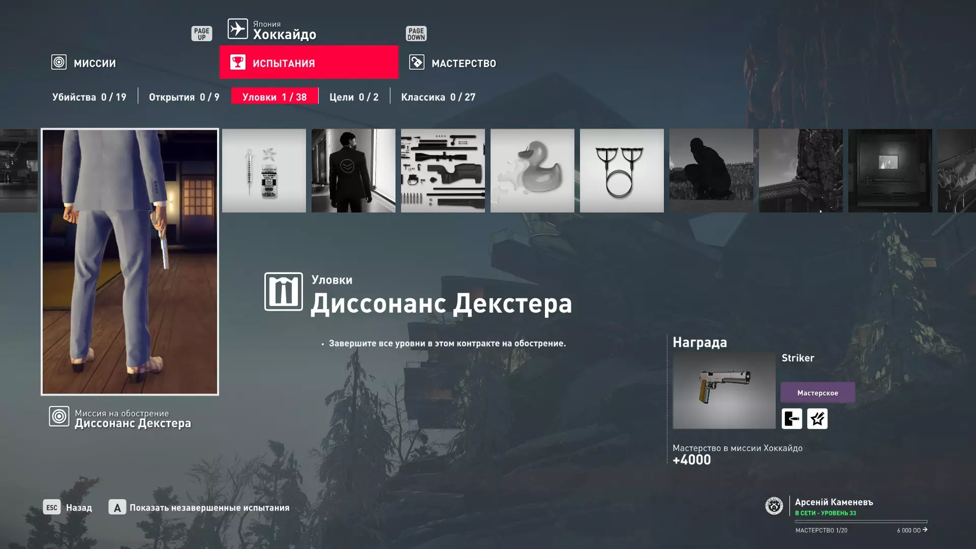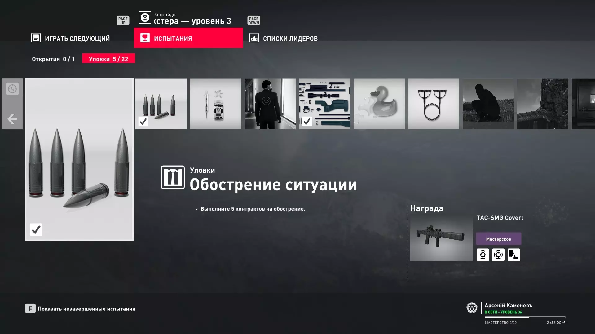 这里提供了关于技能等级奖励、难以捉摸的强化目标和试炼的综合信息。展示了通过游戏可以解锁什么以及如何解锁。信息截至2019年5月3日。 引言 为了方便玩家,我决定制作一份关于所有装备解锁的综合指南。是的,我知道所有信息都可以在游戏内获取,但游戏内的呈现方式不太方便——需要切换到不同页面并滚动水平列表。而这里不仅包含了所有内容,还以更直观的形式呈现。 重要说明 1. 这里仅描述可在游戏内获得的奖励。付费解锁内容不在此讨论范围内(除了GOTY Legacy Pack中包含的通关强化模式奖励)。 2.要完全访问第一季内容,需拥有GOTY Legacy Pack(若您没有《杀手6》)或GOTY Legacy Pack Upgrade(若您拥有《杀手6》但非年度版)。 3. 所有关于第一季内容的信息均适用于第二季推出的Legacy Pack。因此,2016年推出的第一季所有者提出的“内容不符”相关反馈将不予受理。 4.本指南不涉及以技能点形式发放的奖励(因此此处没有关于带有技能点奖励的强化和试炼,以及希姆莱施泰因和汉图港等级的信息,因为这些地方没有装备解锁)。 5. 所有信息均完全基于菜单中的描述。如果您发现这些描述与游戏实际内容不符,请告知我,我会进行修正。 6.第一季挑战奖励的描述基于《杀手6》指南中的现有信息。如果在该版本游戏中获取奖励的方式不同,请告知我。 7. 我不回答关于如何完成某项挑战的问题,因为我自己也不知道如何100%通关游戏。这方面请参考其他指南。 8. 截图中部分解锁内容的名称未完全显示,因为那里有滚动文本。9. 我已经解锁了一些内容,因为我已经开始玩游戏了。因此,有些奖励显示为已获得,有些则显示为正在获取中。 10. 2018版中所有任务和合约的物品栏是通用的。但与2016版游戏没有同步,2016版的玩家需要从头开始玩。试炼与强化 序章与通用试炼 提示:如果一开始就在【专家】或【大师】难度下完成经典试炼,那么较低难度会自动解锁。不同难度的通用试炼内容相同。因此,最合理的做法是在最高难度下完成这些试炼。提示:在【专家】难度下“从零开始”以【沉默刺客】评价完成任务#2,根据附加挑战的完成情况可获得10-12级熟练度(已在巴黎和萨皮恩扎的任务中亲自验证)。