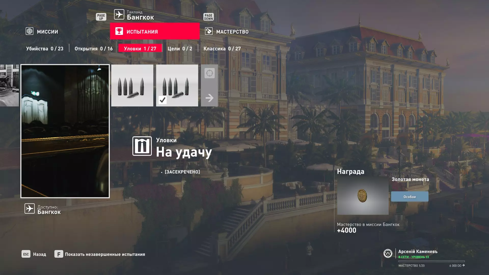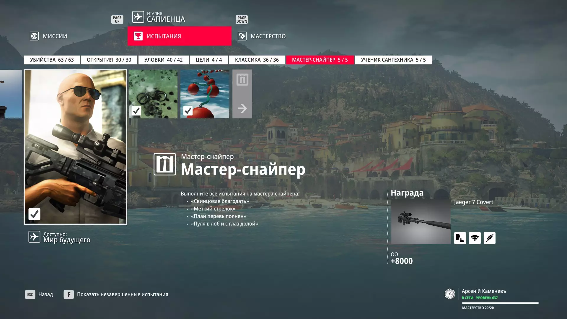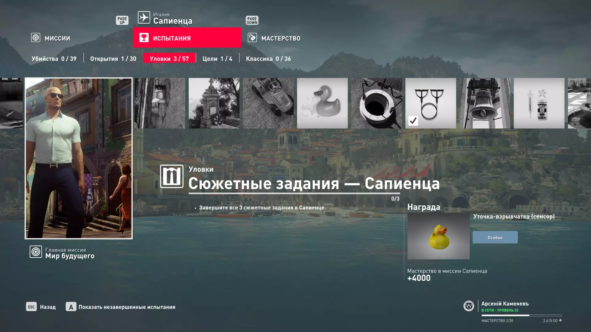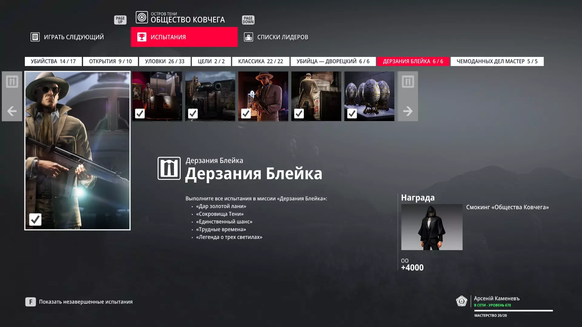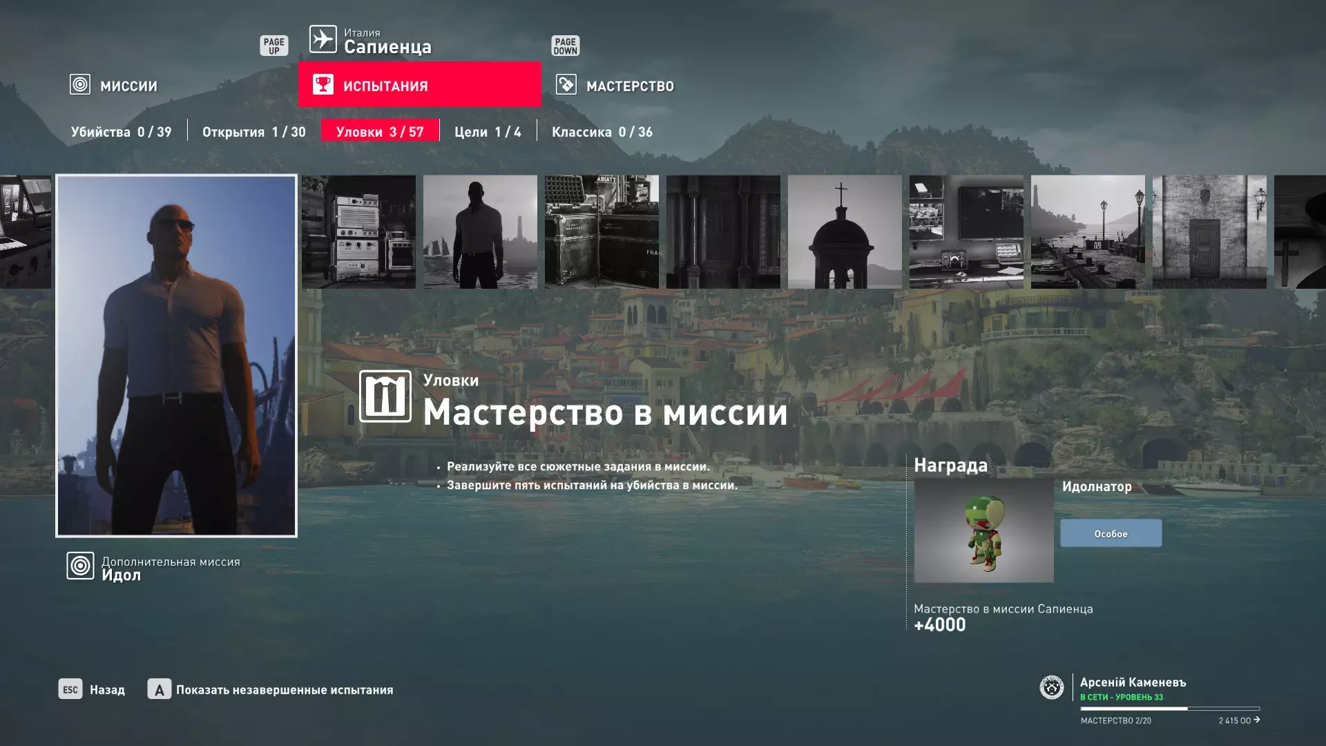这里提供了关于技能等级奖励、难以捉摸的强化目标和试炼的综合信息。展示了通过游戏可以解锁什么以及如何解锁。信息截至2019年5月3日。 引言 为了方便玩家,我决定制作一份关于所有装备解锁的综合指南。是的,我知道所有信息都可以在游戏内获取,但游戏内的呈现方式不太方便——需要切换到不同页面并滚动水平列表。而这里不仅包含了所有内容,还以更直观的形式呈现。 重要说明 1. 这里仅描述可在游戏内获得的奖励。付费解锁内容不在此讨论范围内(除了GOTY Legacy Pack中包含的通关强化模式奖励)。 2.要完全访问第一季内容,需拥有GOTY Legacy Pack(若您没有《杀手6》)或GOTY Legacy Pack Upgrade(若您拥有《杀手6》但非年度版)。 3. 所有关于第一季内容的信息均适用于第二季推出的Legacy Pack。因此,2016年推出的第一季所有者提出的“内容不符”相关反馈将不予受理。 4.本指南不涉及以技能点形式发放的奖励(因此此处没有关于带有技能点奖励的强化和试炼,以及希姆莱施泰因和汉图港等级的信息,因为这些地方没有装备解锁)。 5. 所有信息均完全基于菜单中的描述。如果您发现这些描述与游戏实际内容不符,请告知我,我会进行修正。 6.第一季挑战奖励的描述基于《杀手6》指南中的现有信息。如果在该版本游戏中获取奖励的方式不同,请告知我。 7. 我不回答关于如何完成某项挑战的问题,因为我自己也不知道如何100%通关游戏。这方面请参考其他指南。 8. 截图中部分解锁内容的名称未完全显示,因为那里有滚动文本。9. 我已经解锁了一些内容,因为我已经开始玩游戏了。因此,有些奖励显示为已获得,有些则显示为正在获取中。 10. 2018版中所有任务和合约的物品栏是通用的。但与2016版游戏没有同步,2016版的玩家需要从头开始玩。试炼与强化 序章与通用试炼 提示:如果一开始就在【专家】或【大师】难度下完成经典试炼,那么较低难度会自动解锁。不同难度的通用试炼内容相同。因此,最合理的做法是在最高难度下完成这些试炼。提示:在【专家】难度下“从零开始”以【沉默刺客】评价完成任务#2,根据附加挑战的完成情况可获得10-12级熟练度(已在巴黎和萨皮恩扎的任务中亲自验证)。