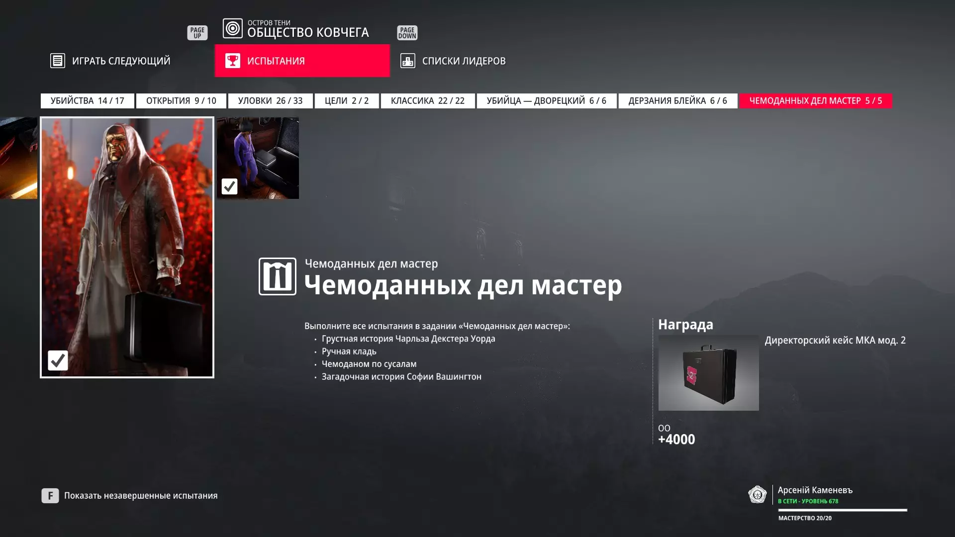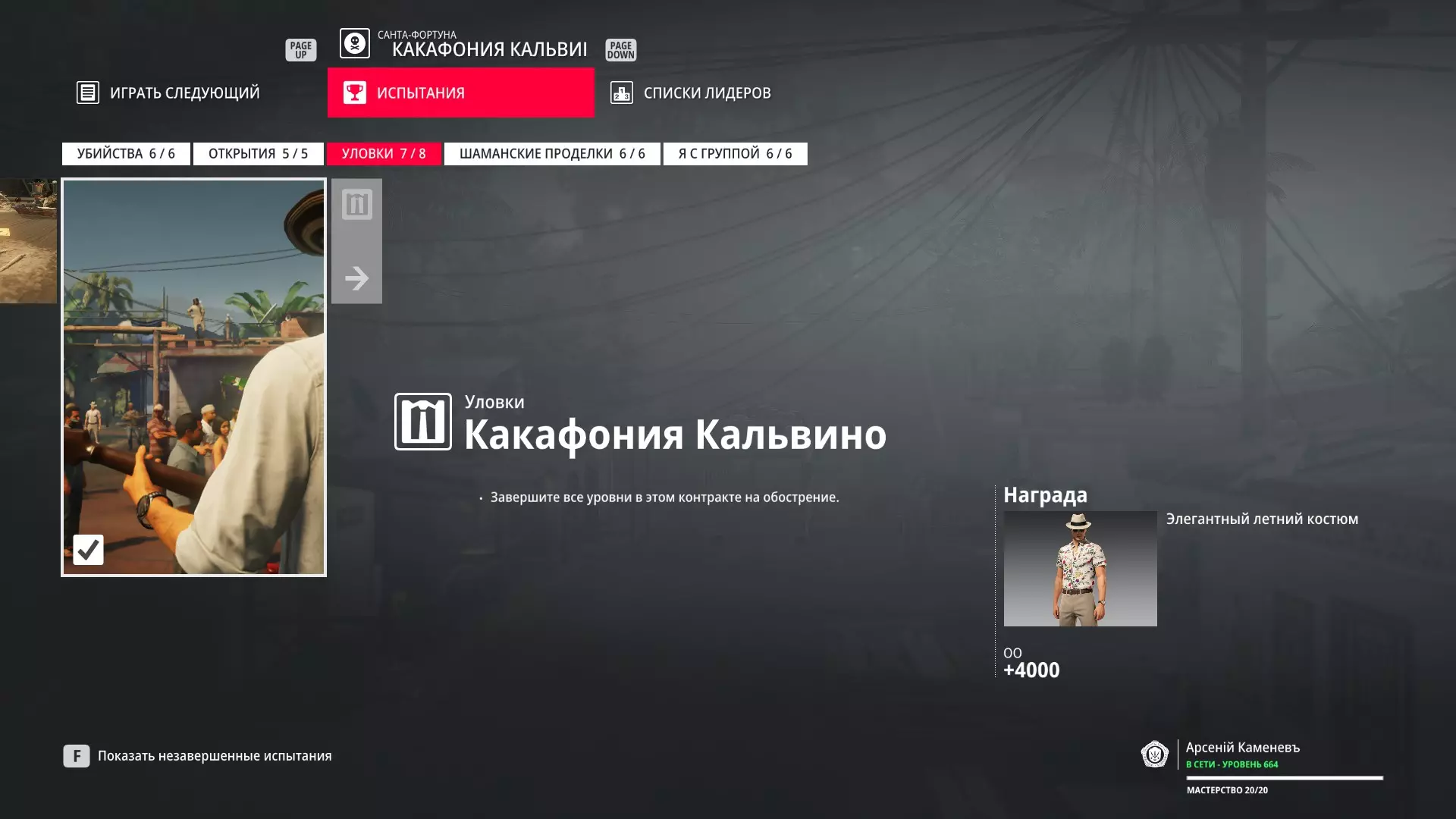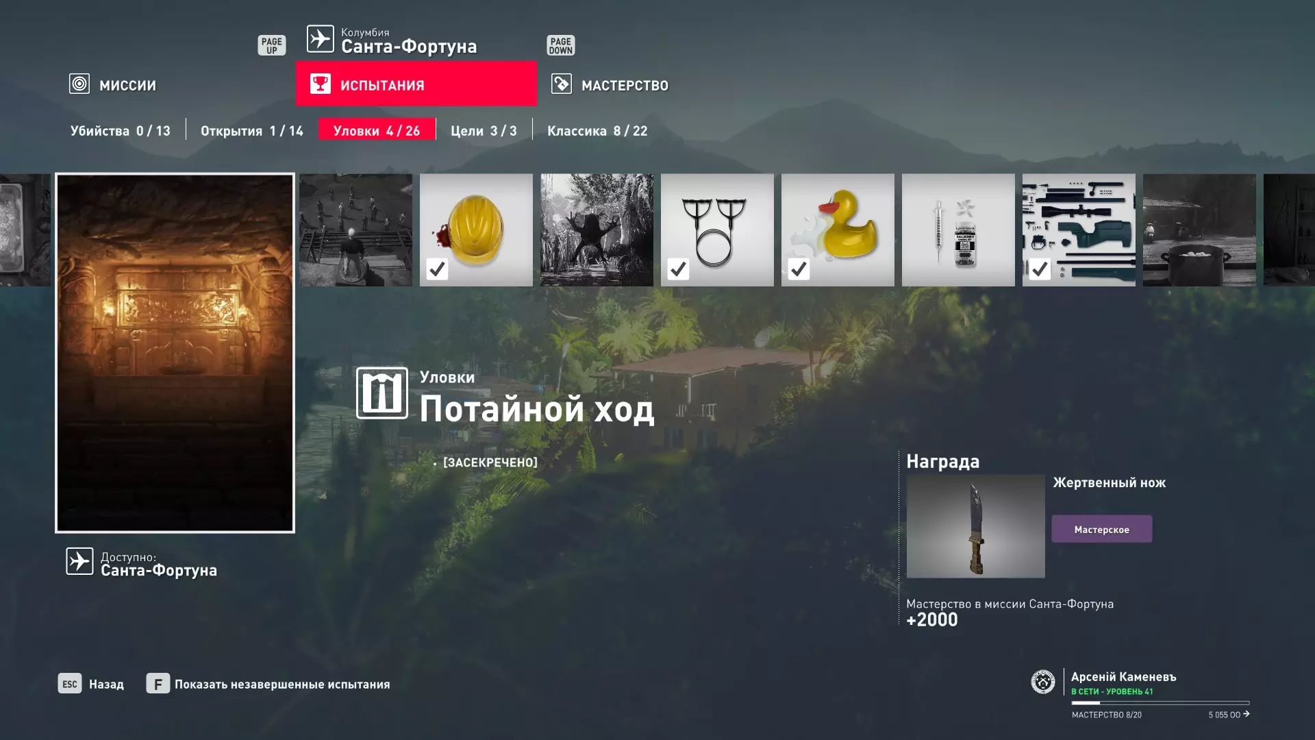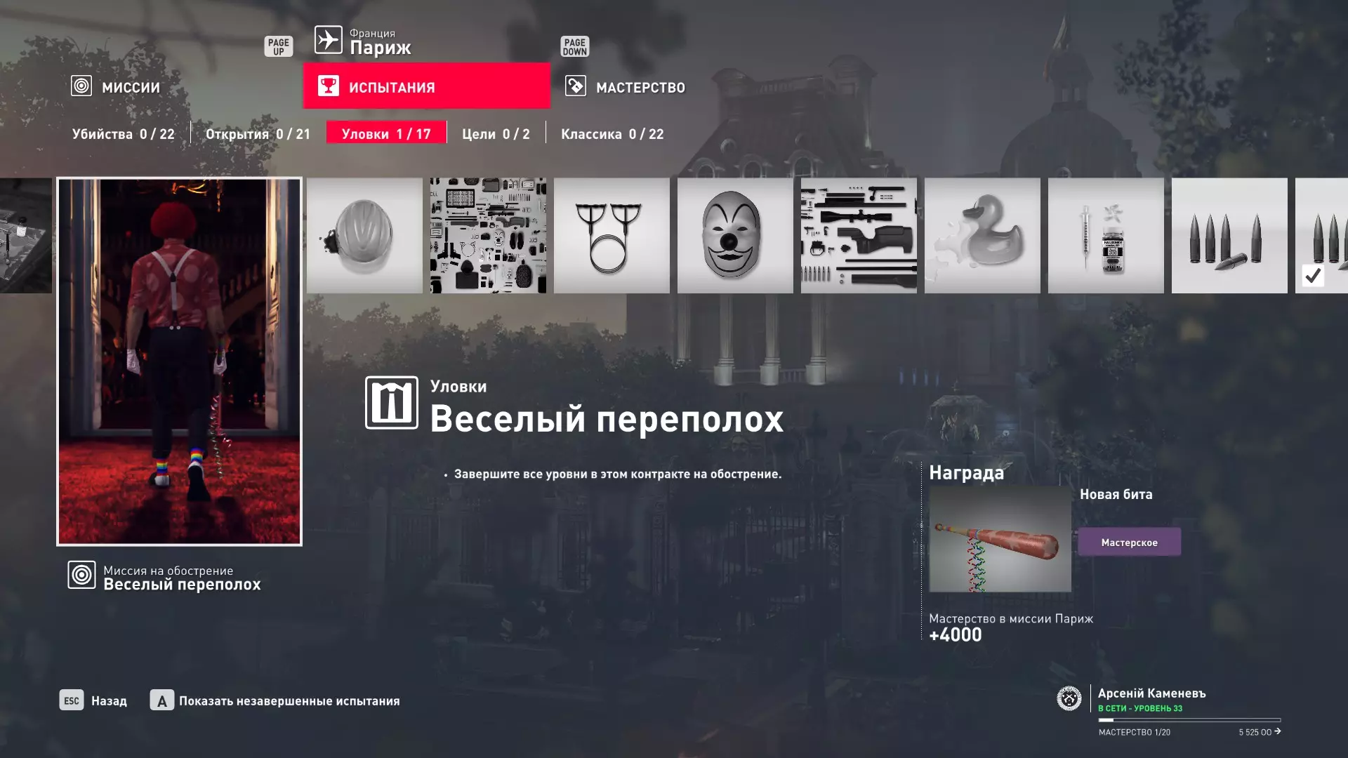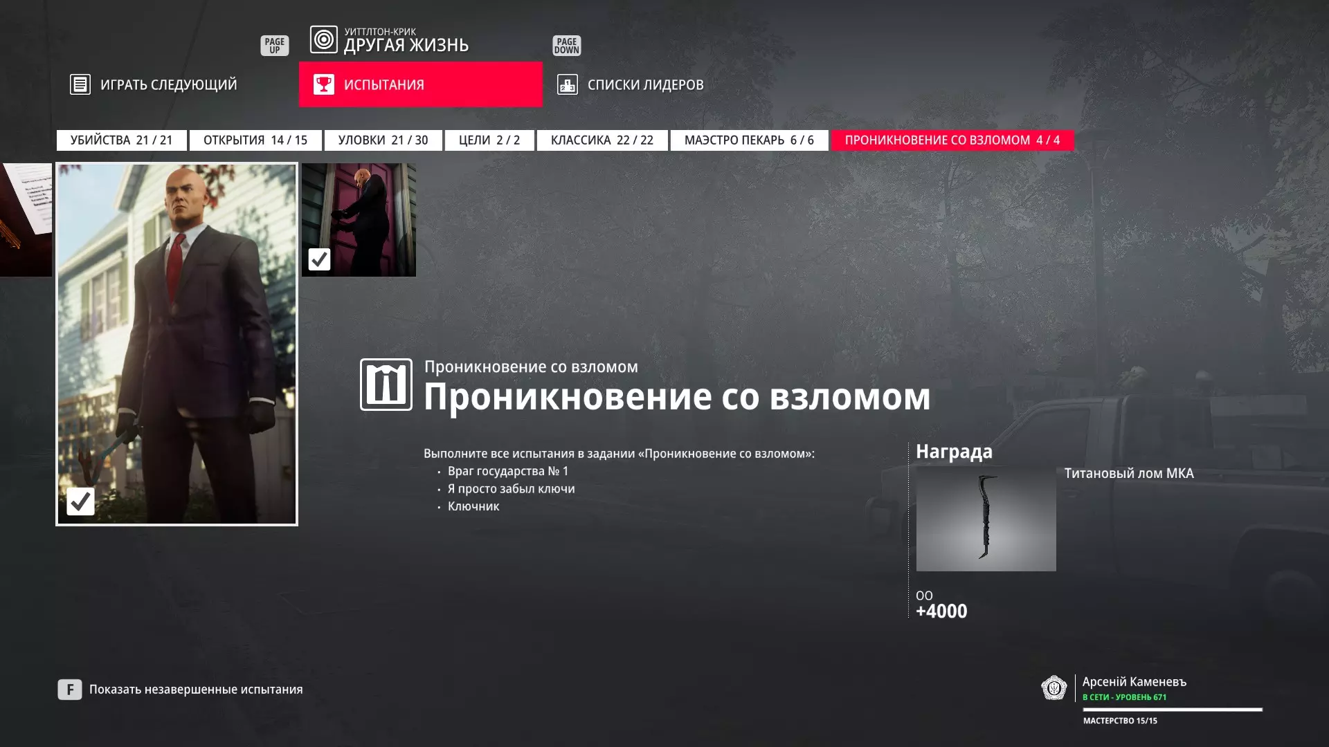 这里提供了关于技能等级奖励、难以捉摸的强化目标和试炼的综合信息。展示了通过游戏可以解锁什么以及如何解锁。信息截至2019年5月3日。 引言 为了方便玩家,我决定制作一份关于所有装备解锁的综合指南。是的,我知道所有信息都可以在游戏内获取,但游戏内的呈现方式不太方便——需要切换到不同页面并滚动水平列表。而这里不仅包含了所有内容,还以更直观的形式呈现。 重要说明 1. 这里仅描述可在游戏内获得的奖励。付费解锁内容不在此讨论范围内(除了GOTY Legacy Pack中包含的通关强化模式奖励)。 2.要完全访问第一季内容,需拥有GOTY Legacy Pack(若您没有《杀手6》)或GOTY Legacy Pack Upgrade(若您拥有《杀手6》但非年度版)。 3. 所有关于第一季内容的信息均适用于第二季推出的Legacy Pack。因此,2016年推出的第一季所有者提出的“内容不符”相关反馈将不予受理。 4.本指南不涉及以技能点形式发放的奖励(因此此处没有关于带有技能点奖励的强化和试炼,以及希姆莱施泰因和汉图港等级的信息,因为这些地方没有装备解锁)。 5. 所有信息均完全基于菜单中的描述。如果您发现这些描述与游戏实际内容不符,请告知我,我会进行修正。 6.第一季挑战奖励的描述基于《杀手6》指南中的现有信息。如果在该版本游戏中获取奖励的方式不同,请告知我。 7. 我不回答关于如何完成某项挑战的问题,因为我自己也不知道如何100%通关游戏。这方面请参考其他指南。 8. 截图中部分解锁内容的名称未完全显示,因为那里有滚动文本。9. 我已经解锁了一些内容,因为我已经开始玩游戏了。因此,有些奖励显示为已获得,有些则显示为正在获取中。 10. 2018版中所有任务和合约的物品栏是通用的。但与2016版游戏没有同步,2016版的玩家需要从头开始玩。试炼与强化 序章与通用试炼 提示:如果一开始就在【专家】或【大师】难度下完成经典试炼,那么较低难度会自动解锁。不同难度的通用试炼内容相同。因此,最合理的做法是在最高难度下完成这些试炼。提示:在【专家】难度下“从零开始”以【沉默刺客】评价完成任务#2,根据附加挑战的完成情况可获得10-12级熟练度(已在巴黎和萨皮恩扎的任务中亲自验证)。