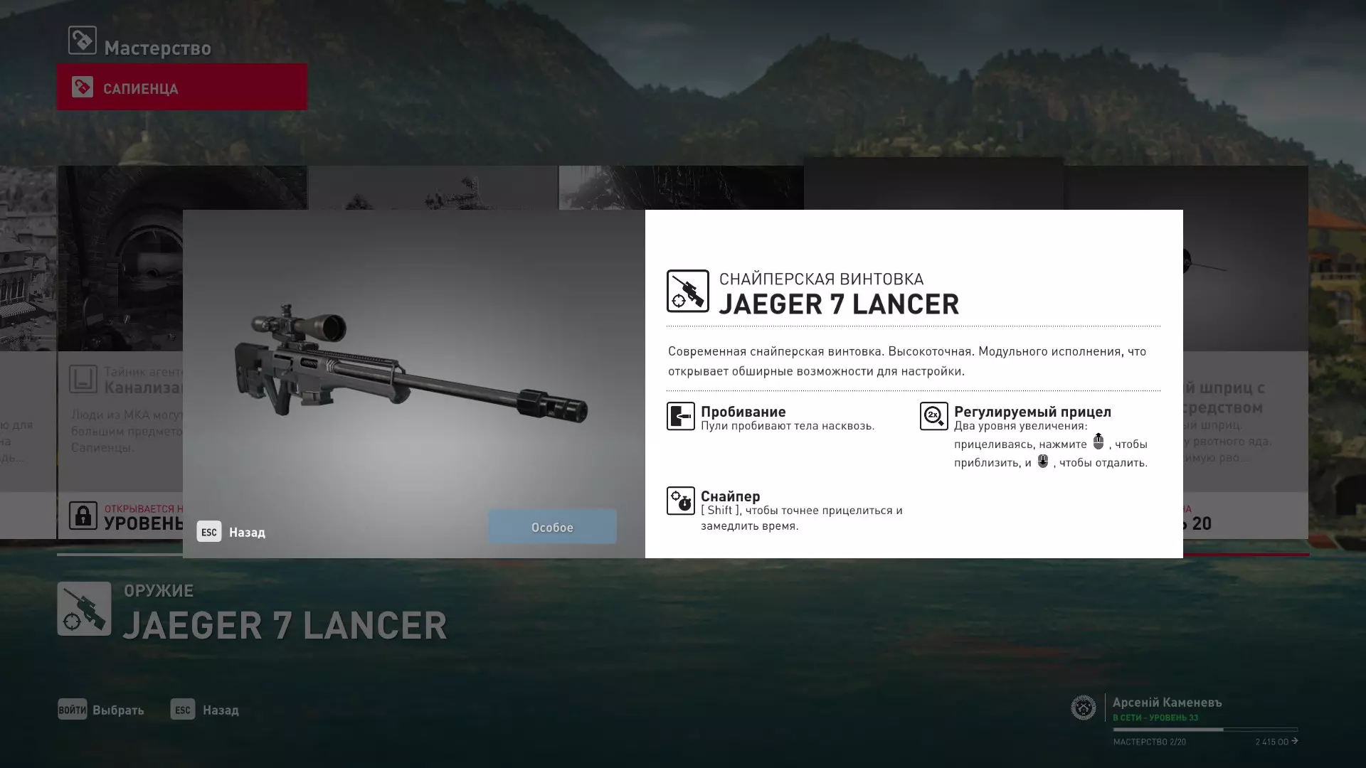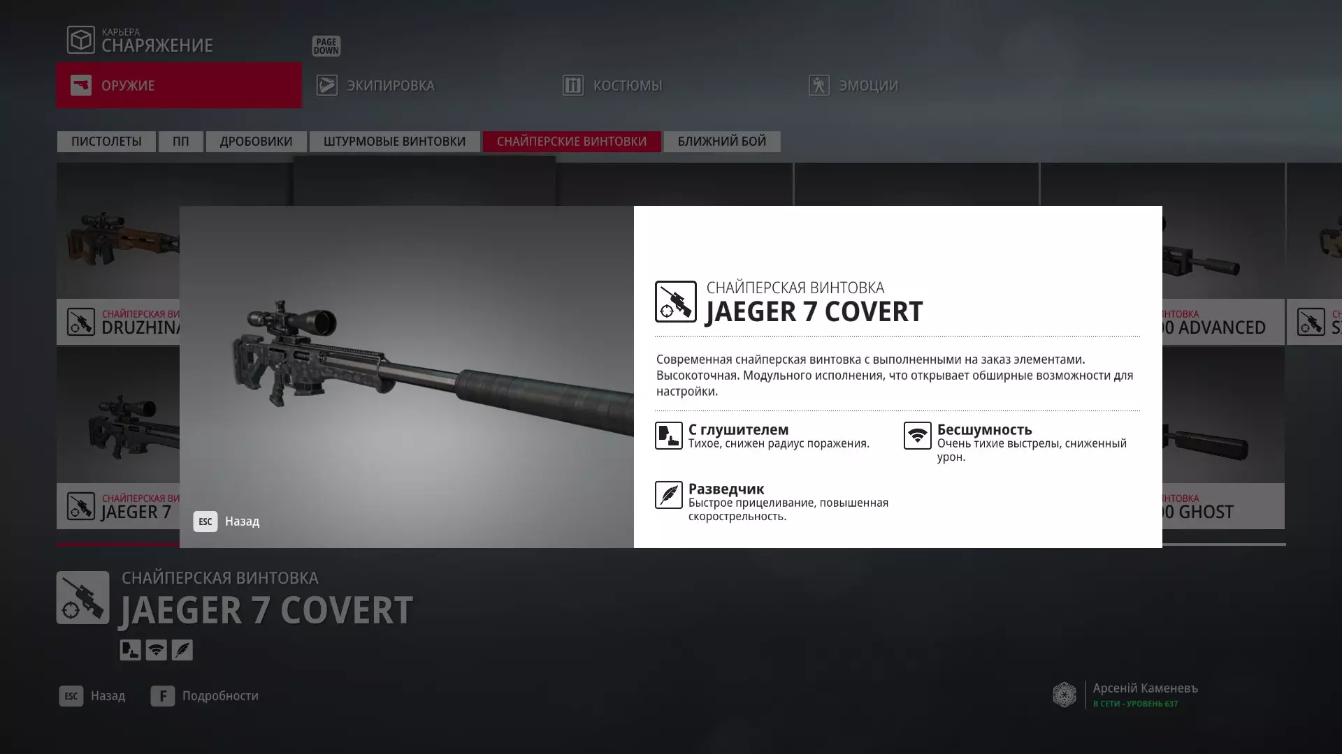 5级熟练度:Jaeger 7狙击步枪