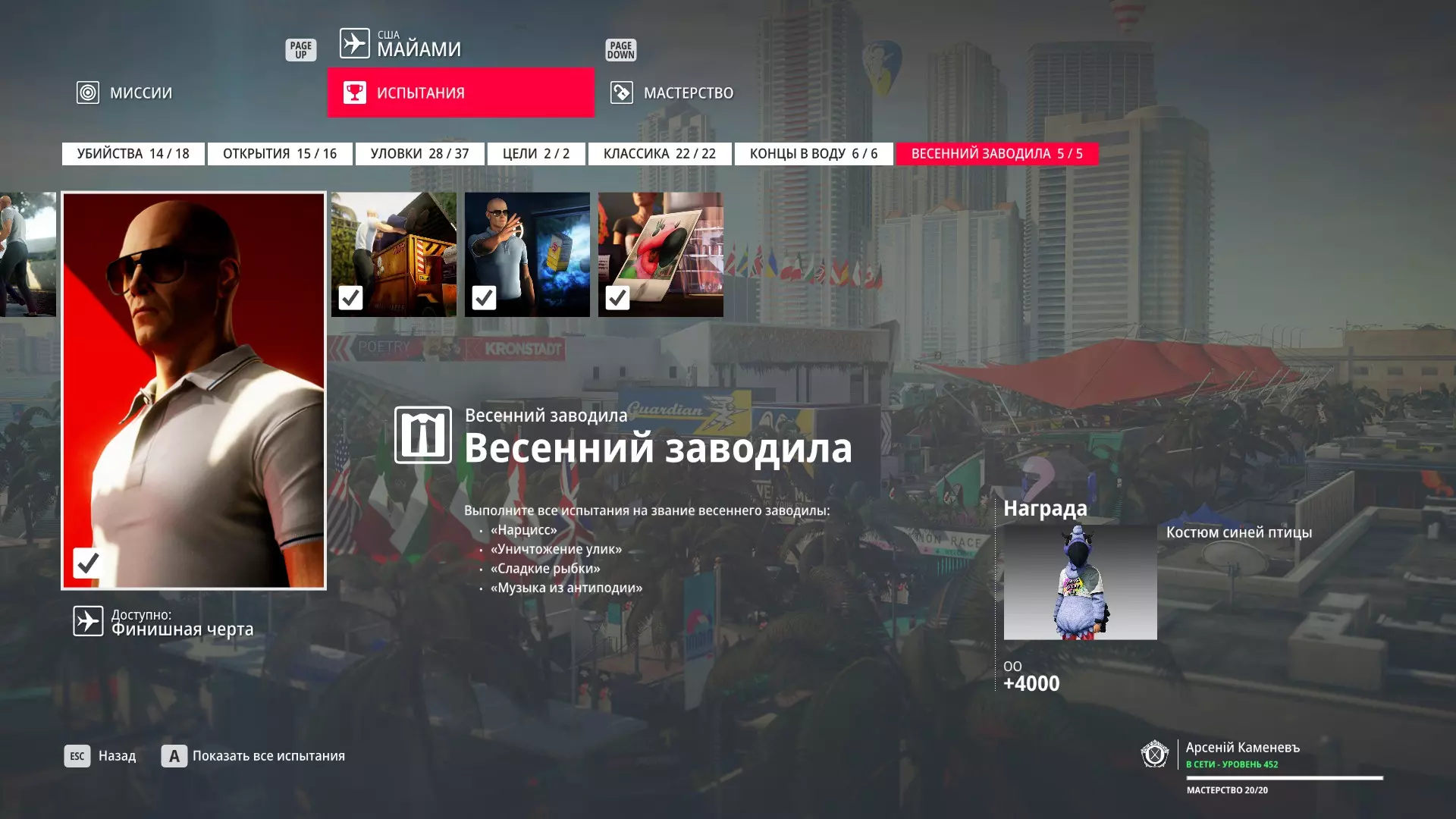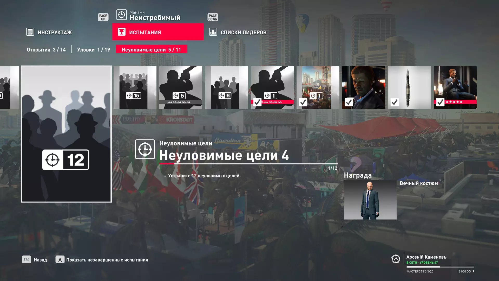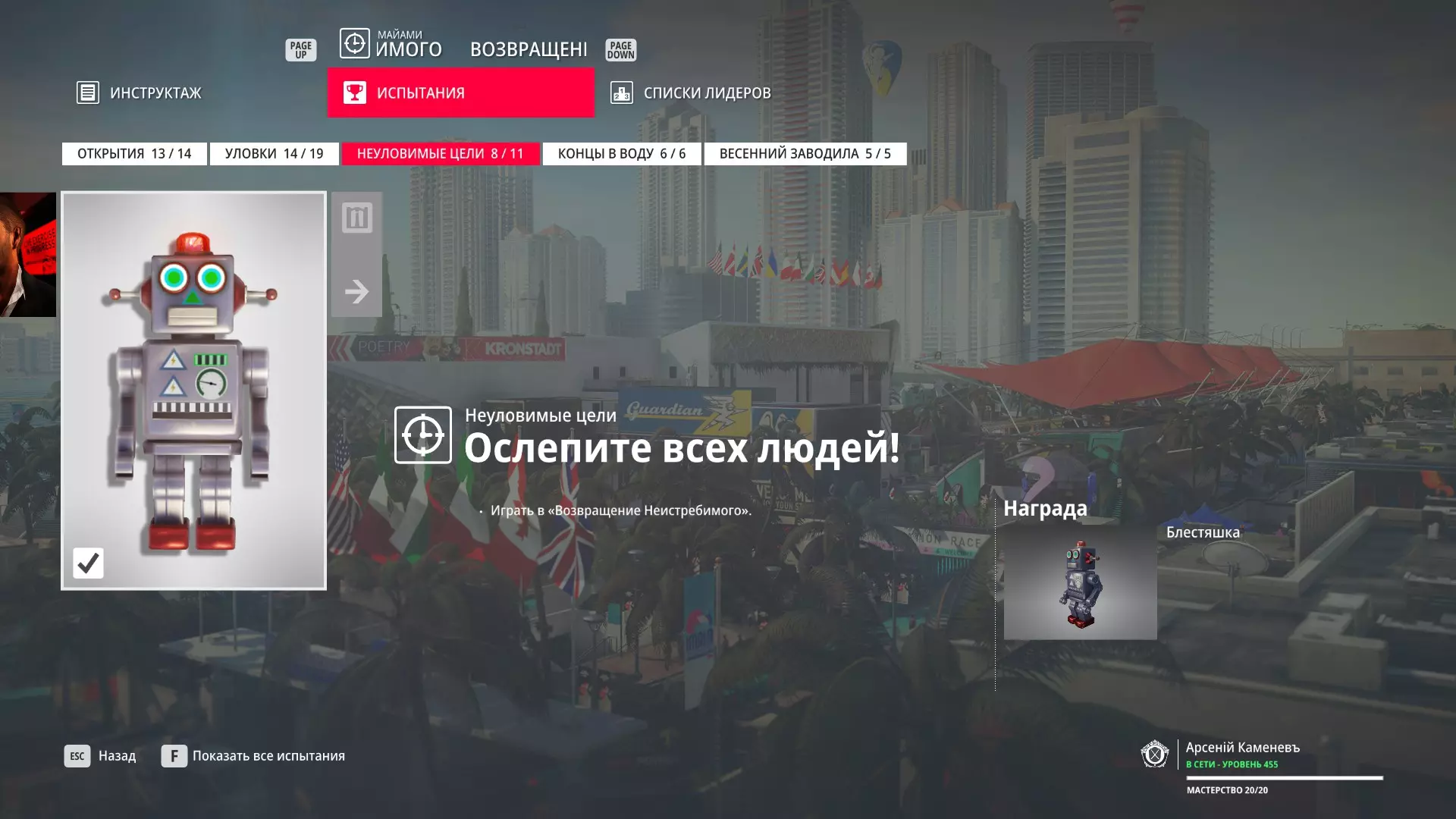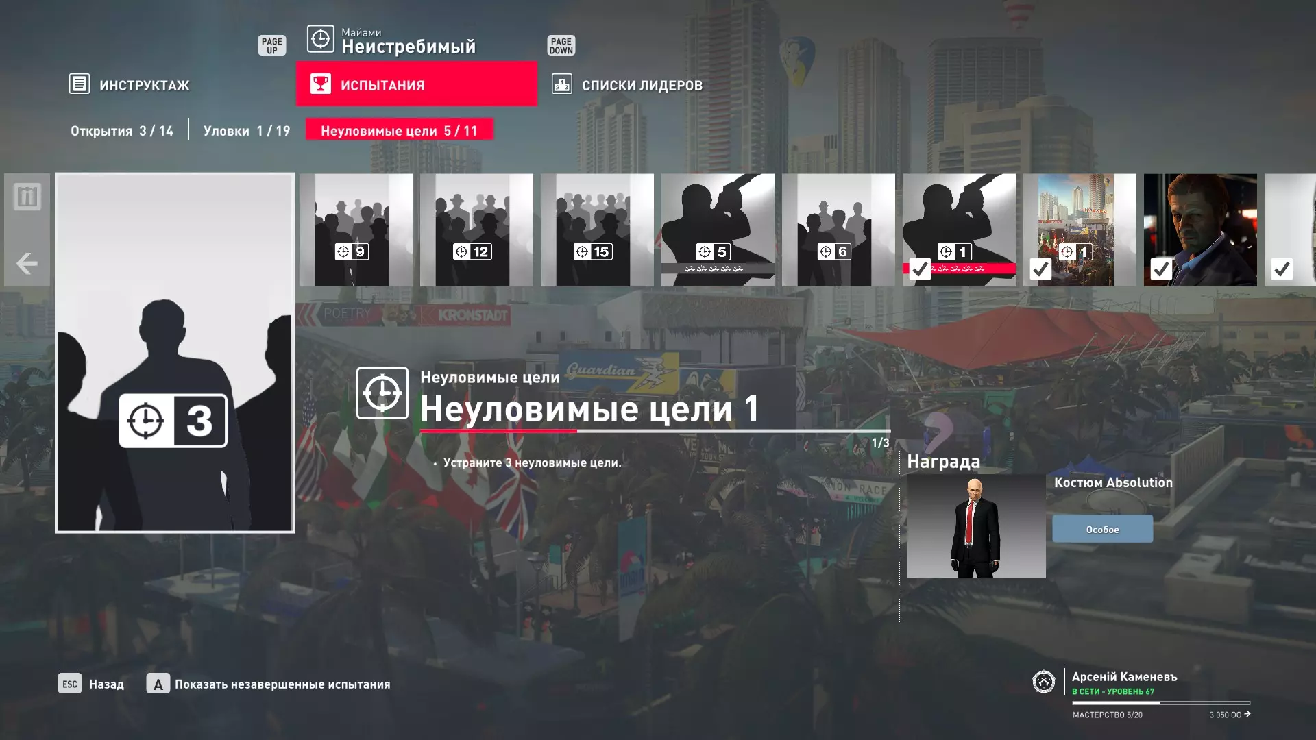 试炼:难以捉摸的目标 - 迈阿密 描述:在迈阿密消灭一个难以捉摸的目标 奖励:佛罗里达伪装与手套