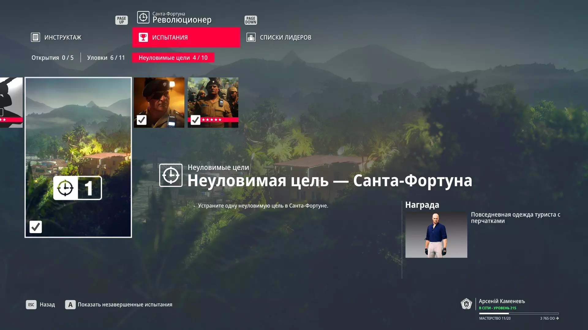 试炼:难以捉摸的目标 - 圣福图纳 描述:在圣福图纳消灭一个难以捉摸的目标 奖励:带手套的游客日常服装