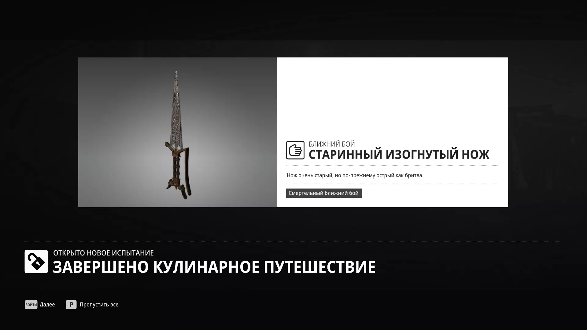 试炼:烹饪之旅 描述:完成“烹饪之旅”系列的所有试炼 奖励:古老弯刃刀