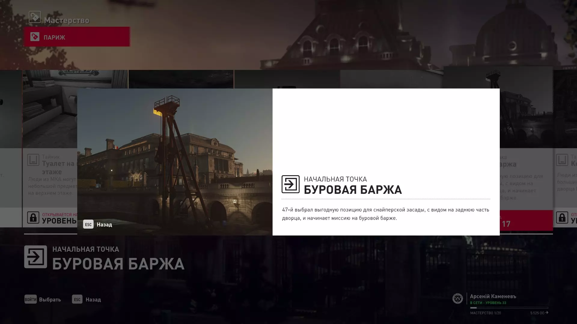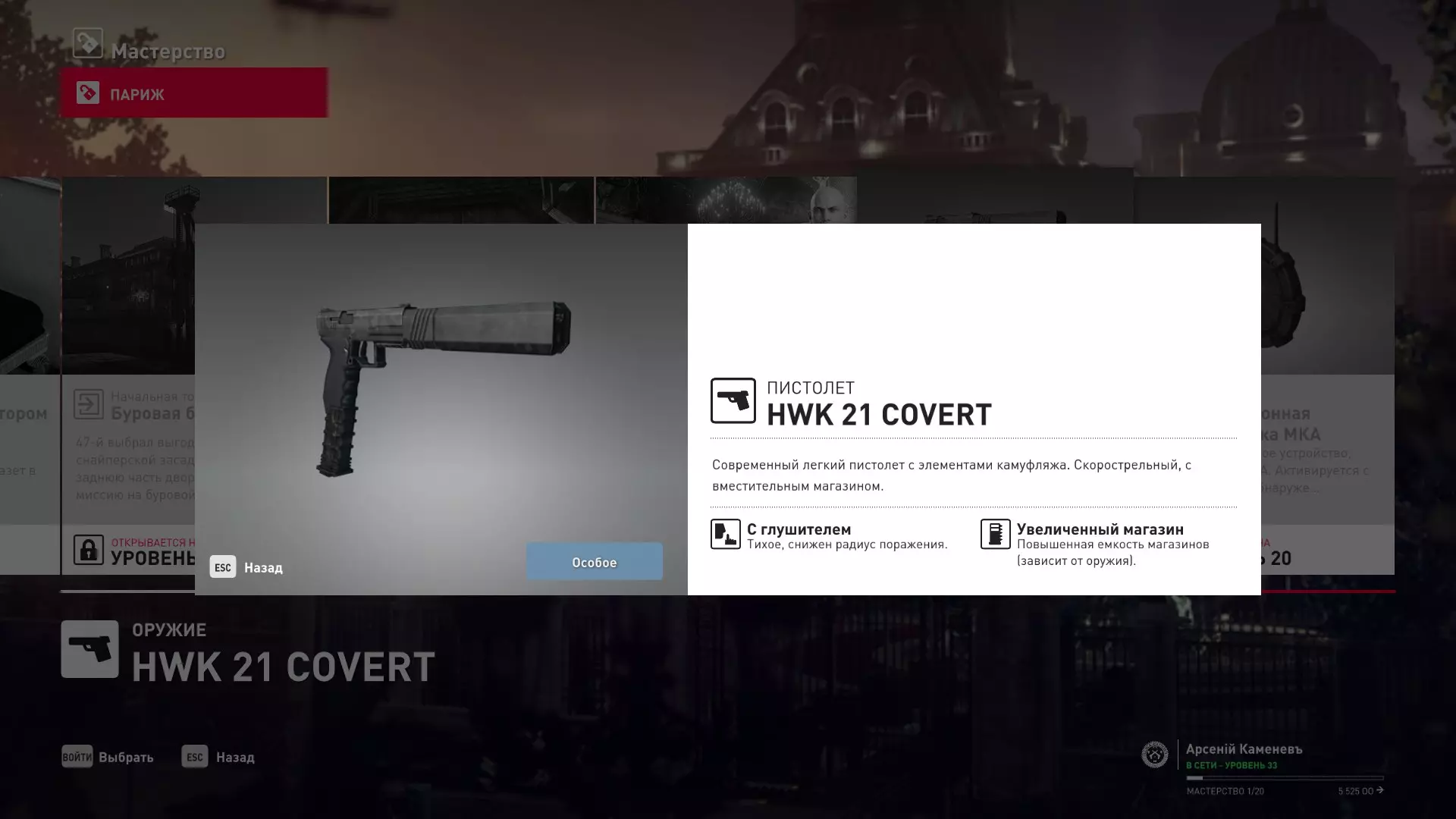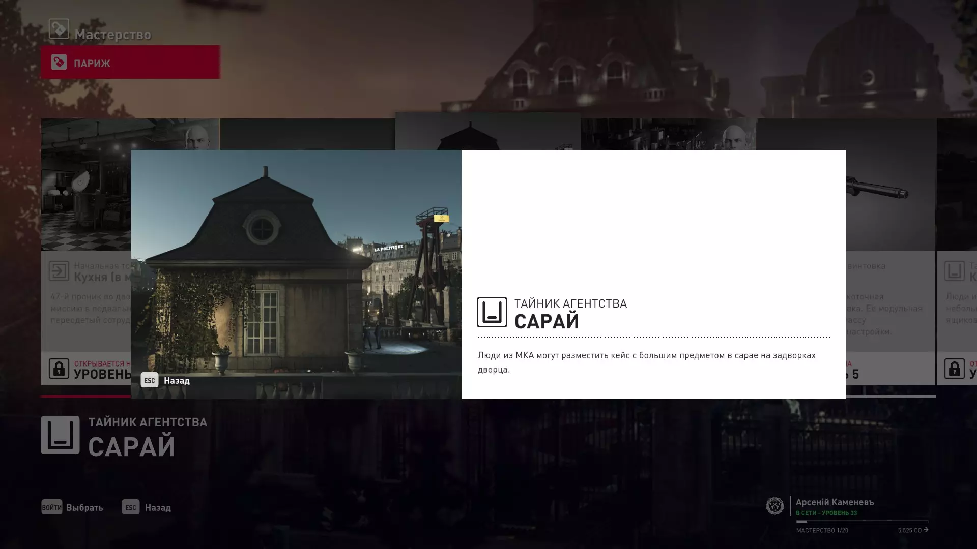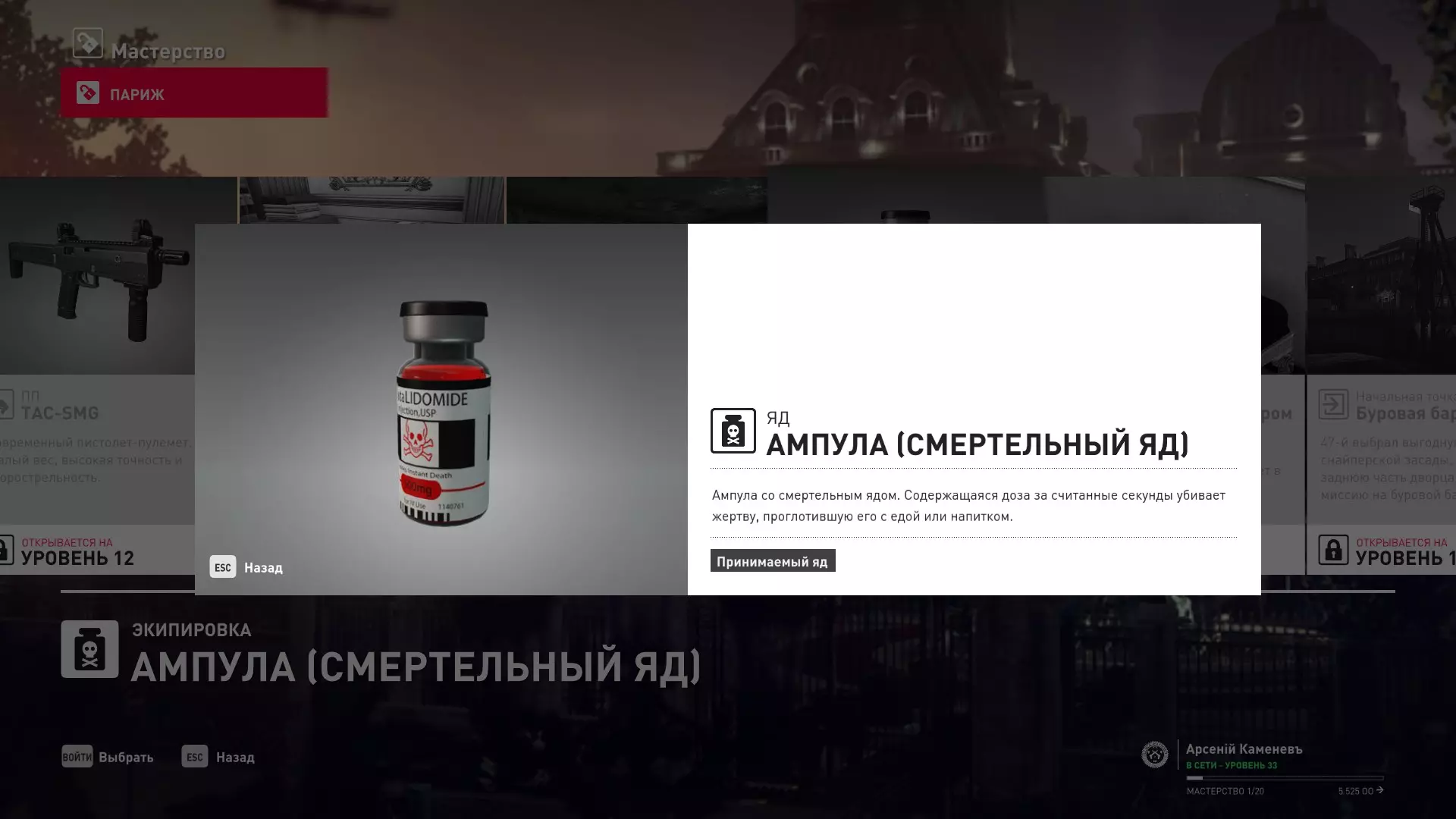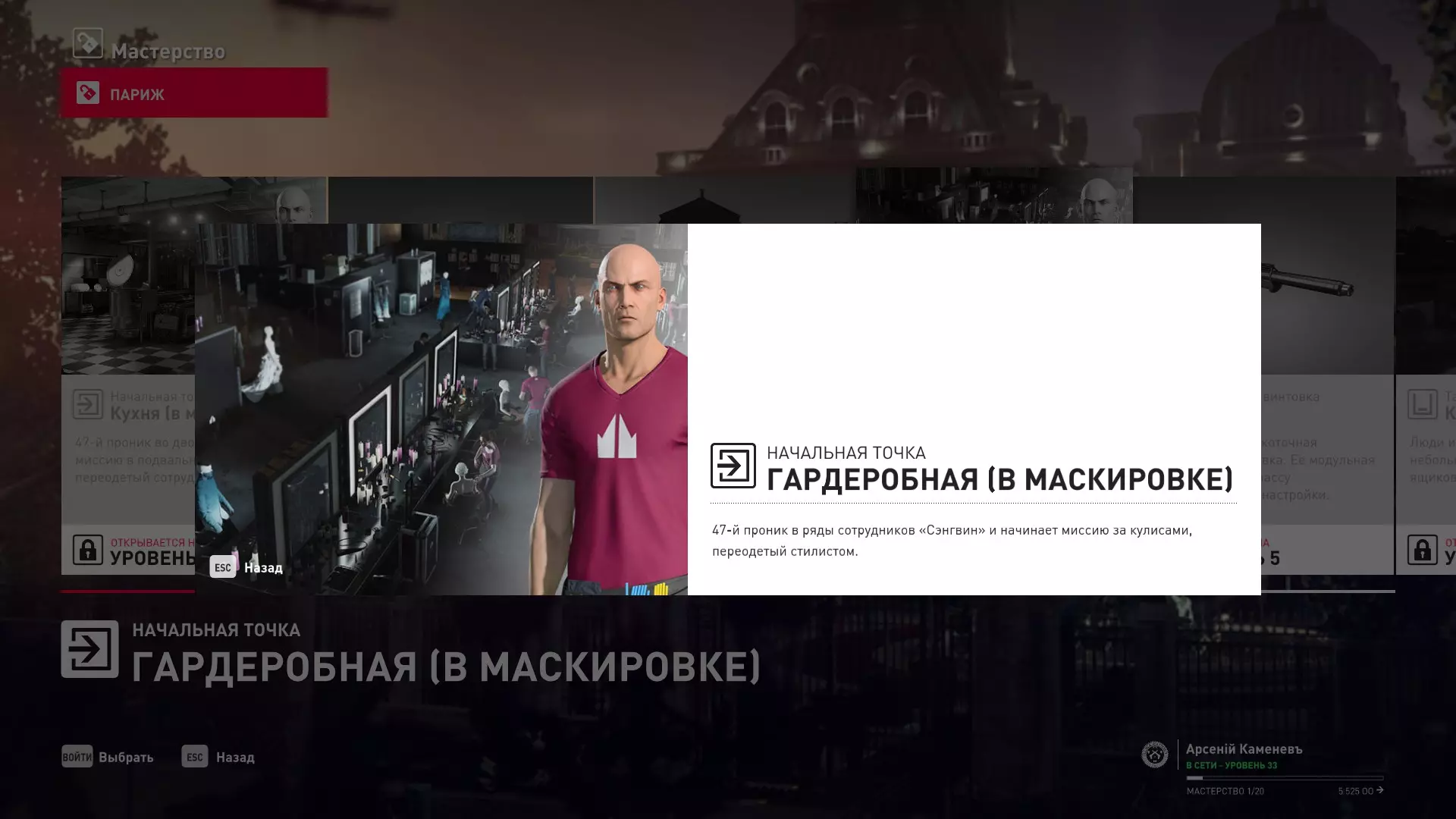提示:成就【Бесшумный убийца】的获取条件与普通游戏相同,但没有换装限制。即:不可被发现且不可滥杀无辜。换装无限制。可以击晕任何人,关键是尸体不被发现。 挑战:无法捕捉的目标 - 巴黎 描述:在巴黎消灭一个无法捕捉的目标 奖励:晚礼服配手套