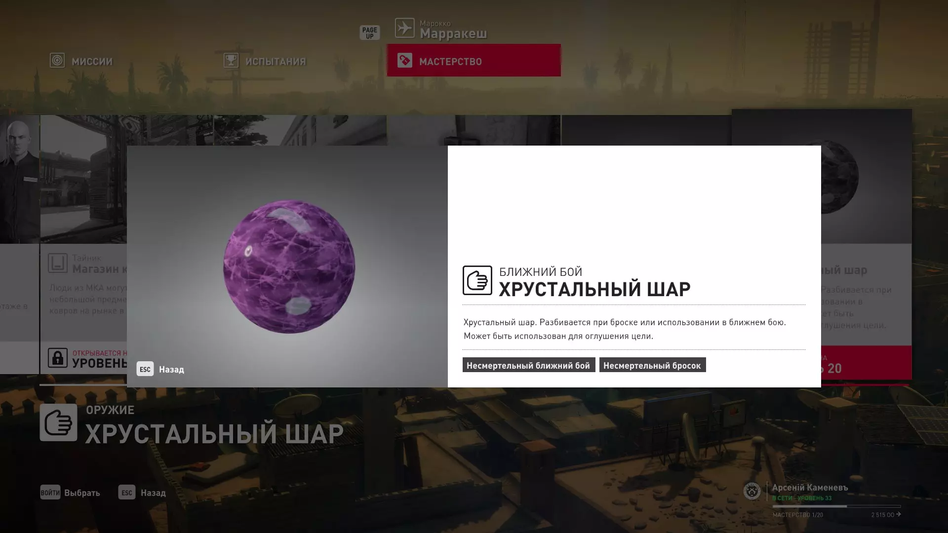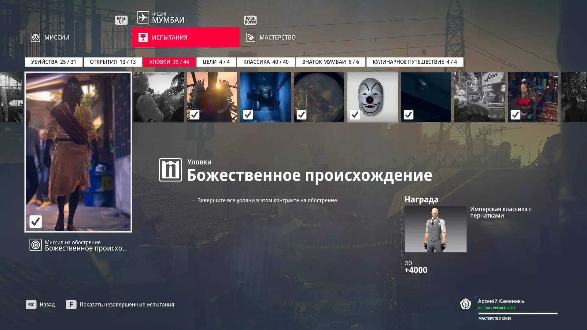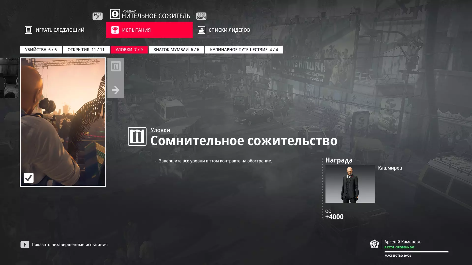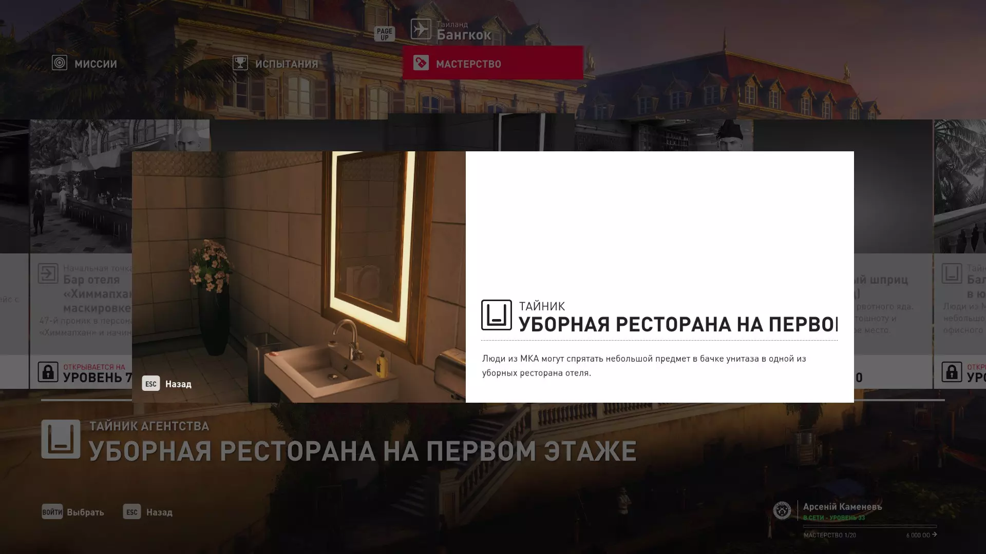 提示:成就【Бесшумный убийца】的获取条件与普通游戏相同,但没有换装限制。即:不可被发现且不可滥杀无辜。换装无限制。可以击晕任何人,关键是尸体不被发现。 挑战:无法捕捉的目标 - 巴黎 描述:在巴黎消灭一个无法捕捉的目标 奖励:晚礼服配手套