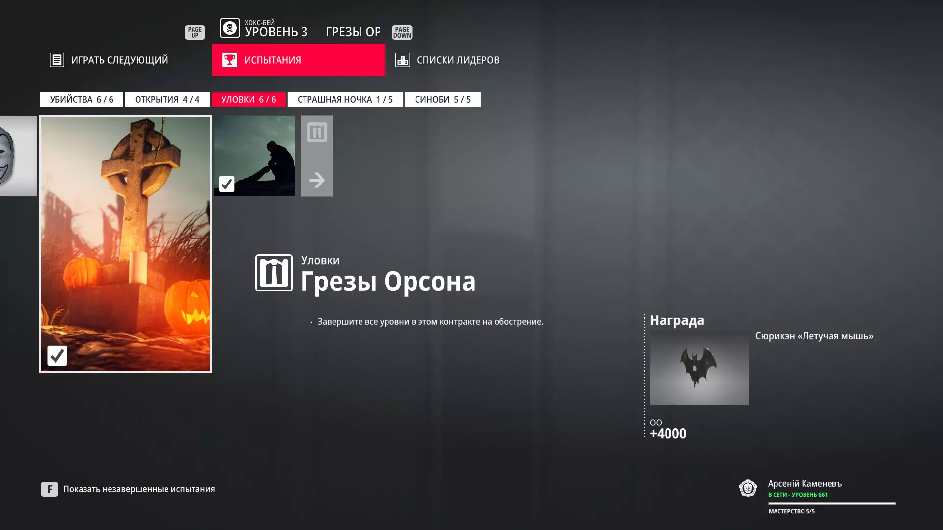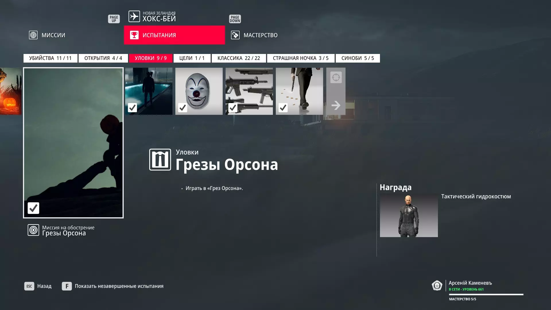 试炼:幽灵杀手 描述:隐秘消灭100个目标 奖励:幽灵服装